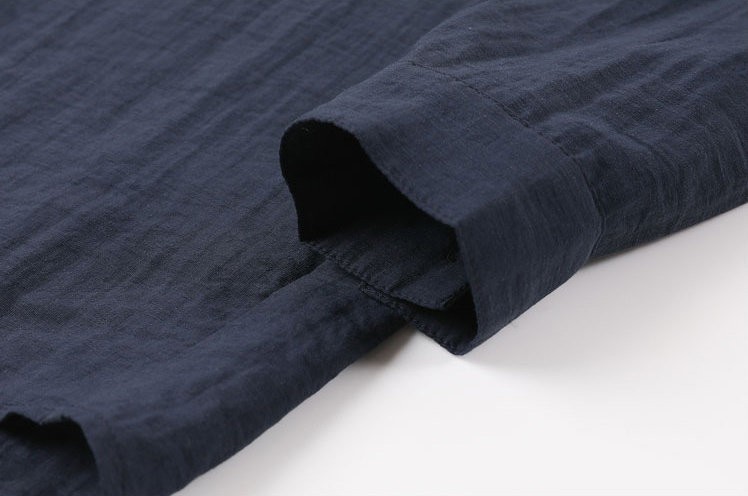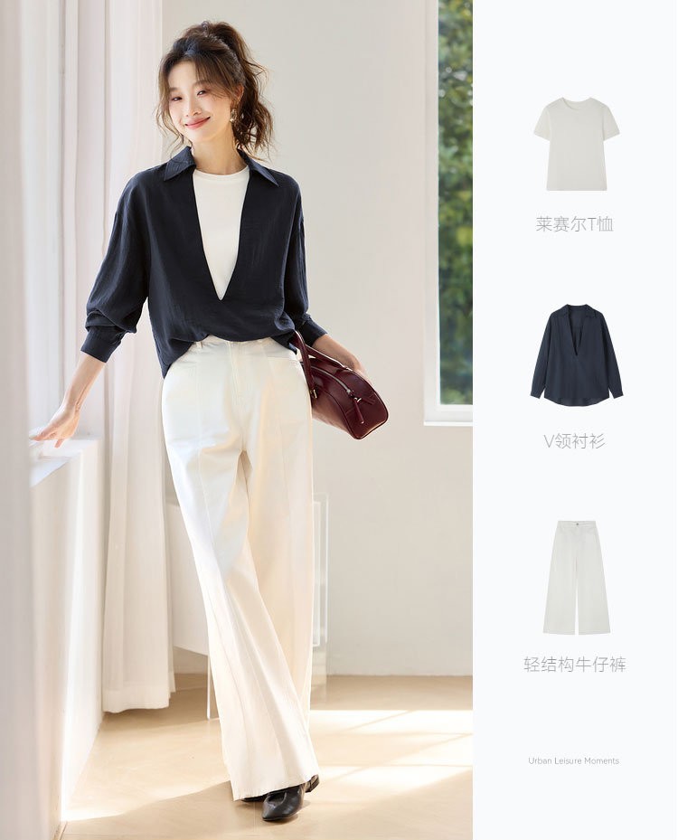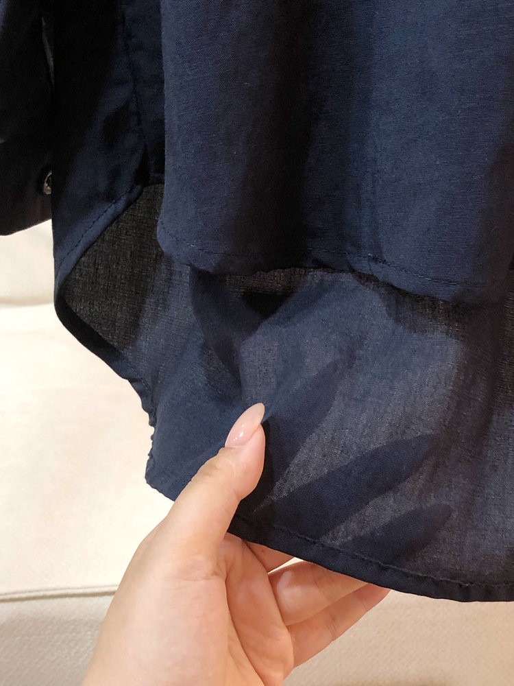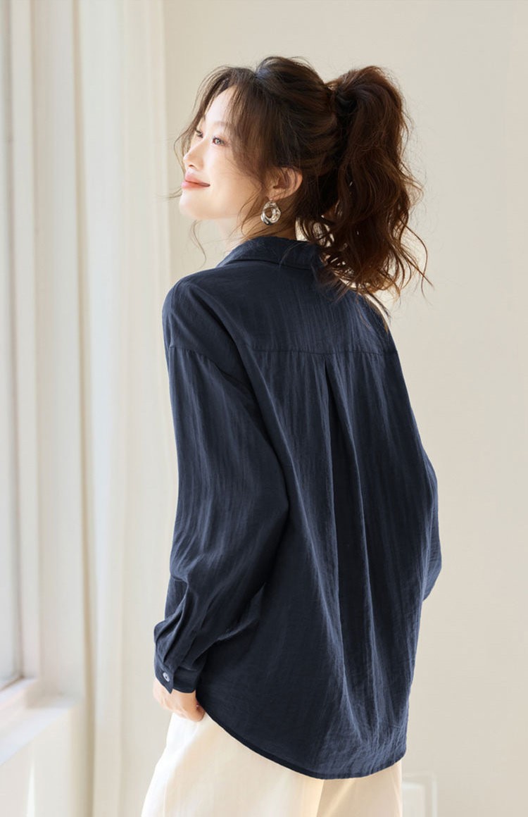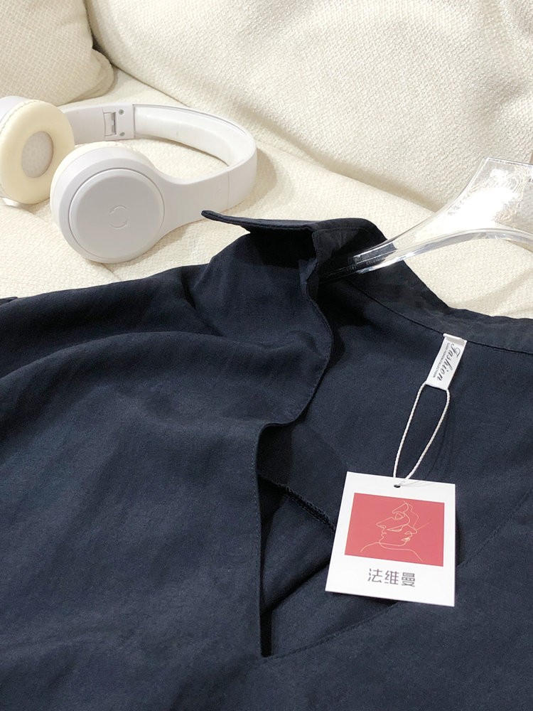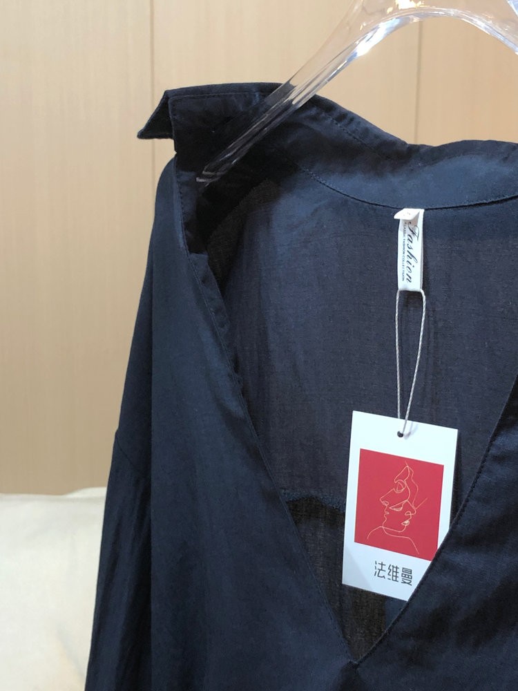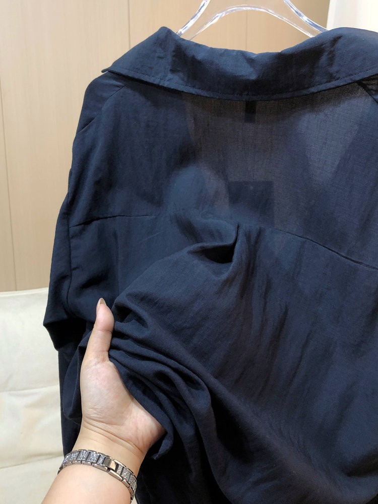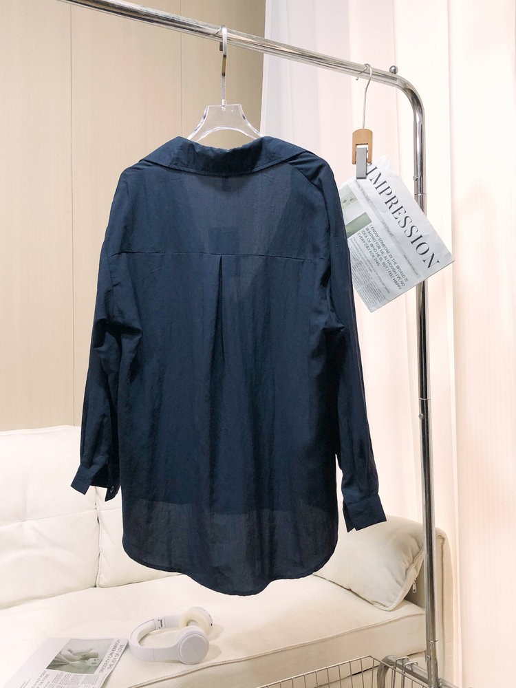 法维曼 藏蓝色翻领深V领衬衫 轻盈垂坠 春夏清爽不闷 宽松落肩 藏肉显瘦 修饰脖颈 叠穿更显层次