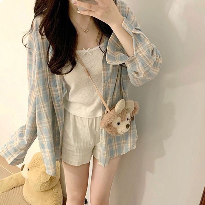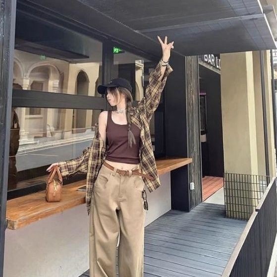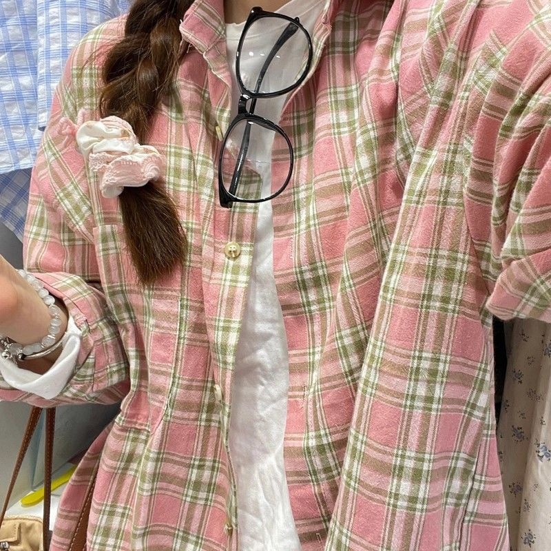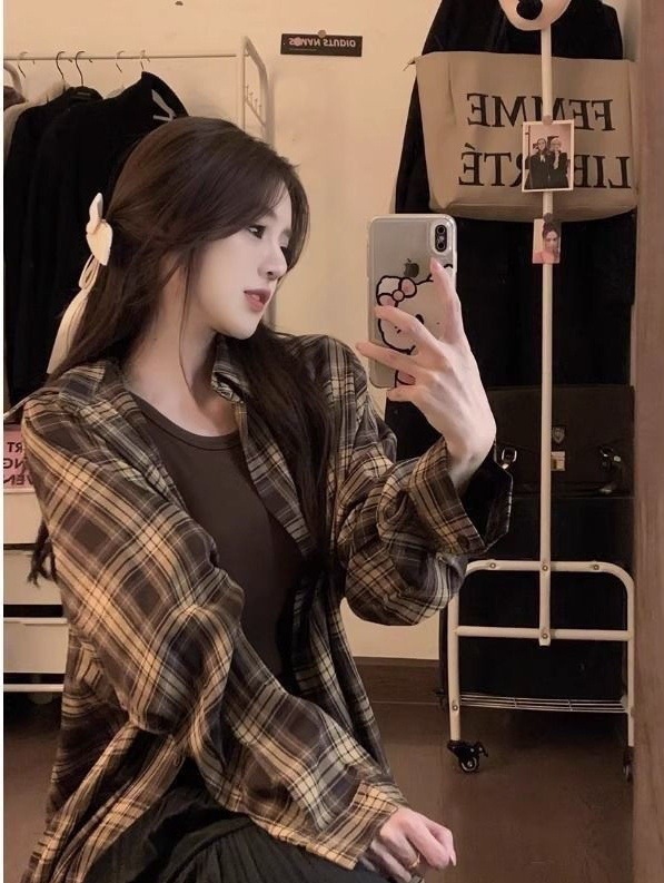 【秋季新款港风格子衬衫】新款oversize宽松慵懒风 外穿衬衣休闲