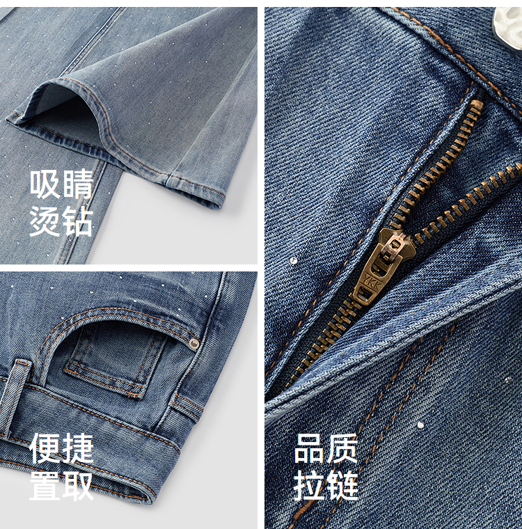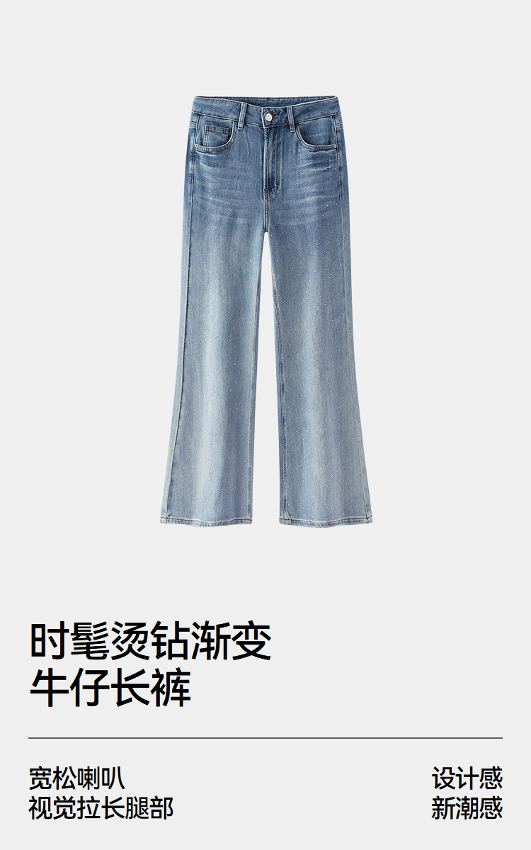 商场同款|森马牛仔裤女夏烫钻渐变宽松2026新款个性设计感喇叭裤