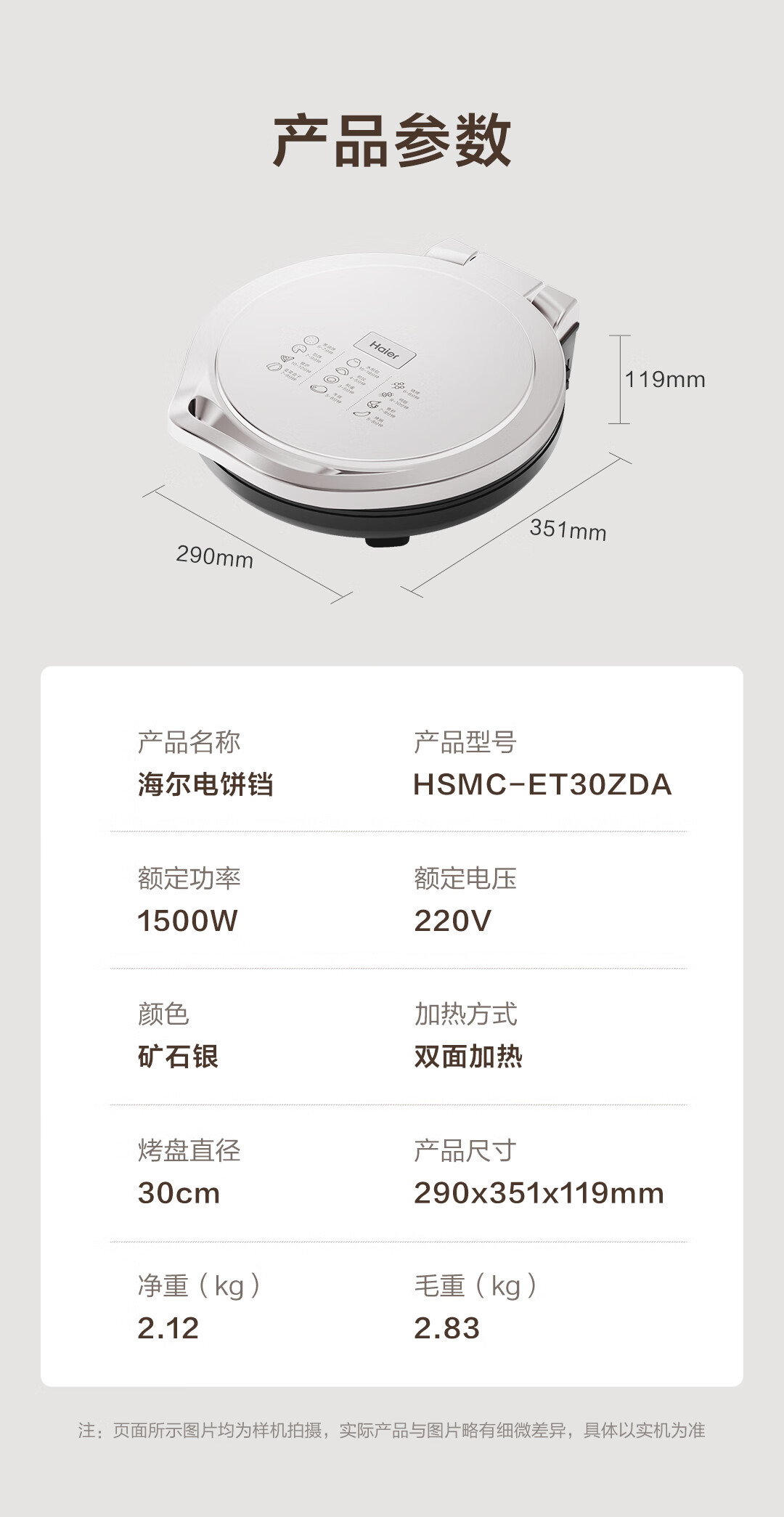 海尔(Haier)电饼铛HSMC-ET30ZDA