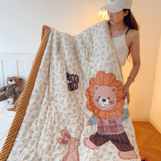 工厂直销,豆豆绒巨软糯~ 而且很服帖一点儿都不跑被 ♻️绿色环保印染,内里填充抗菌纤维 抗菌又防螨 ‼️软绵绵的亲肤手感 忍不住想rua一下 建议直接裸睡,机洗也无压力