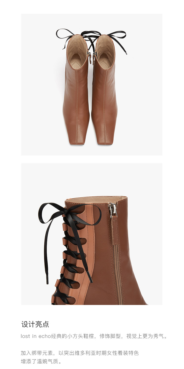 【微瑕疵不退不换】lost in echo 设计师原创 鸭嘴方头后绑带高跟短靴 黑色