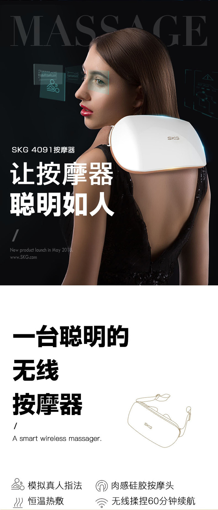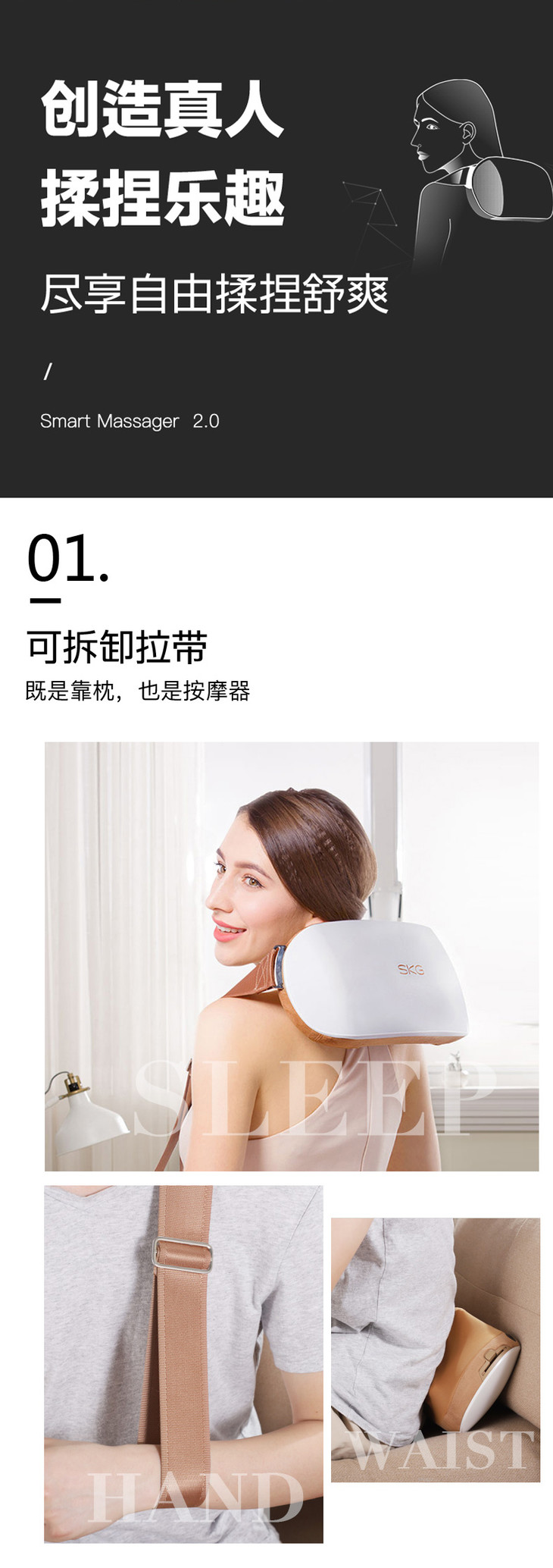 SKG 颈肩颈椎按摩器 揉捏按摩披肩 多功能家用 全身肩颈部捶捶乐按摩仪 浅灰色 4091