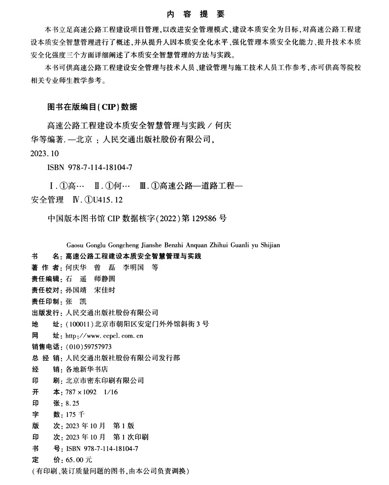 书名:高速公路工程建设本质安全智慧管理与实践