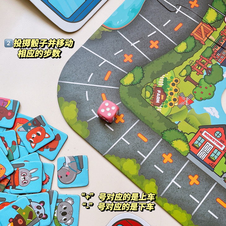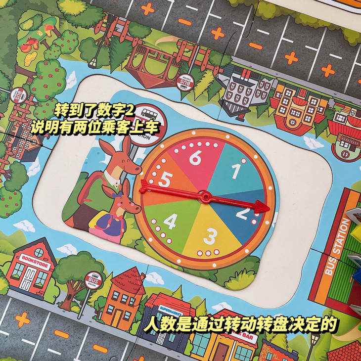 规则如下⬇ 玩家选择喜欢颜色的巴士拼块,轮流掷骰子,丢到几点就向前移动几步,"+"号对应的是上车;“-”号对应的是下车 人数是通过转动转盘决定的,转到几就是几个人 如果自己的巴士已坐满乘客,那么再走到"+"则乘客无法再上车,如果自己的巴士上已无乘客,那么再走到“一”,则没有乘客可以再下车 当所有公交车都到达终点位置时,带着最多乘客回到公交车站的玩家获胜🏅 (网络视频,仅供参考玩法)