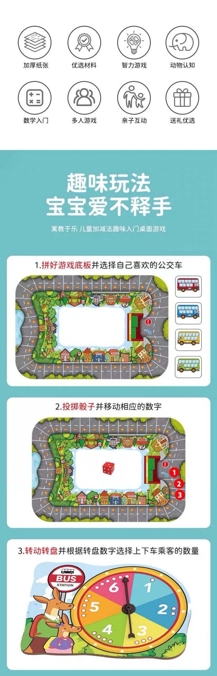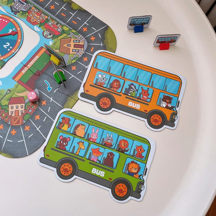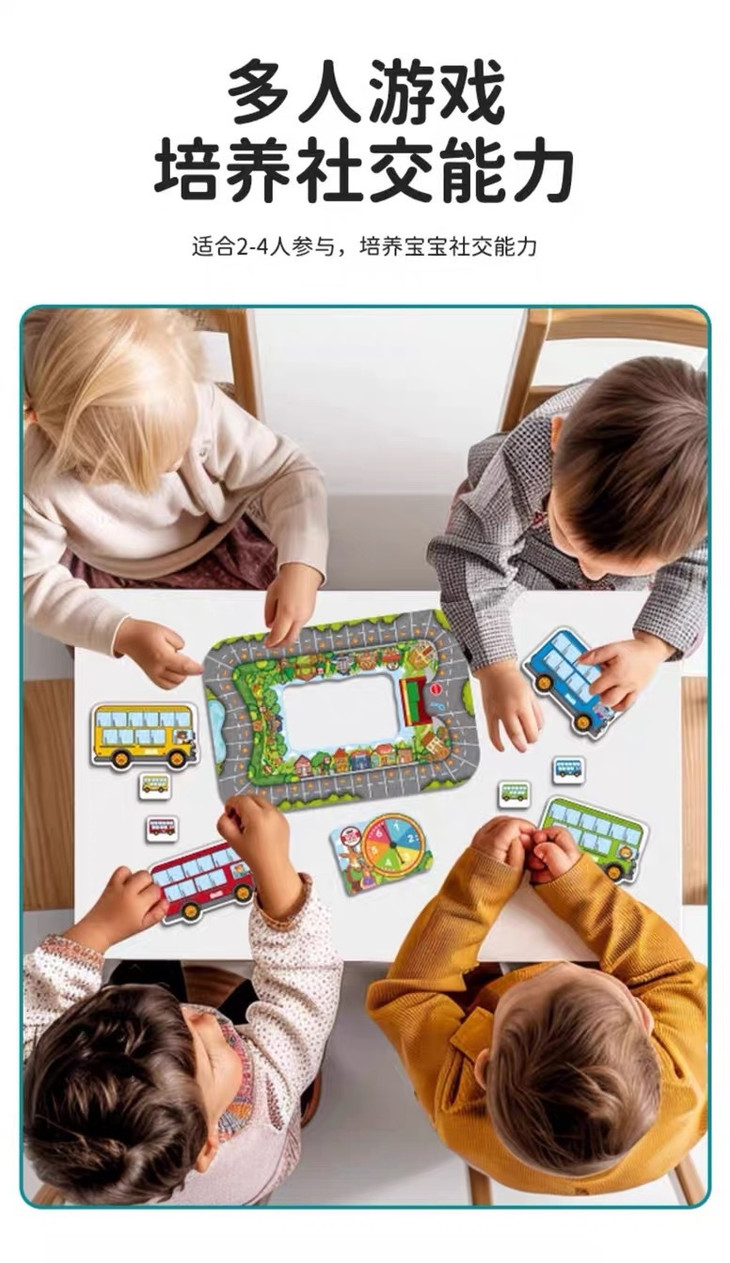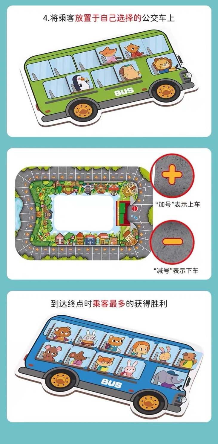 3岁以上的孩子就能玩,可以2~4人进行游戏,非常简单好上手,经过乘客上车、下车的概念,活用数学中的加法和减法,让孩子不再排斥接触死硬的数学✌