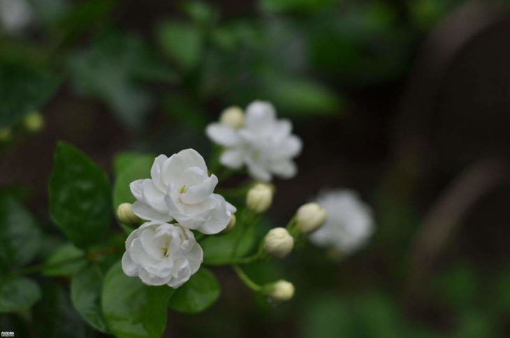 茉莉花,其花不大,呈素雅的雪白色,洁白莹润,“冰葩淡不妆”,环佩青衣,盈盈素靥,自有其清丽脱俗的美,宛如精致的白玉小荷,临风无限清幽。