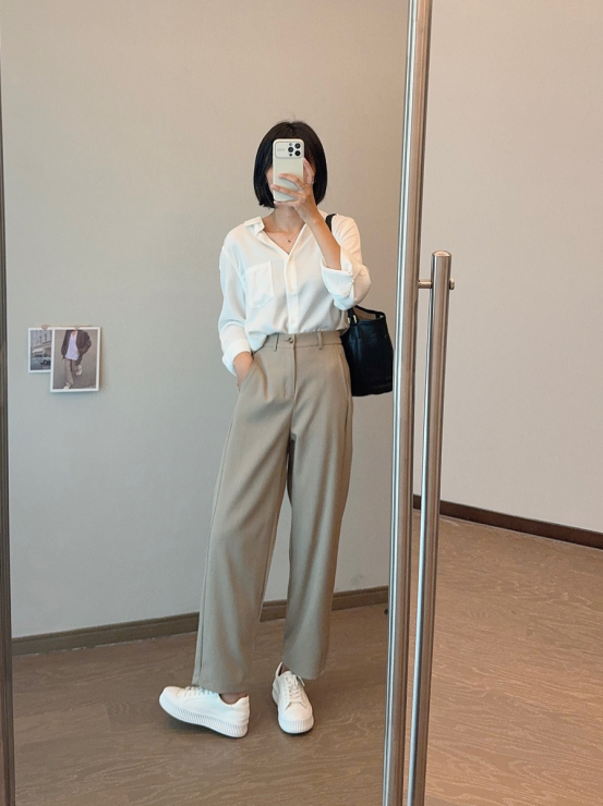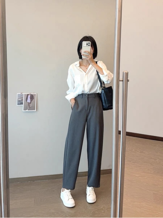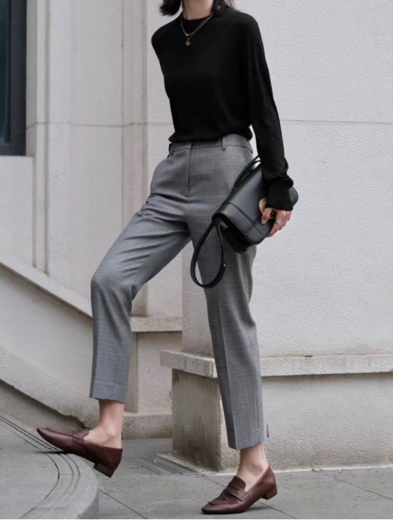 ✅上身效果参考 这款小西裤比铅笔裤多了一份灵活 又比传统的西裤少了一份商务感 它还比以上两种裤型都更加能修饰腿型 这条裤子真的能够做到肥瘦皆宜!
