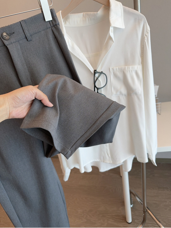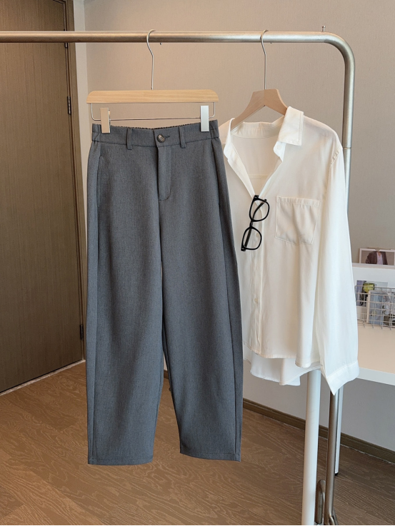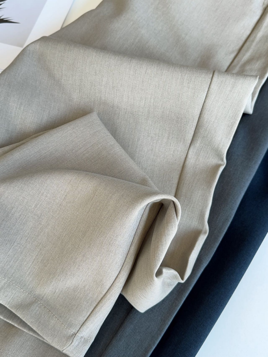 绝了💥通勤王就是它❗ 好帅气的一款休闲西装裤,穿上就是飒‼️ 👍三个颜色都是日常通勤百搭色!定织定染,很好看! 面料中等厚度可以穿到深秋! 质感挺括有型,筋骨架,好打理,不易起褶皱 ✅立体剪裁,高腰微锥宽松裤型,裤管上宽下微收,九分左右裤长 ⚠️不挑人,最大穿到140斤,版型超好!上身无敌显瘦,谁穿谁好看!