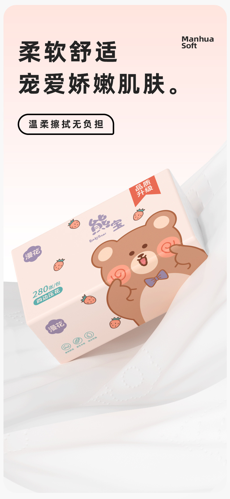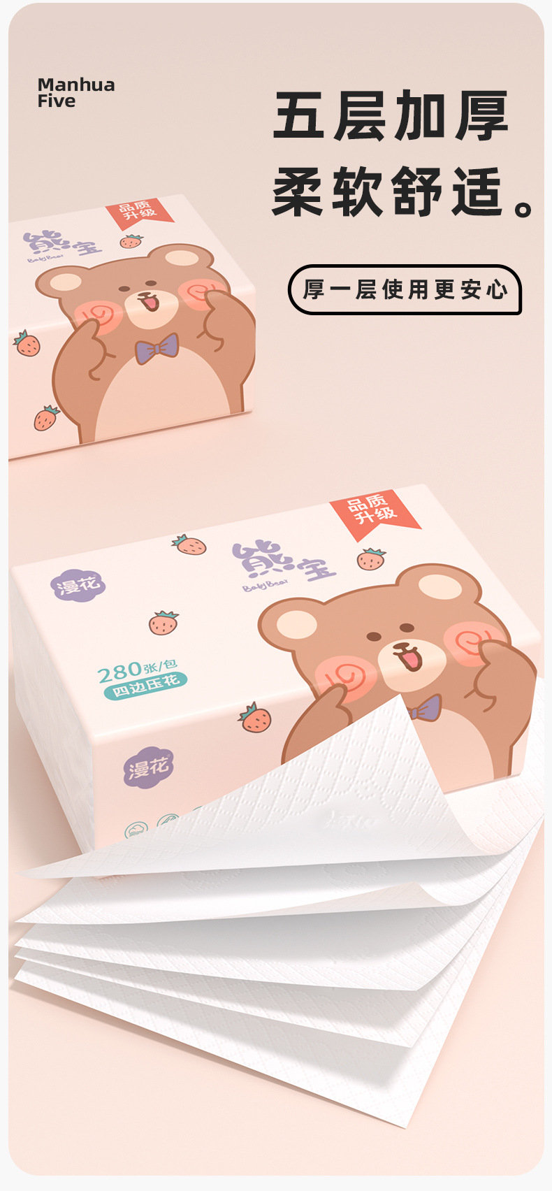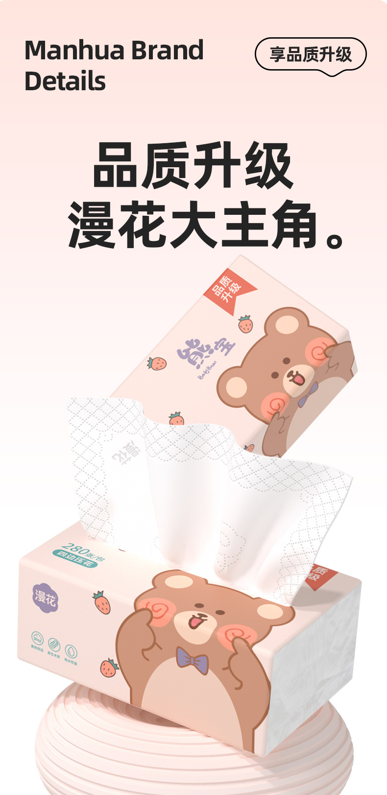 【五层加厚❗柔软舒适】漫花家用抽纸30包整箱面巾纸实惠装餐巾纸原木卫生纸压花纸巾。rg