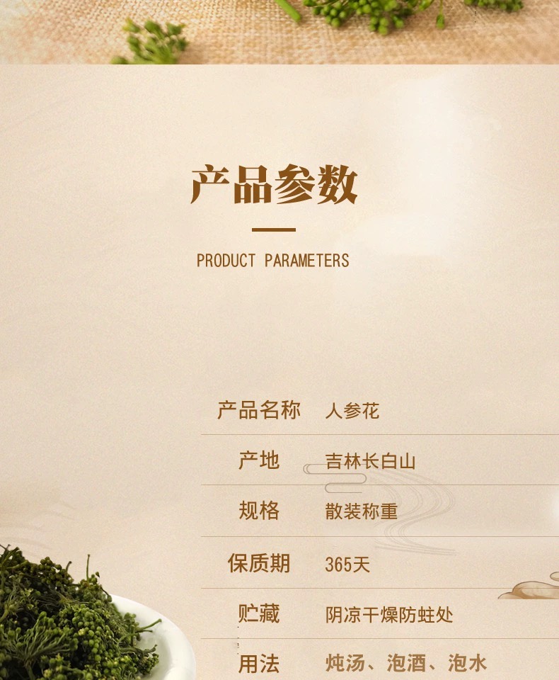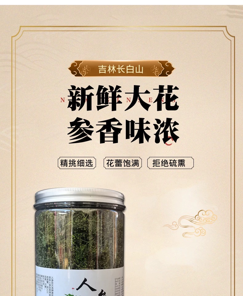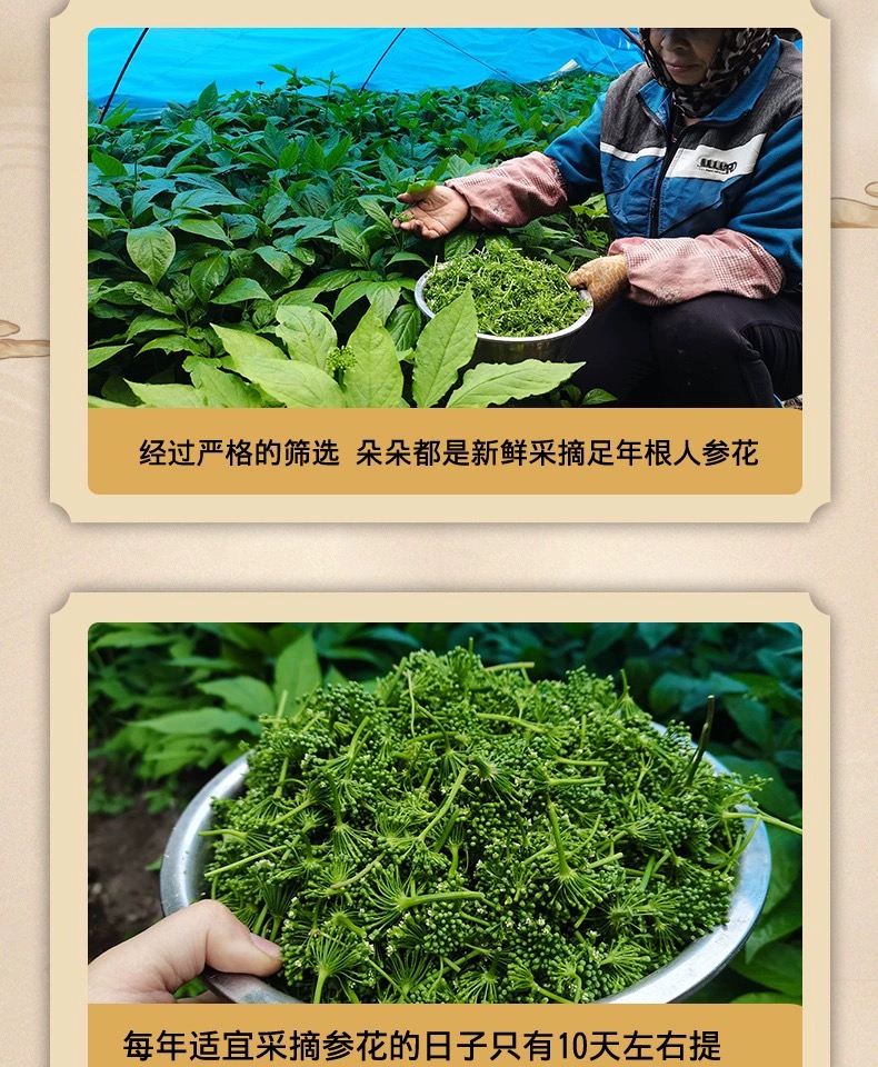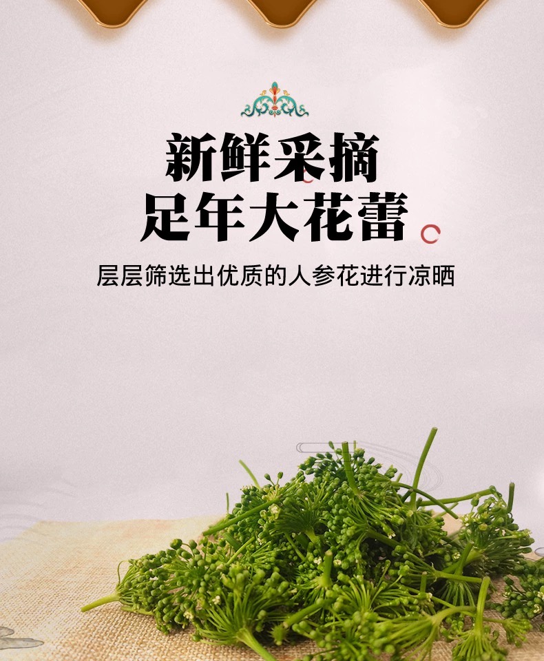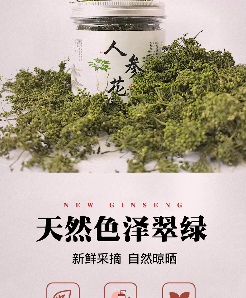【参香味浓!长白山人参花】色泽翠绿,人参花长白山8年人参花精选新鲜大朵人参花泡水茶健康
