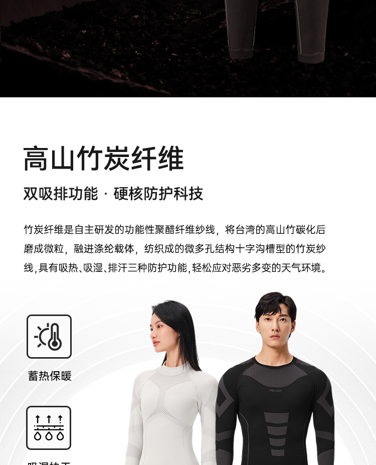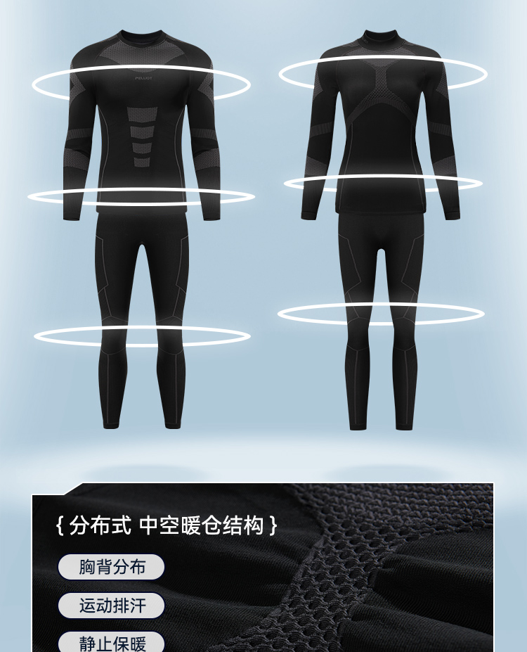 伯希和保暖功能内衣男户外滑雪排汗快干秋衣秋裤加绒运动肌底衣女