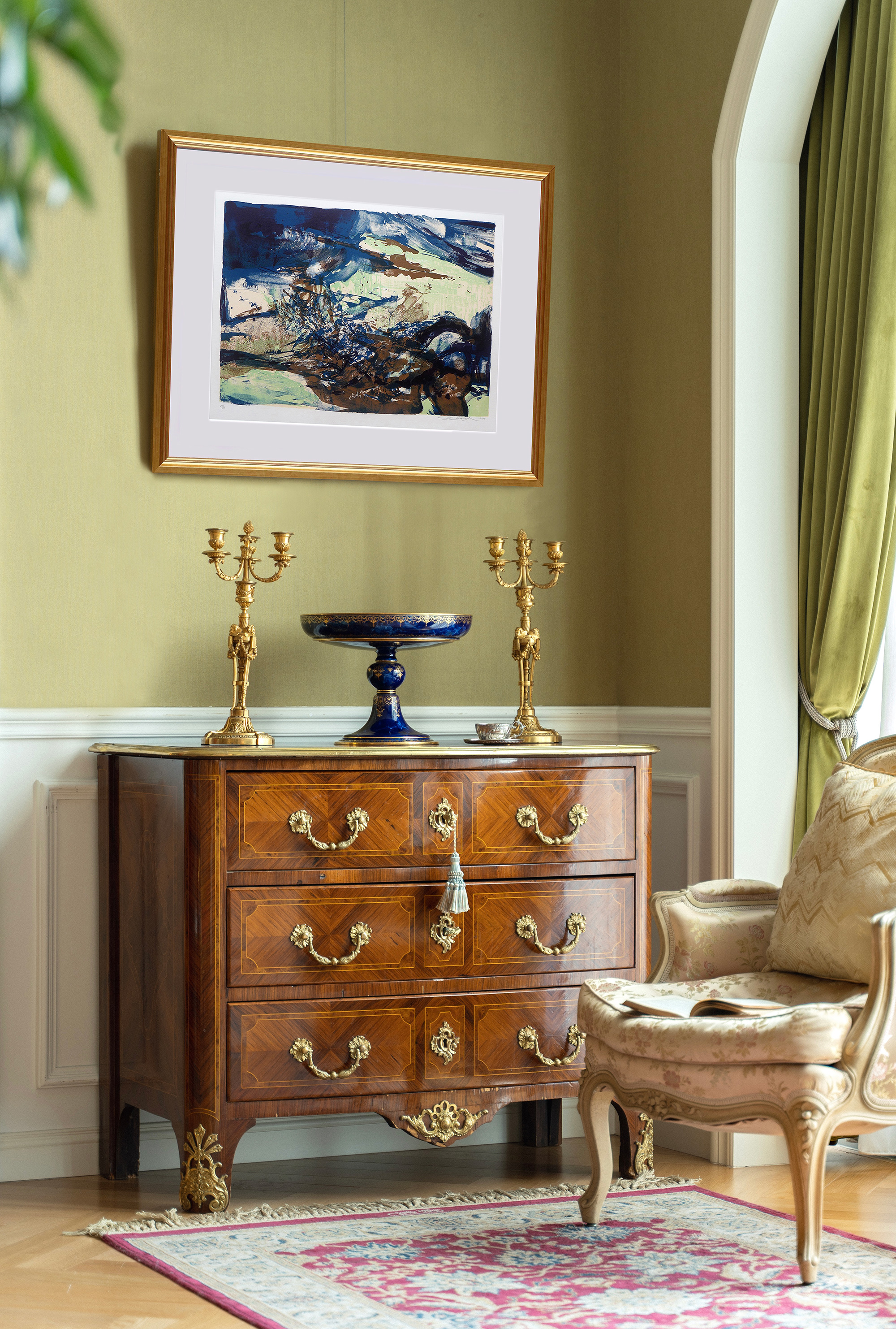 独角鹿西洋古董1976年西班牙巴塞罗那Ediciones Polígrafa出版赵无极亲签限量彩色石版画「影像的荣耀 281」