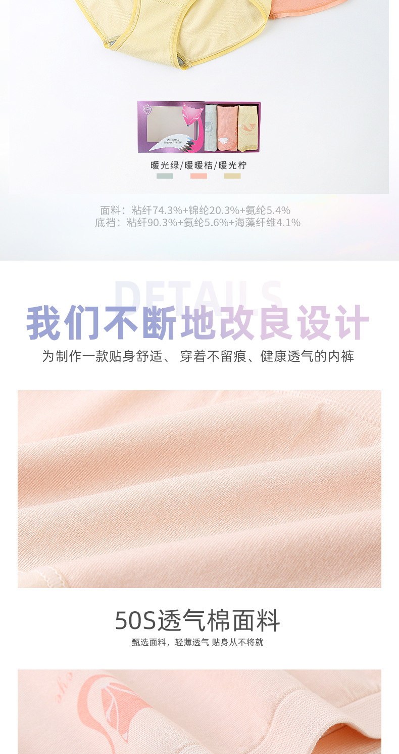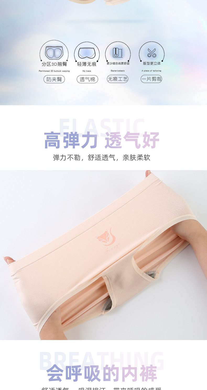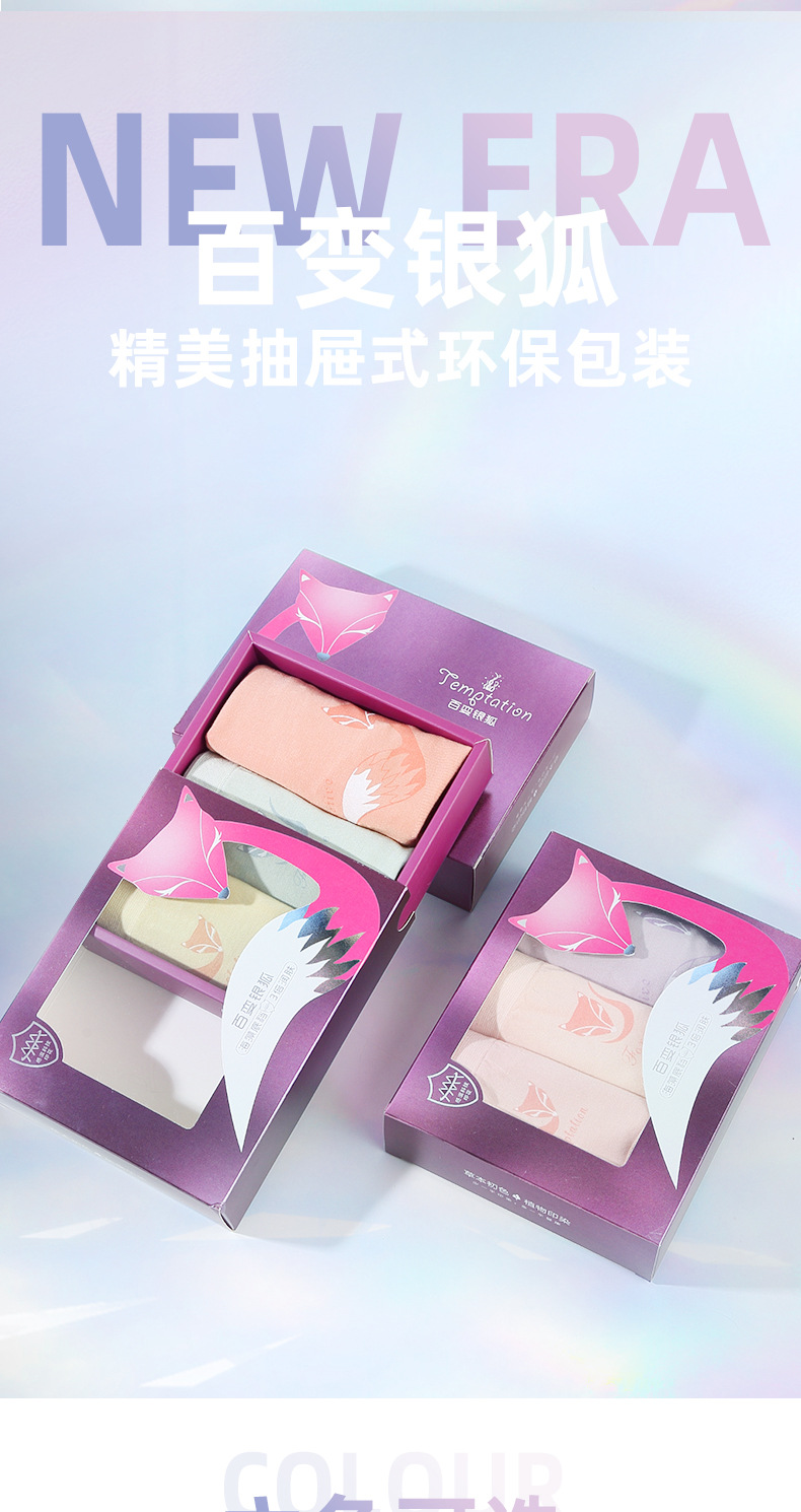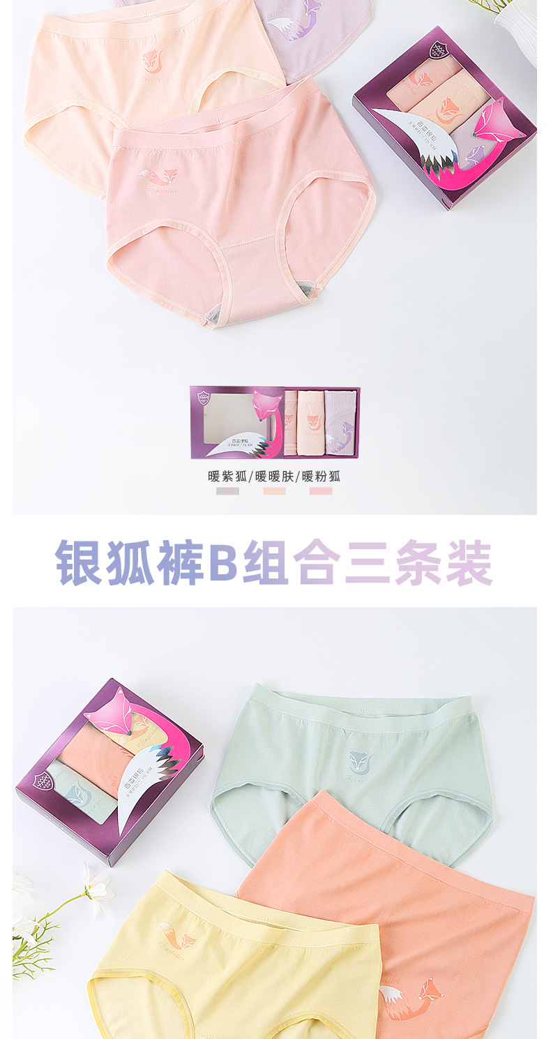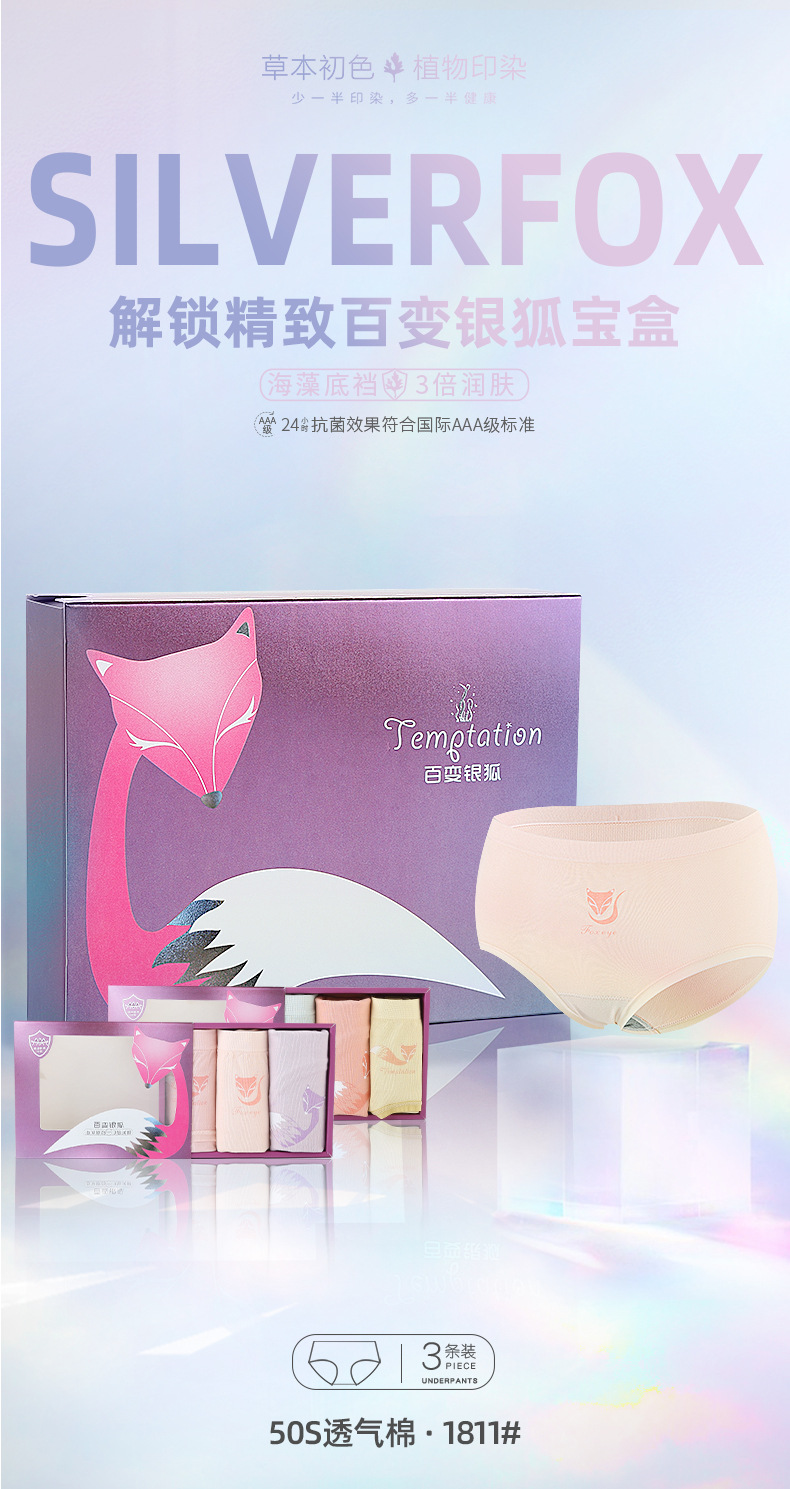 【3条装银狐内裤】裸氨无缝海藻棉质抑菌女士内裤无痕透气提包臀舒适内裤女百变银狐裤宝盒礼盒