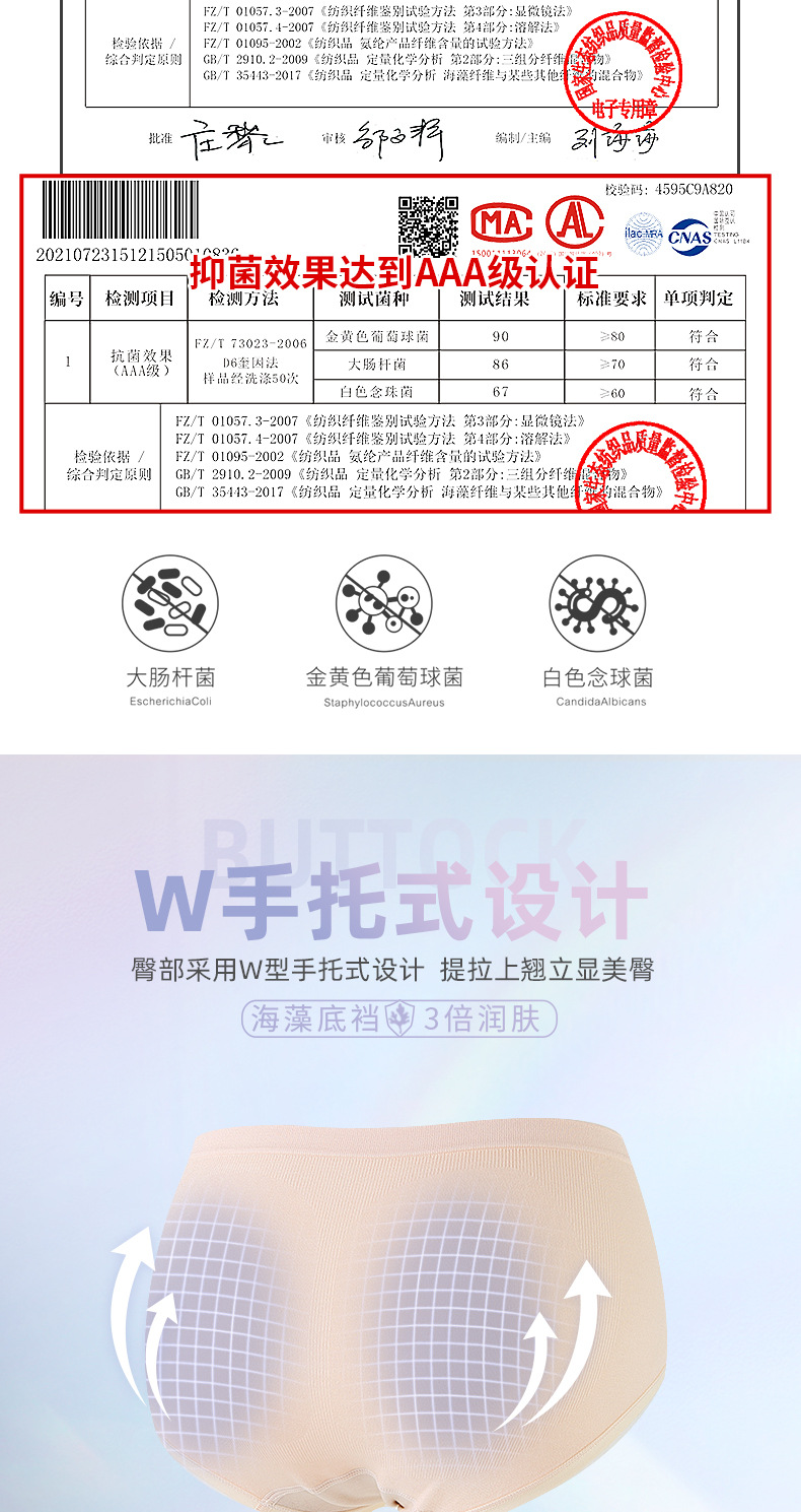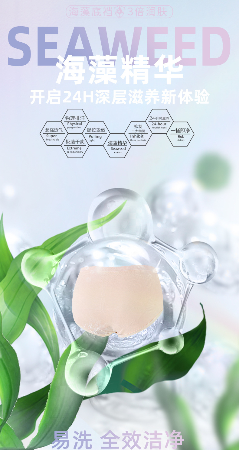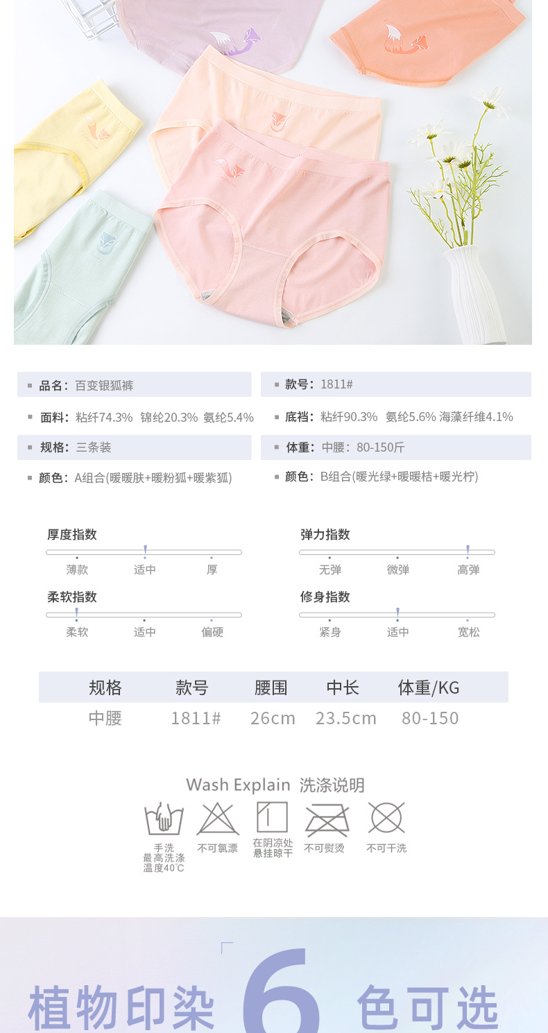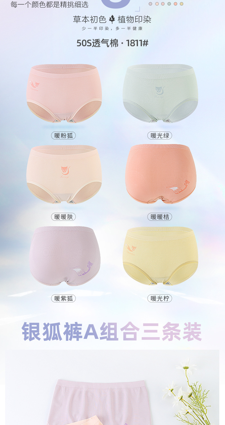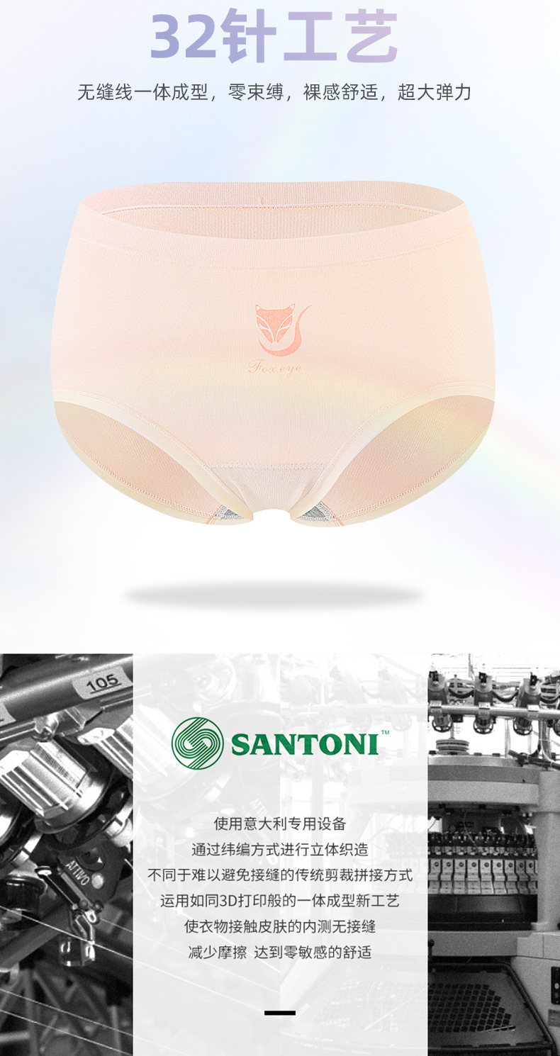 【3条装银狐内裤】裸氨无缝海藻棉质抑菌女士内裤无痕透气提包臀舒适内裤女百变银狐裤宝盒礼盒