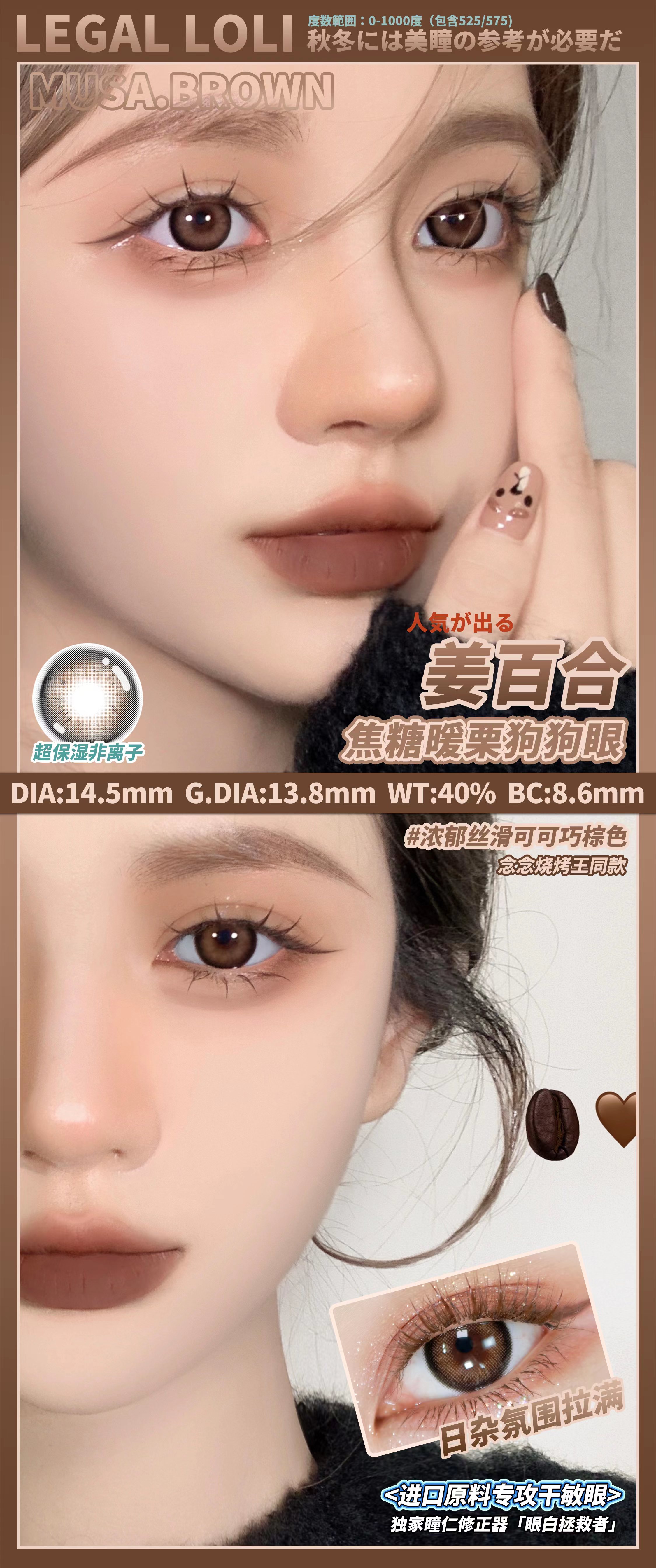 legalloli 姜百合「734」0-1000度(有525/575) 325/375/400度缺货 其余度数现货