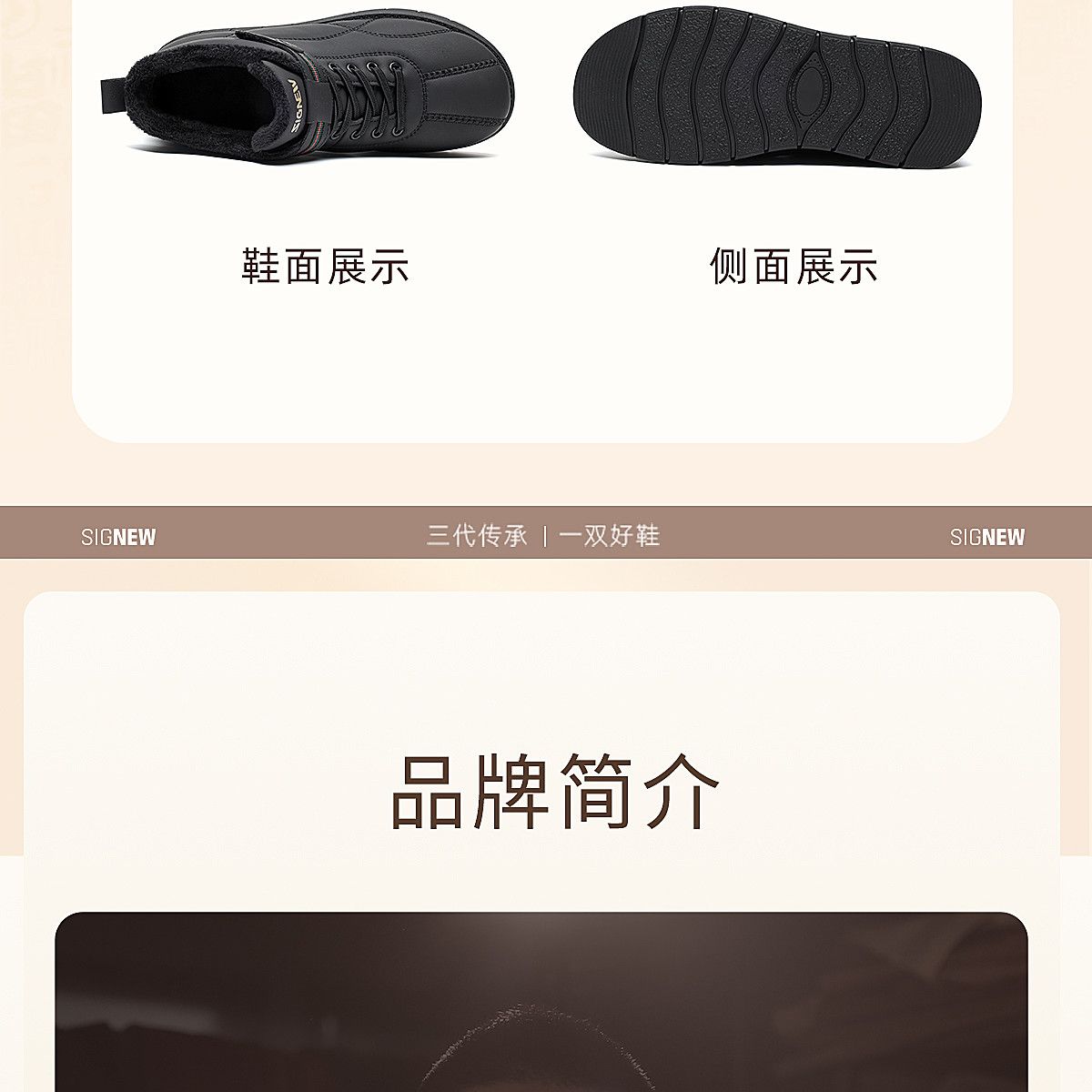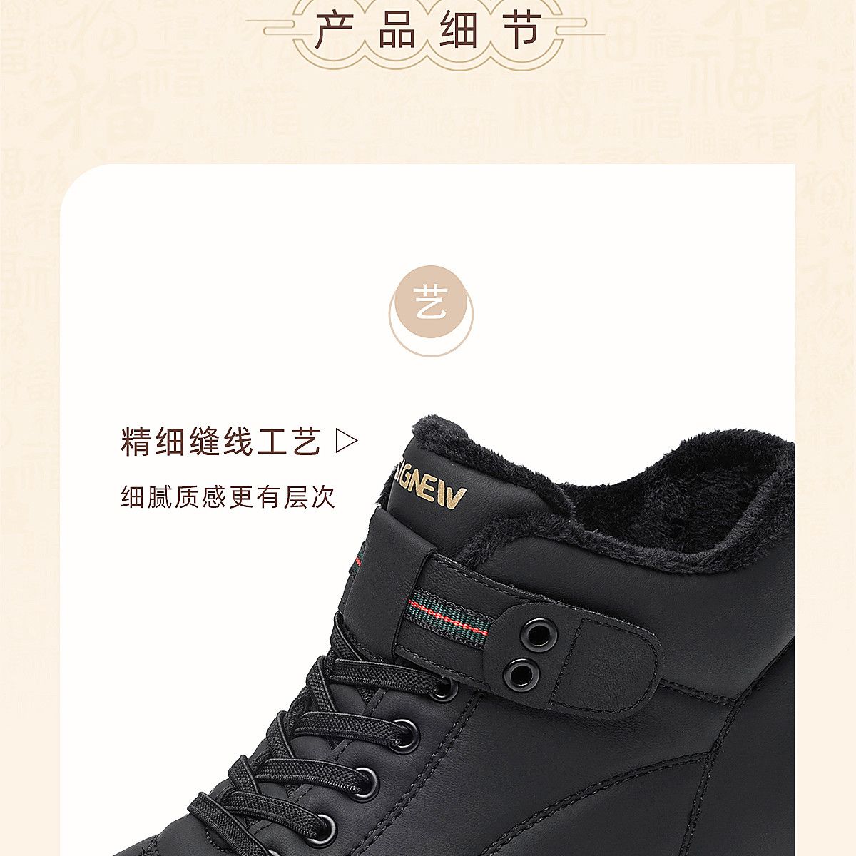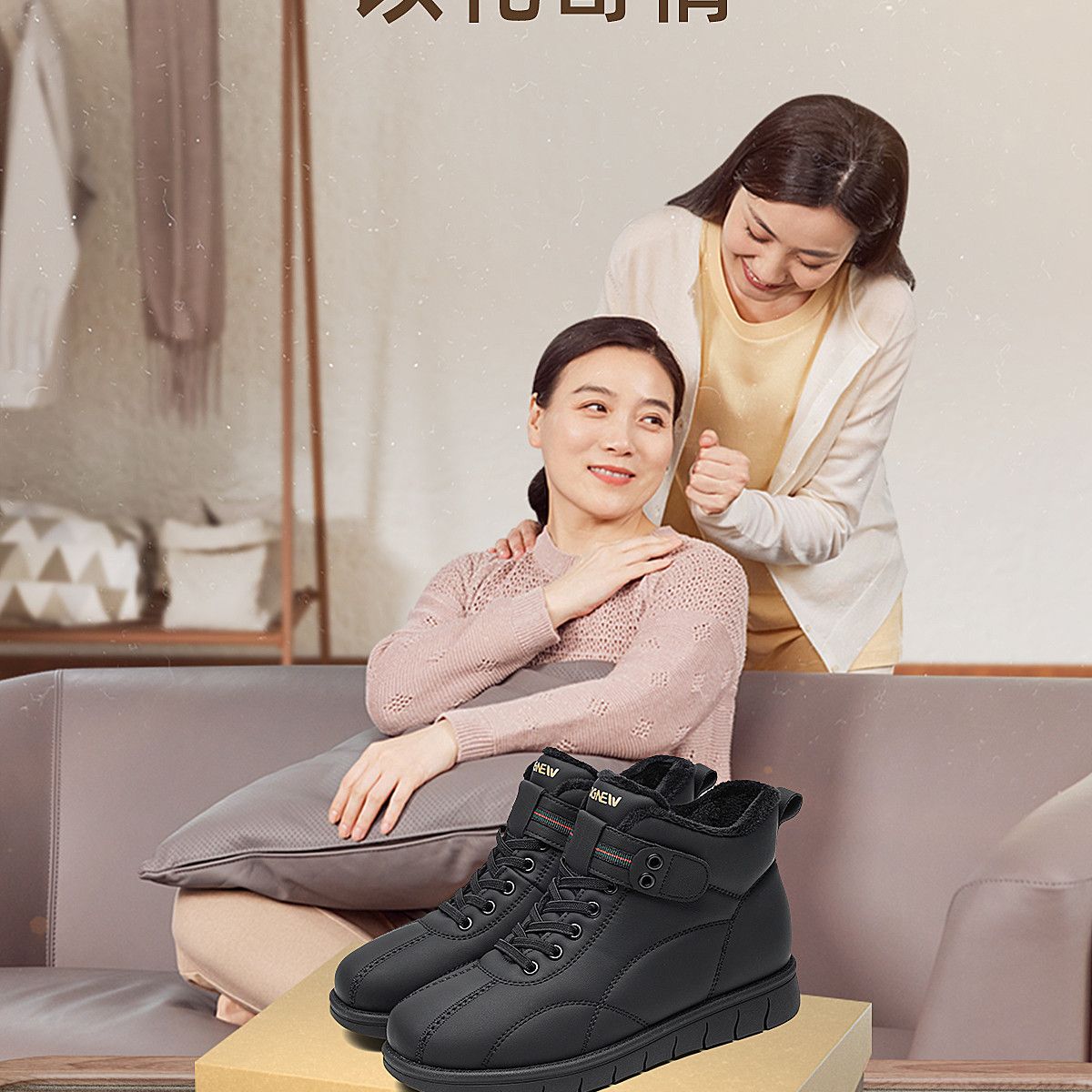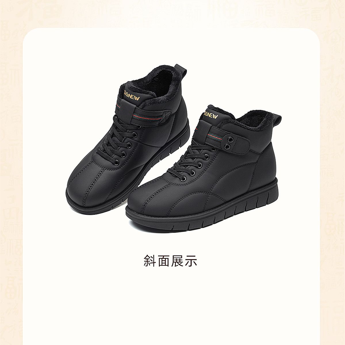 信诺老人鞋2025冬季新款加绒高帮雪地靴中老年妈妈保暖皮面棉鞋子5M262-6TD