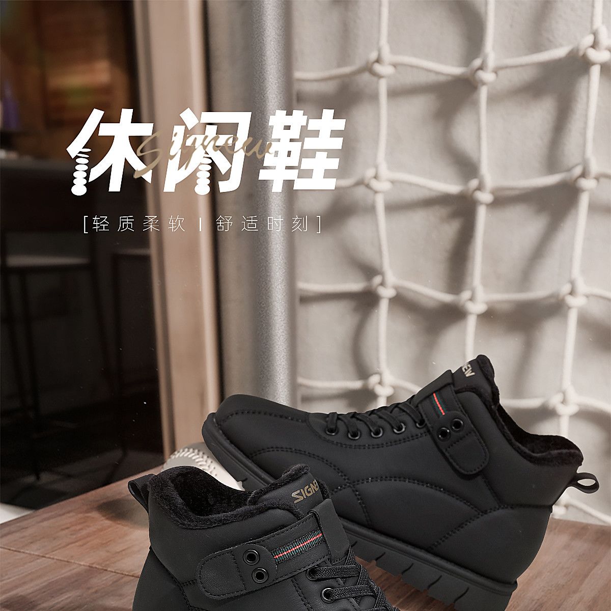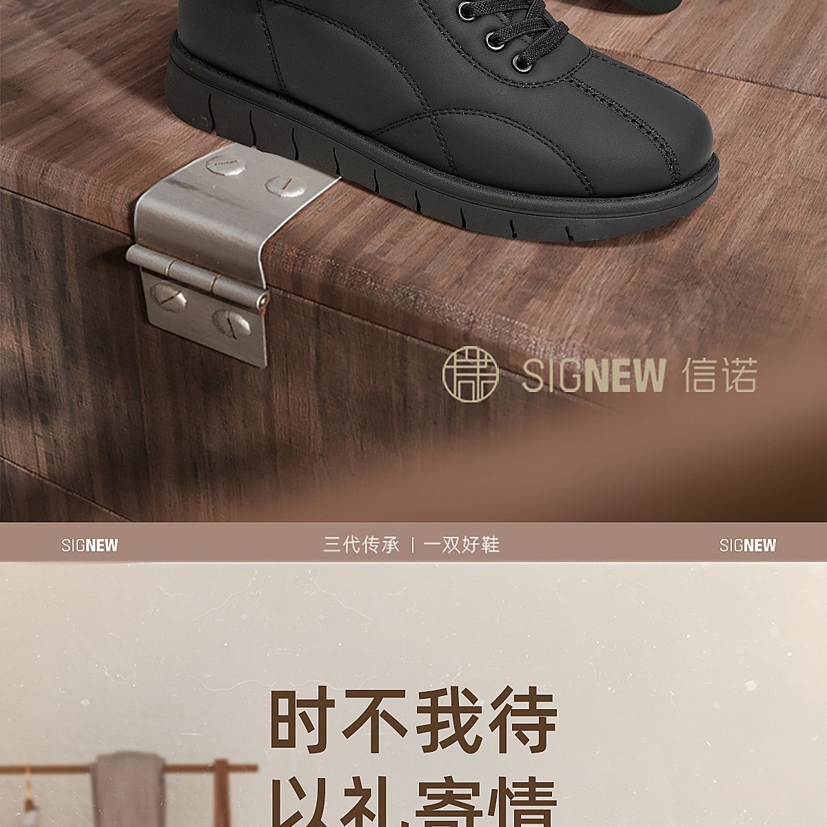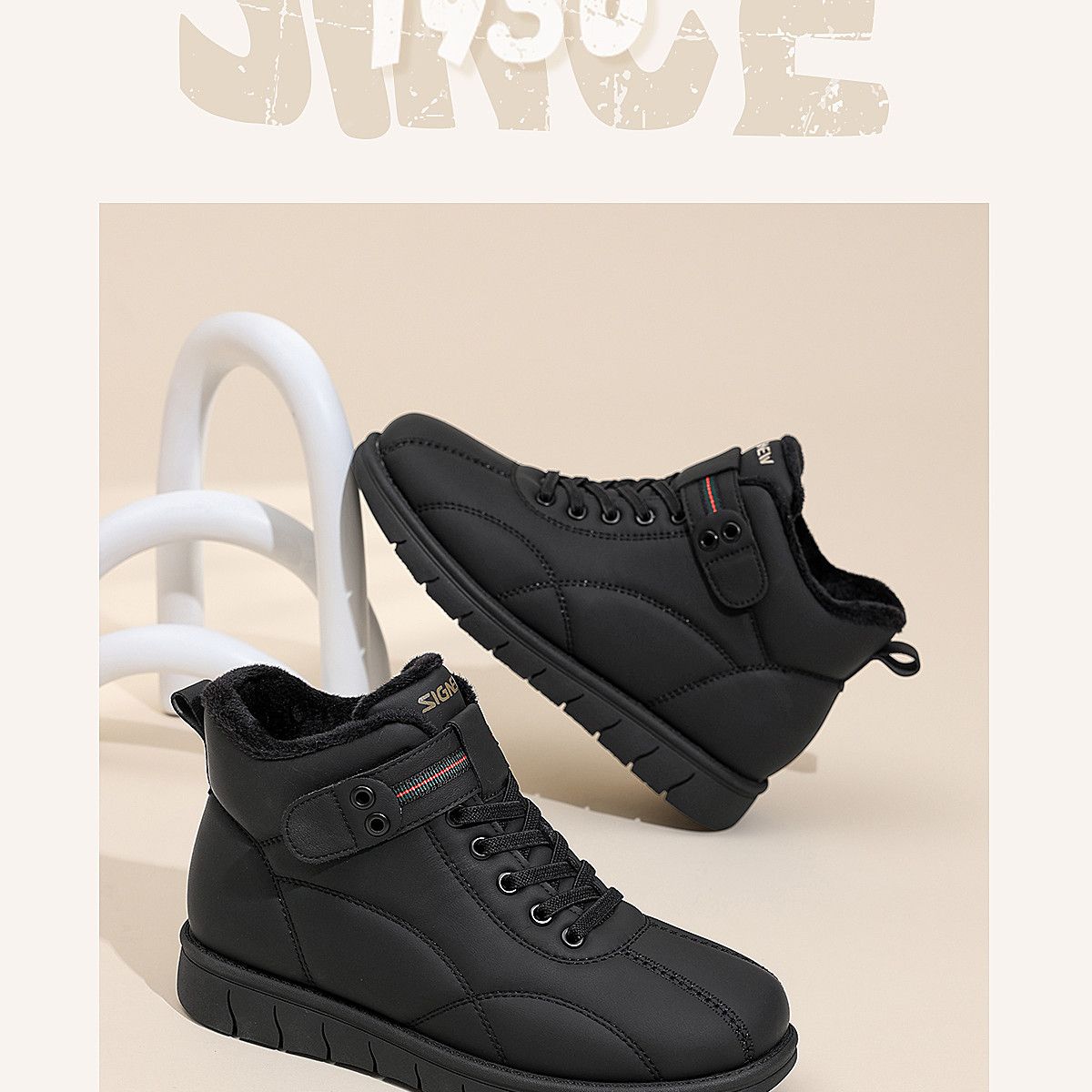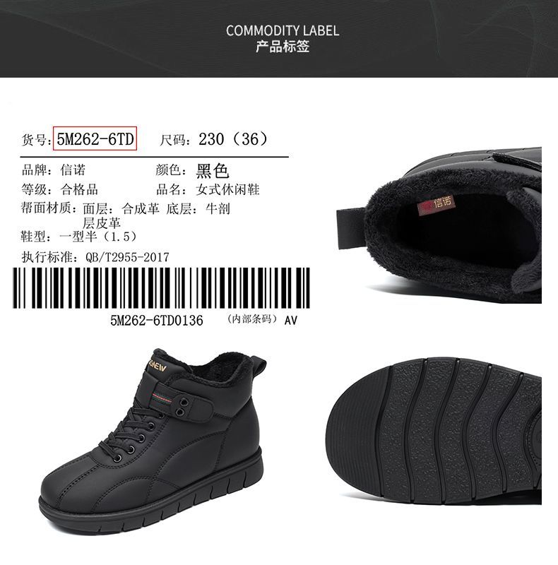 信诺老人鞋2025冬季新款加绒高帮雪地靴中老年妈妈保暖皮面棉鞋子5M262-6TD