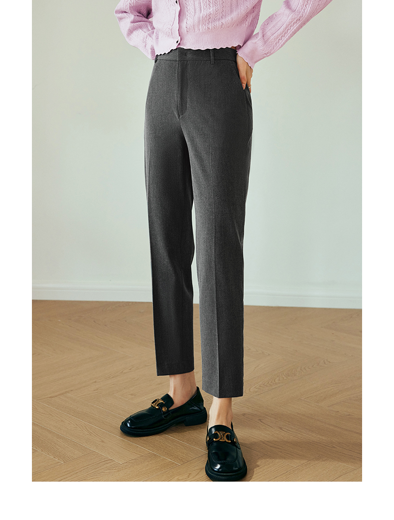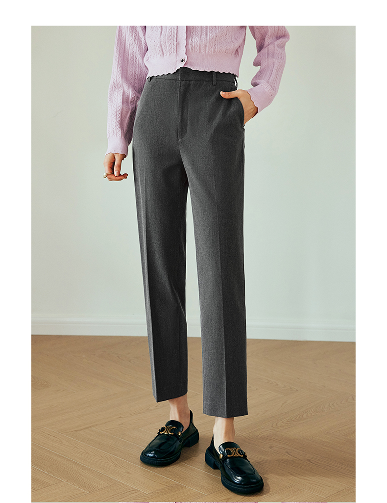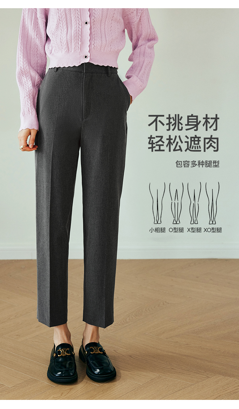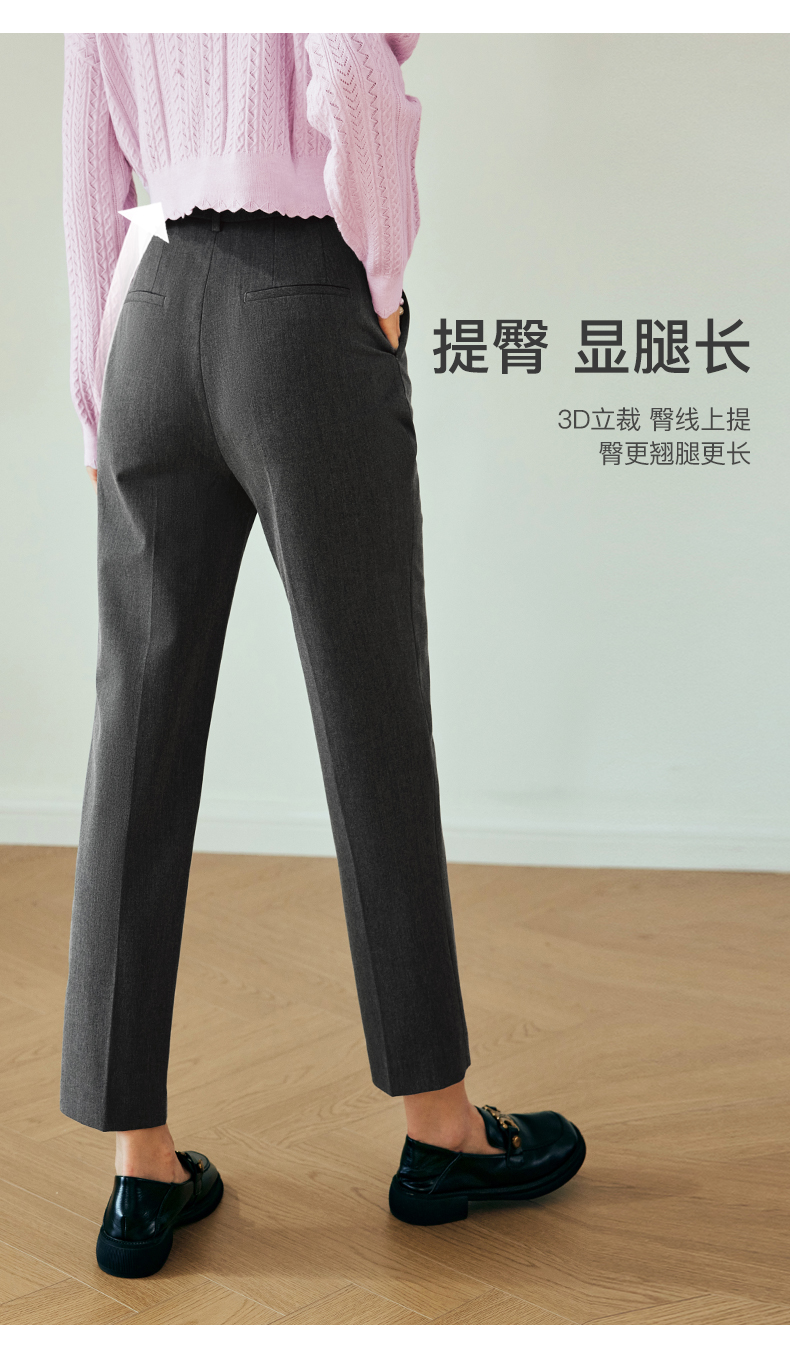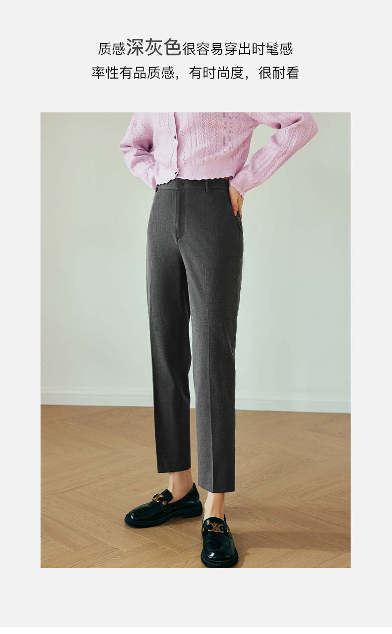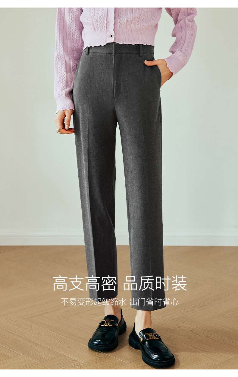 OLrain欧芮儿法式深灰色休闲裤女夏季2023新款高腰锥形九分小脚裤