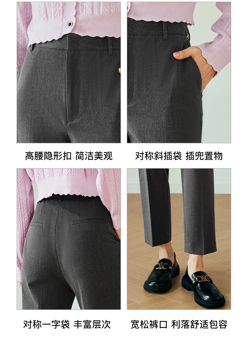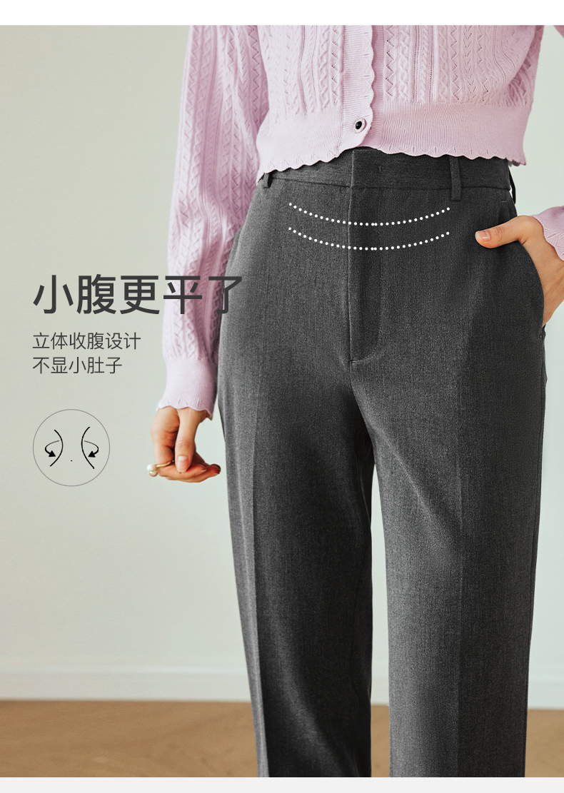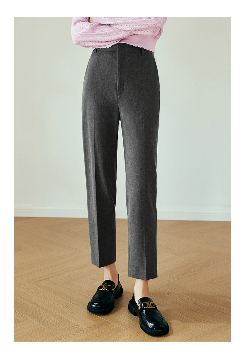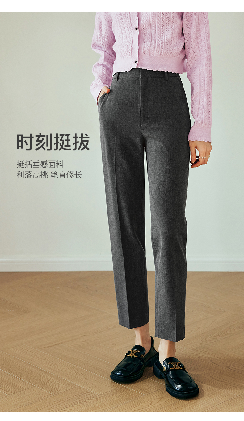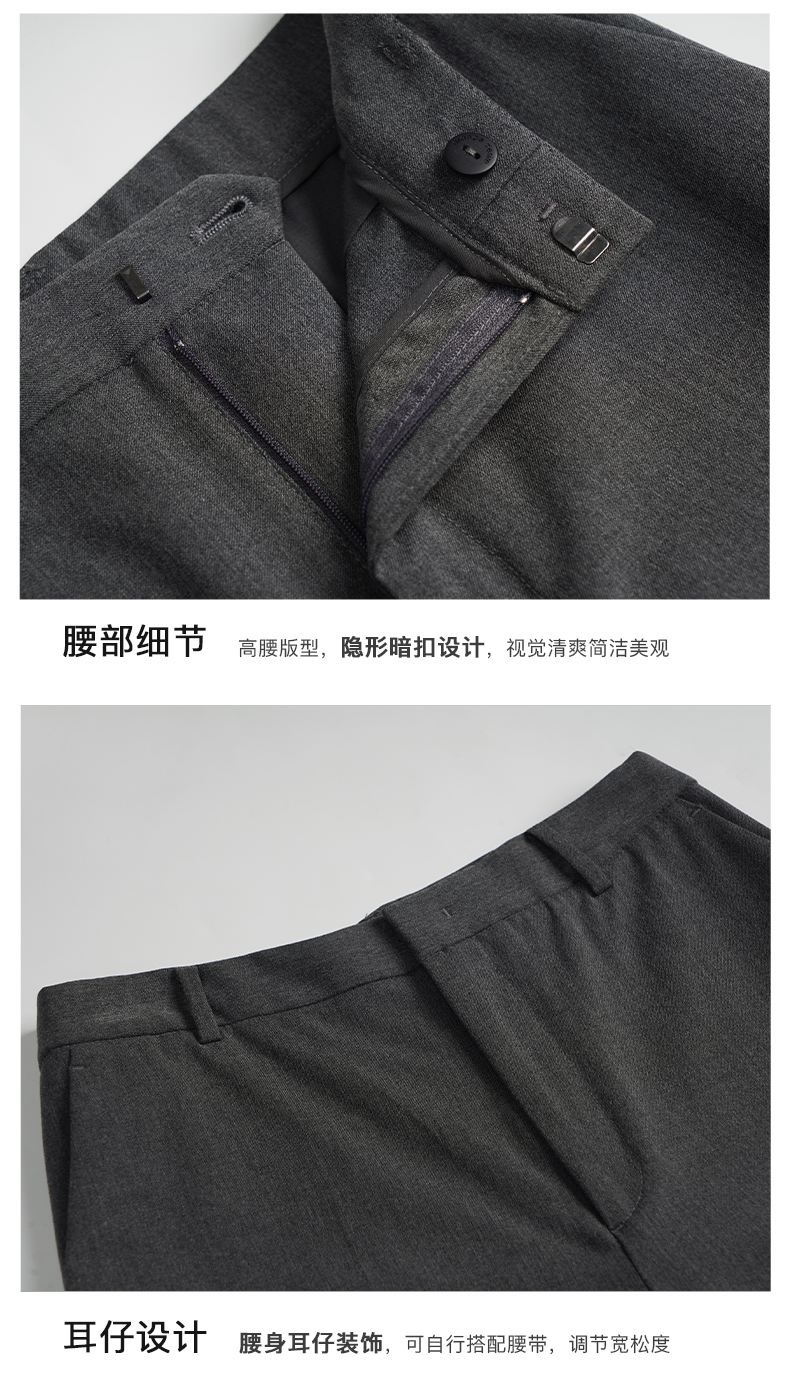 OLrain欧芮儿法式深灰色休闲裤女夏季2023新款高腰锥形九分小脚裤