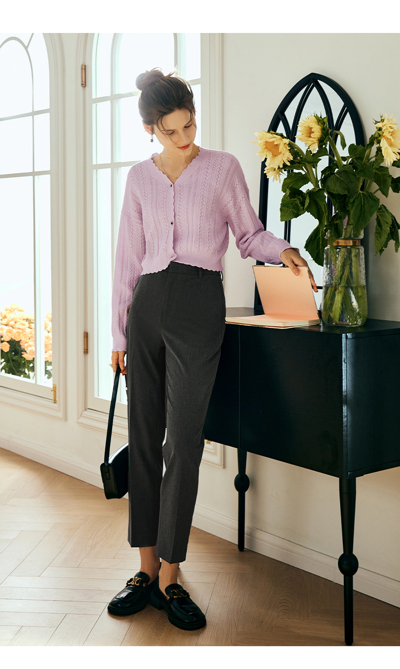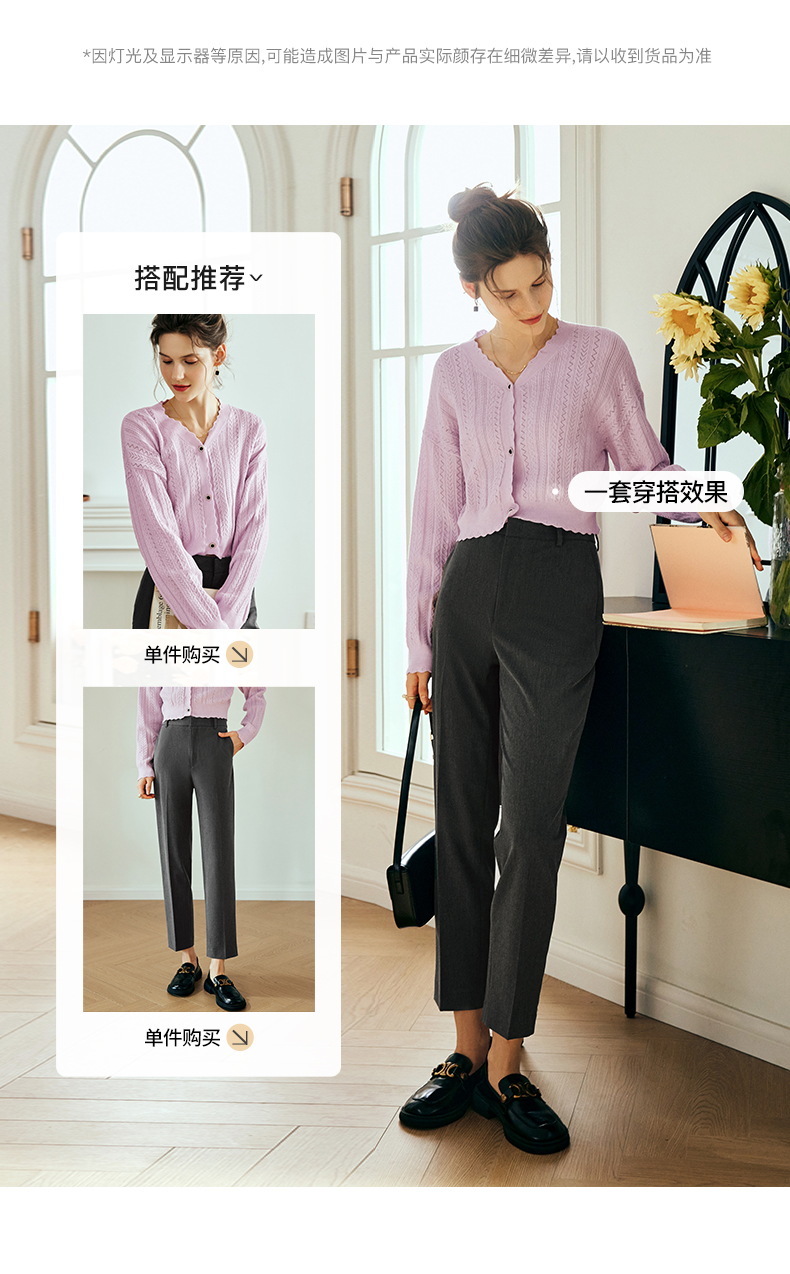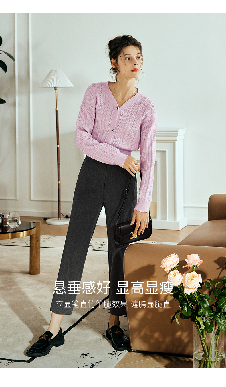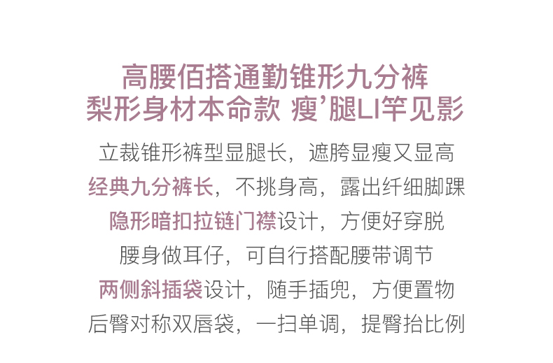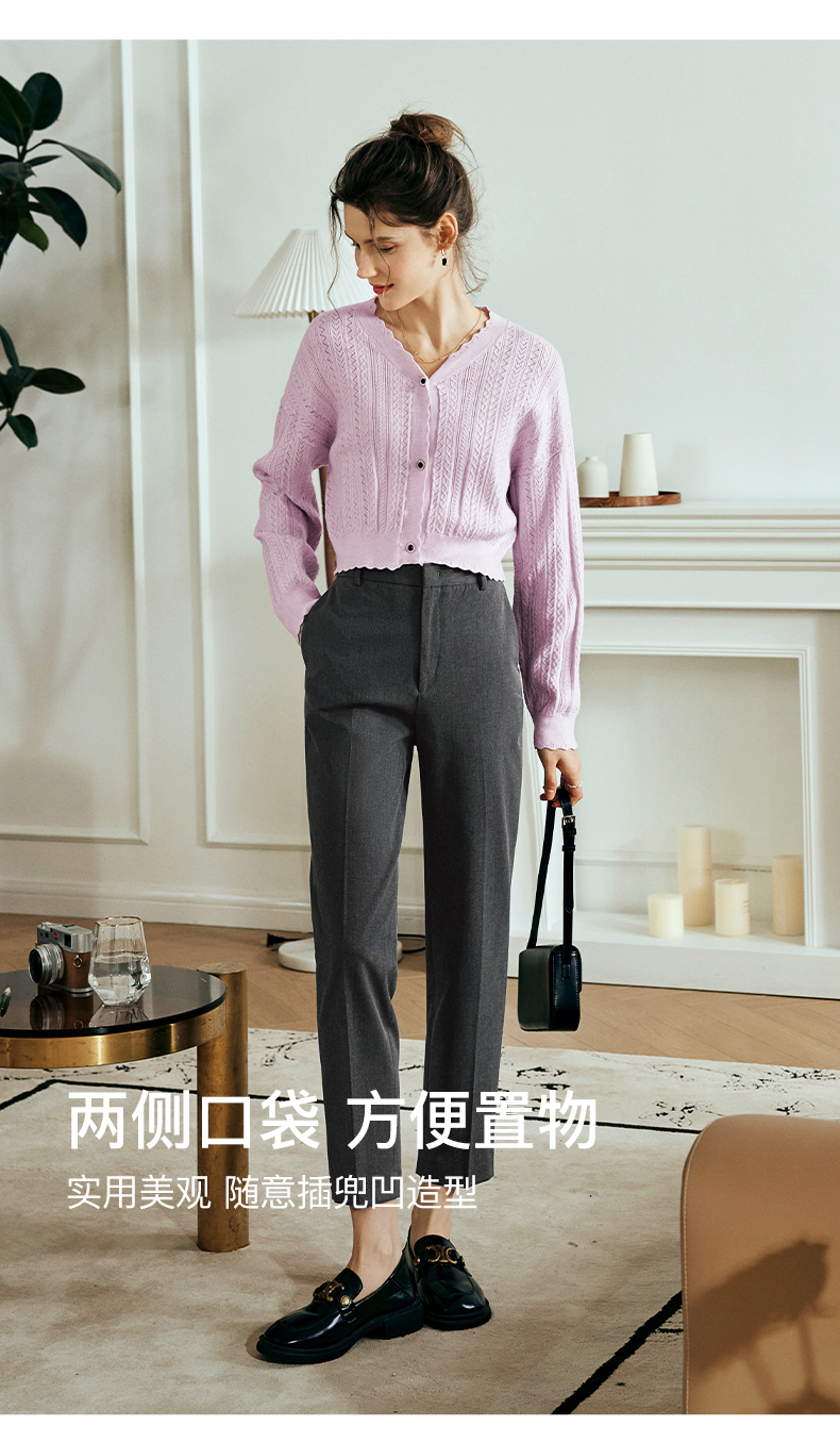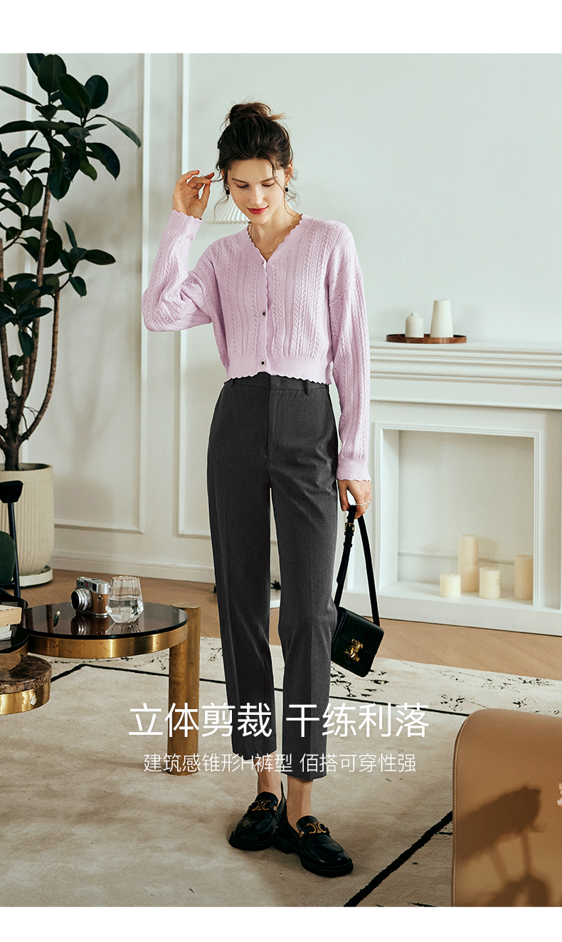 OLrain欧芮儿法式深灰色休闲裤女夏季2023新款高腰锥形九分小脚裤