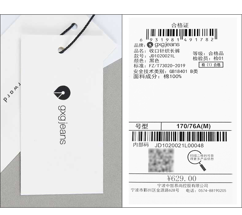 gxg.jeans男装春季休闲裤男潮流工装运动束脚裤
