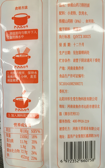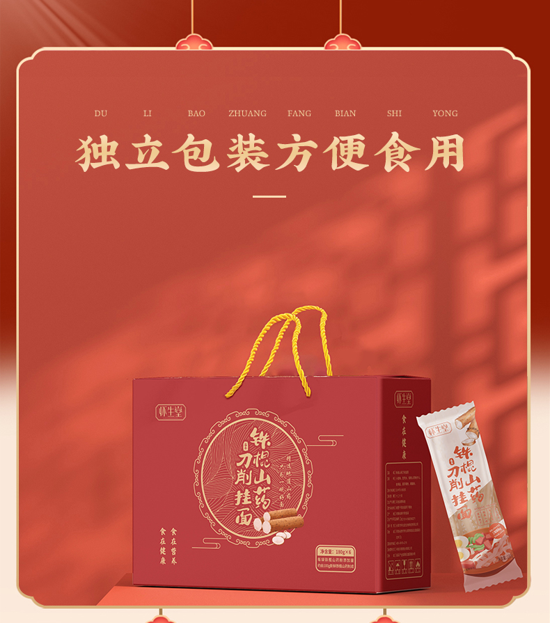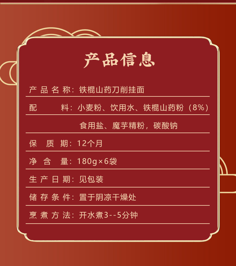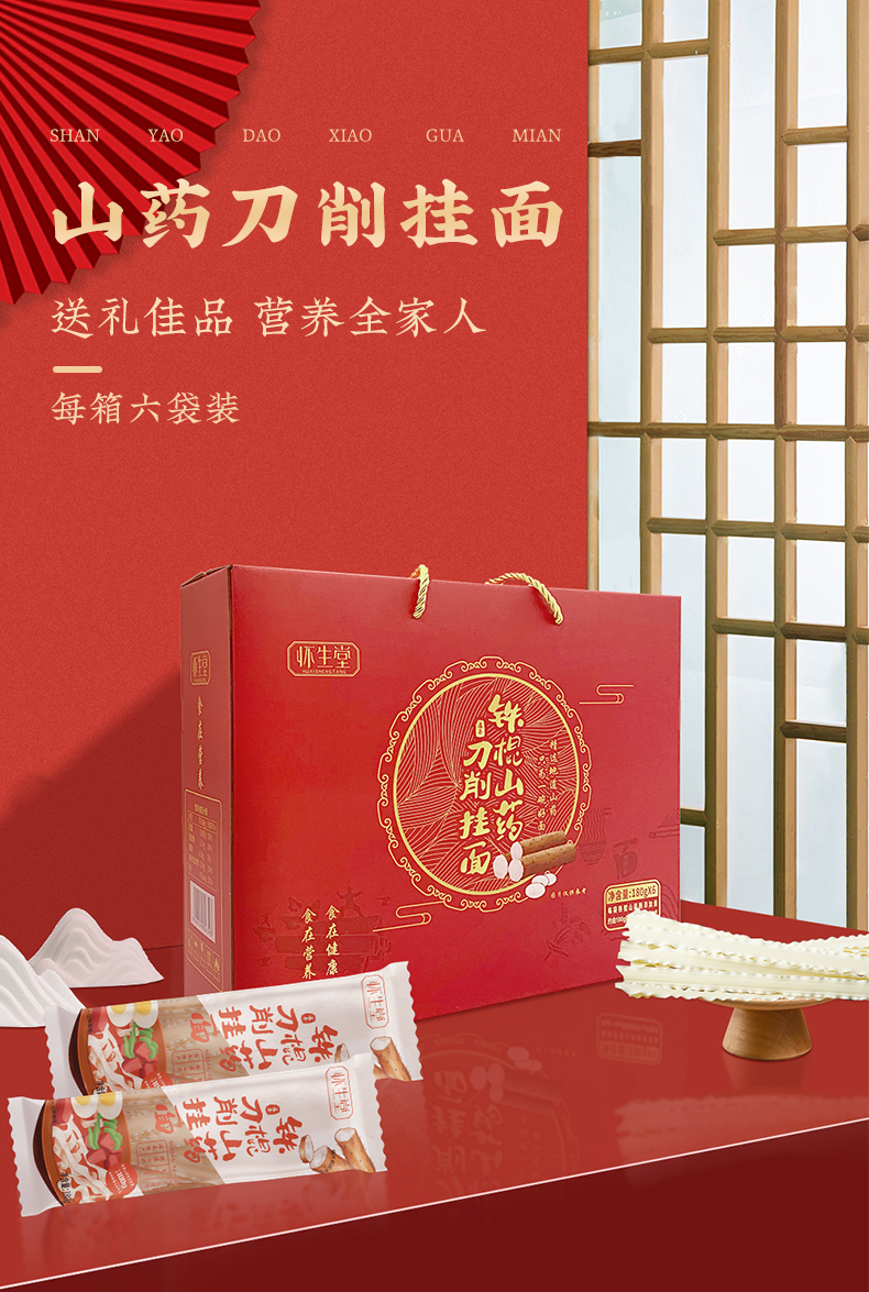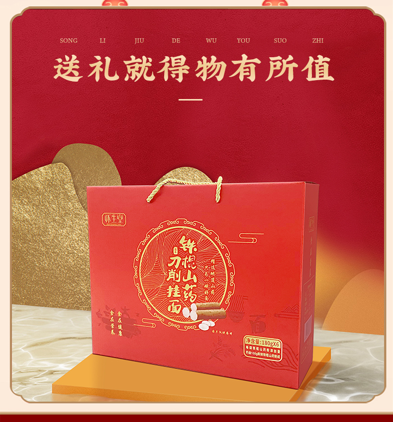 【年货】铁棍山药刀削面礼盒装1080g(每盒6袋/180g),送礼自食营养建卡
