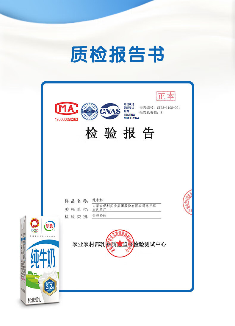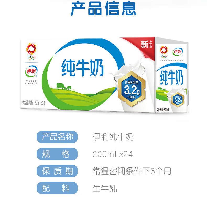 伊利无菌砖纯牛奶200ml*24盒