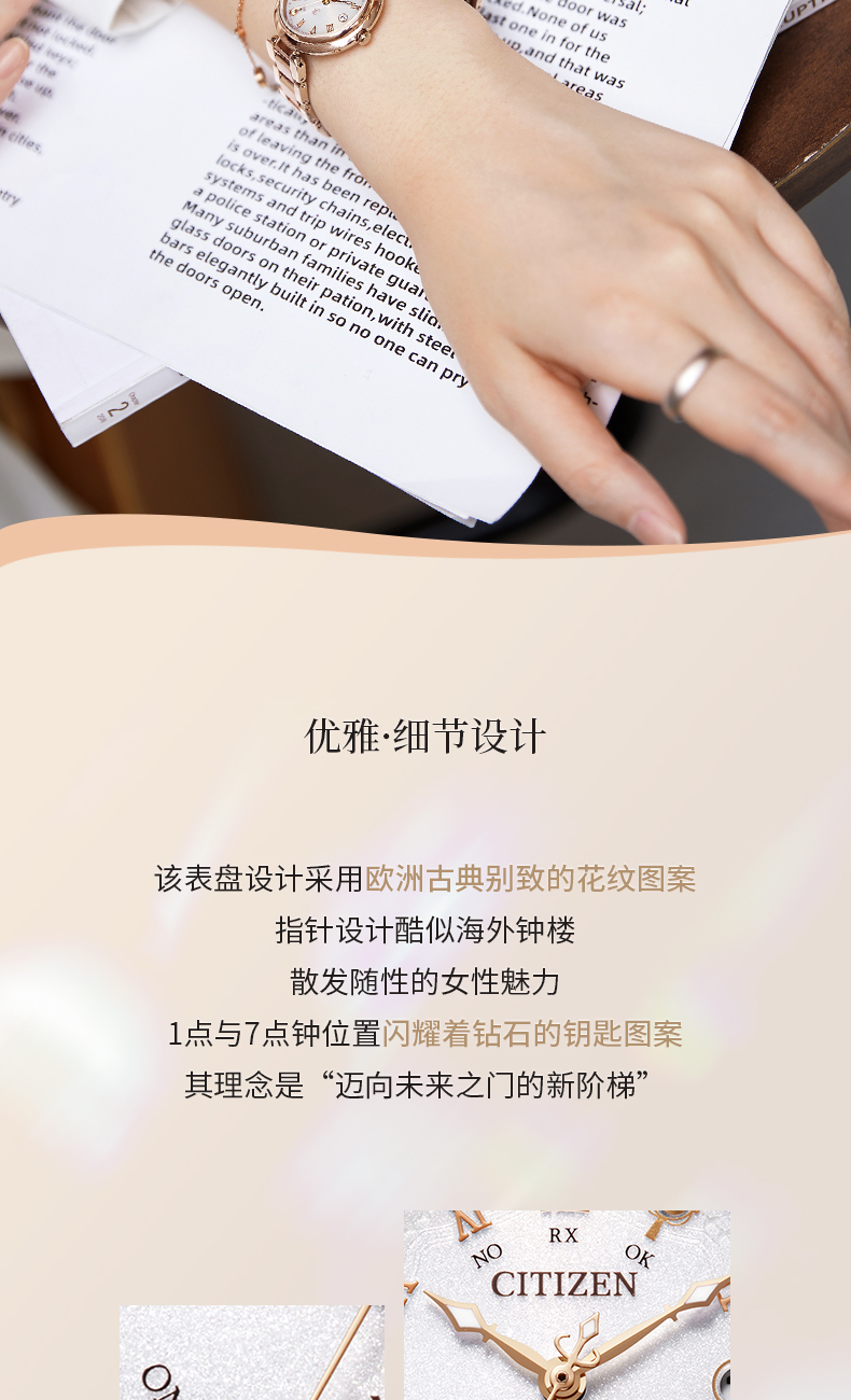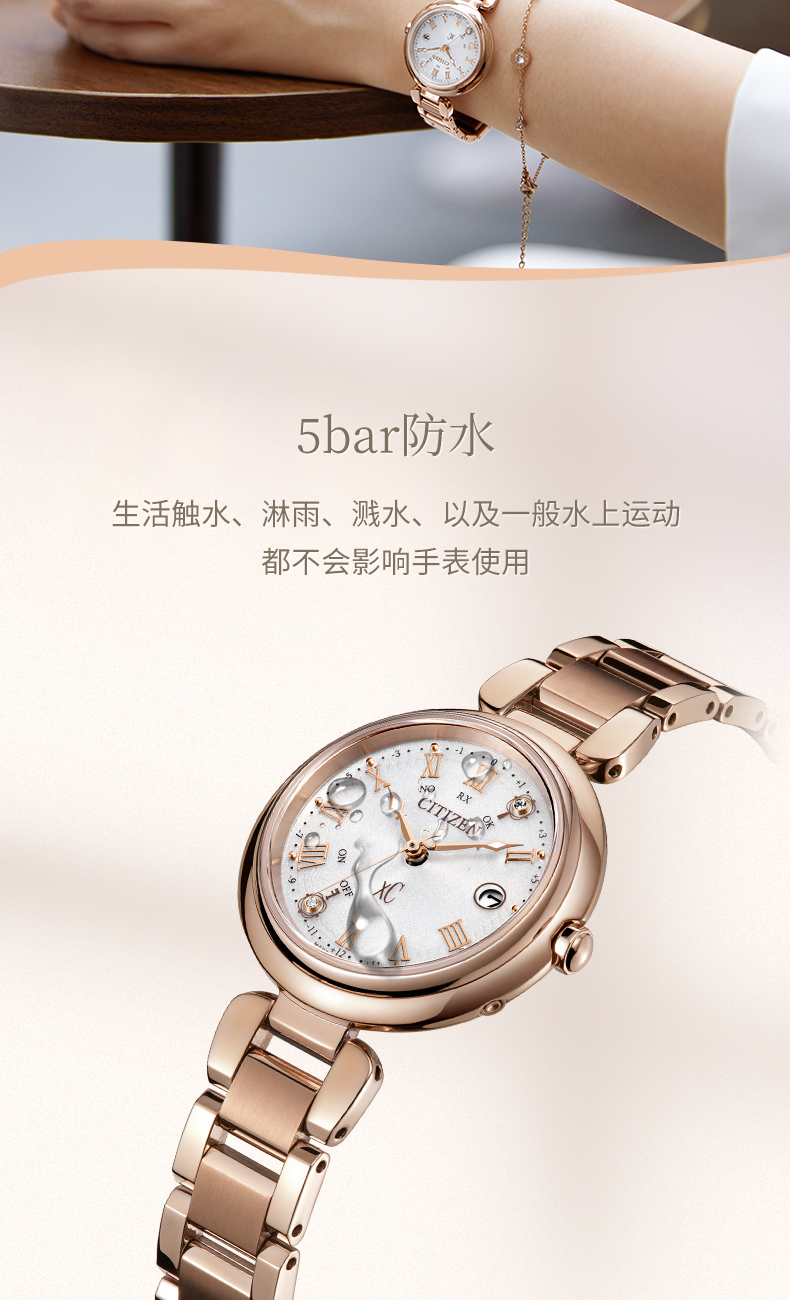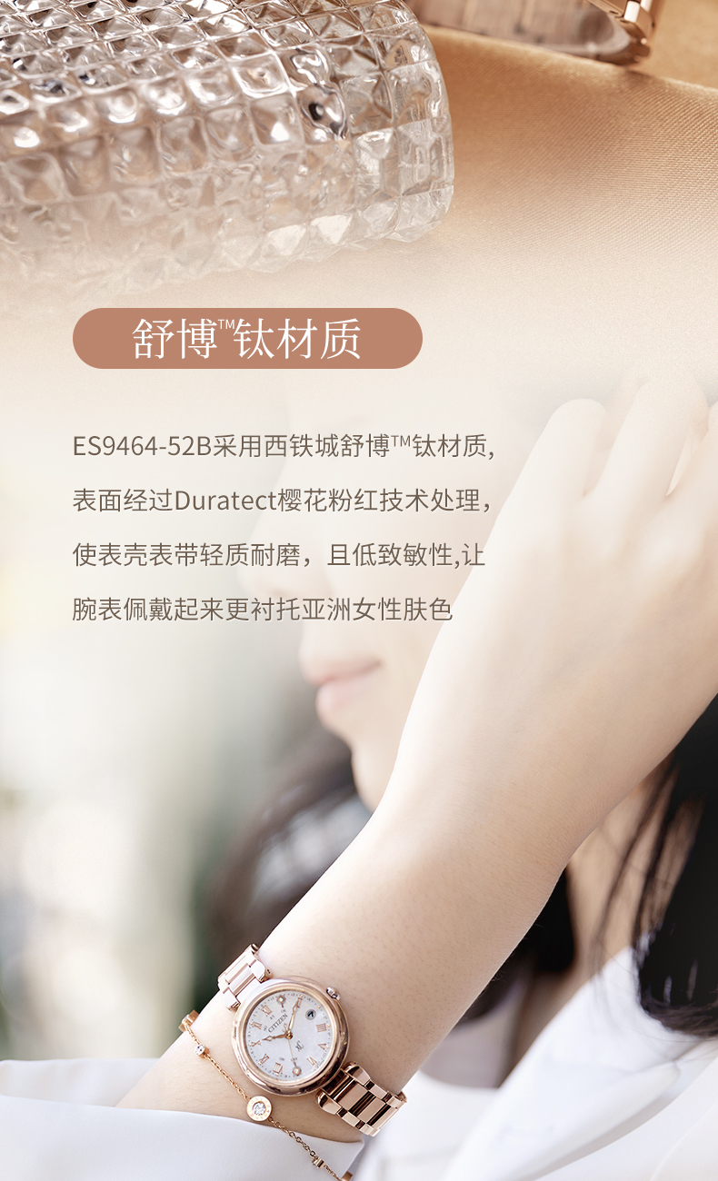 西铁城官方正品夏季新品玫瑰金色时尚光动能女表ES9464-52B