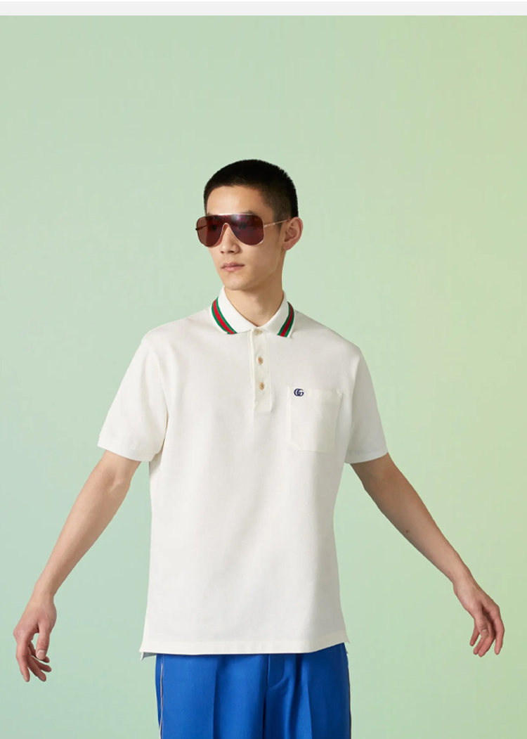 GUCCI 古驰 男士饰双G珠地棉短袖Polo衫 白色 752604 XJFTL 9733
