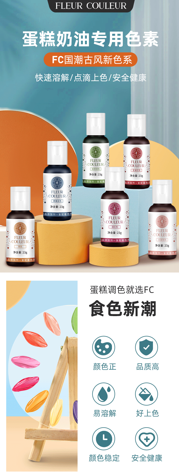 FC法采食用色素 奶油蛋糕裱花翻糖食品级水性色素 烘焙颜料