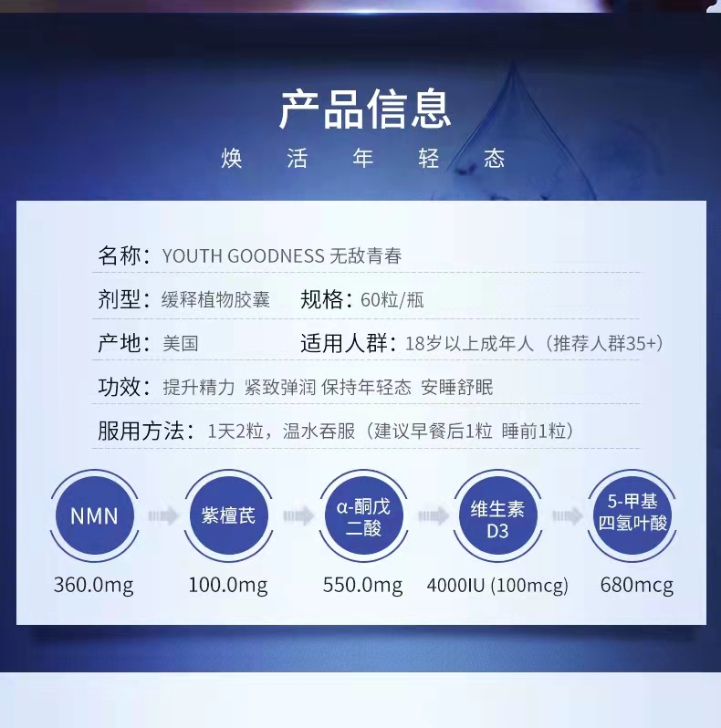 【清仓价】瑞士NMNX10800时空瓶 YOUTHGOODNESS青春胶囊 nad+ 进口NMN复合配方