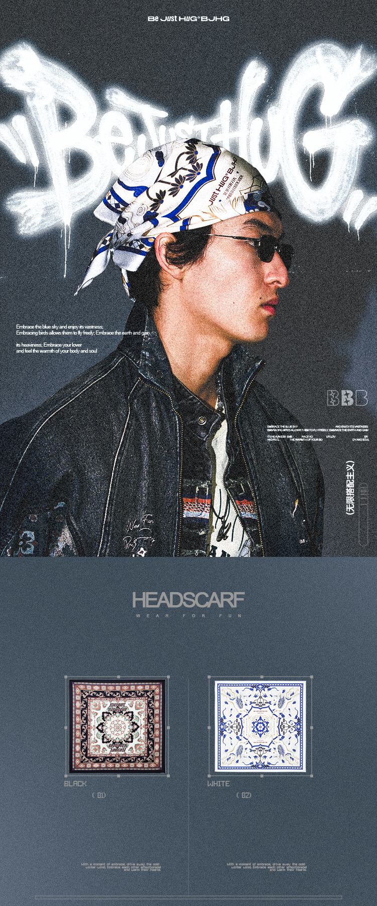【敦煌联名】BJHG不计后果设计感头巾男新款潮百搭配饰撞色方巾女