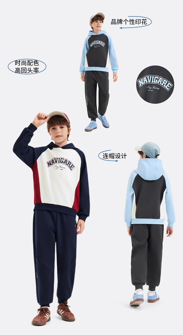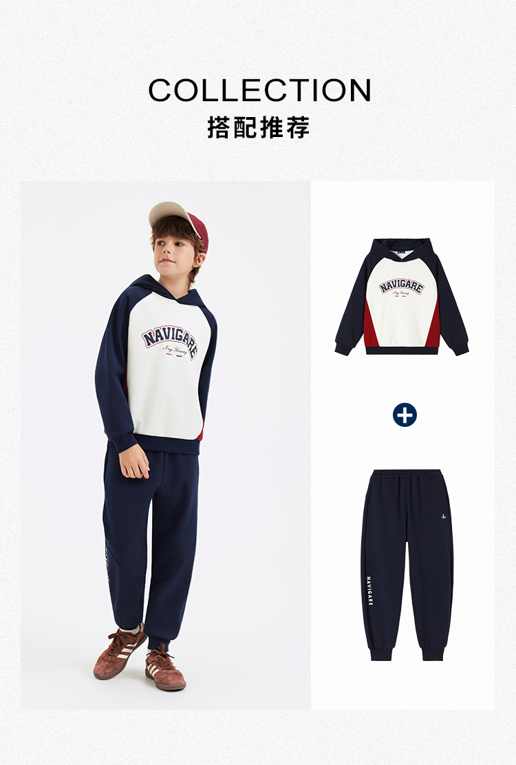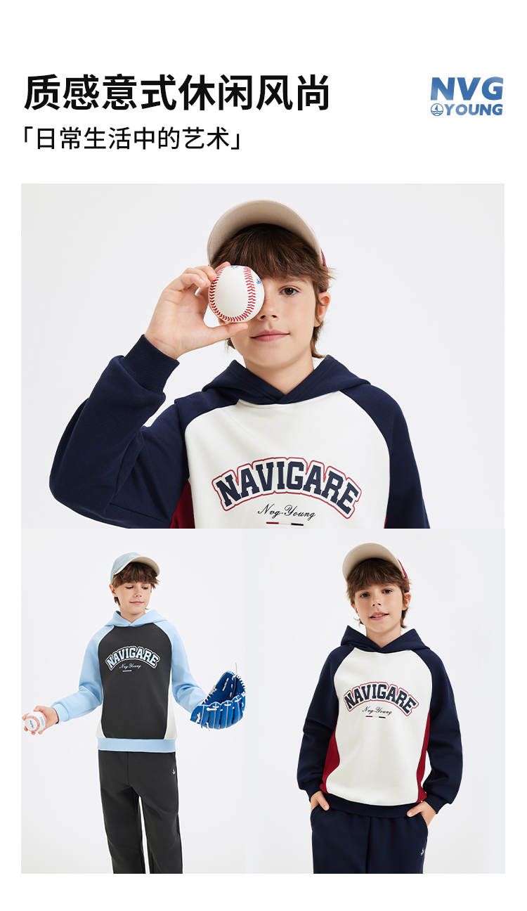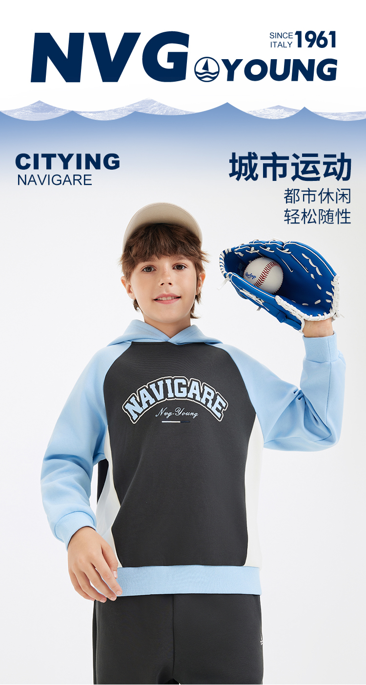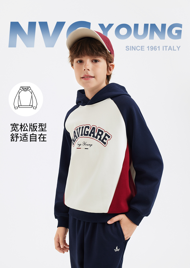 【纳维凯尔】【加绒】【130-170】意大利小帆船男童复合摇粒绒保暖卫衣