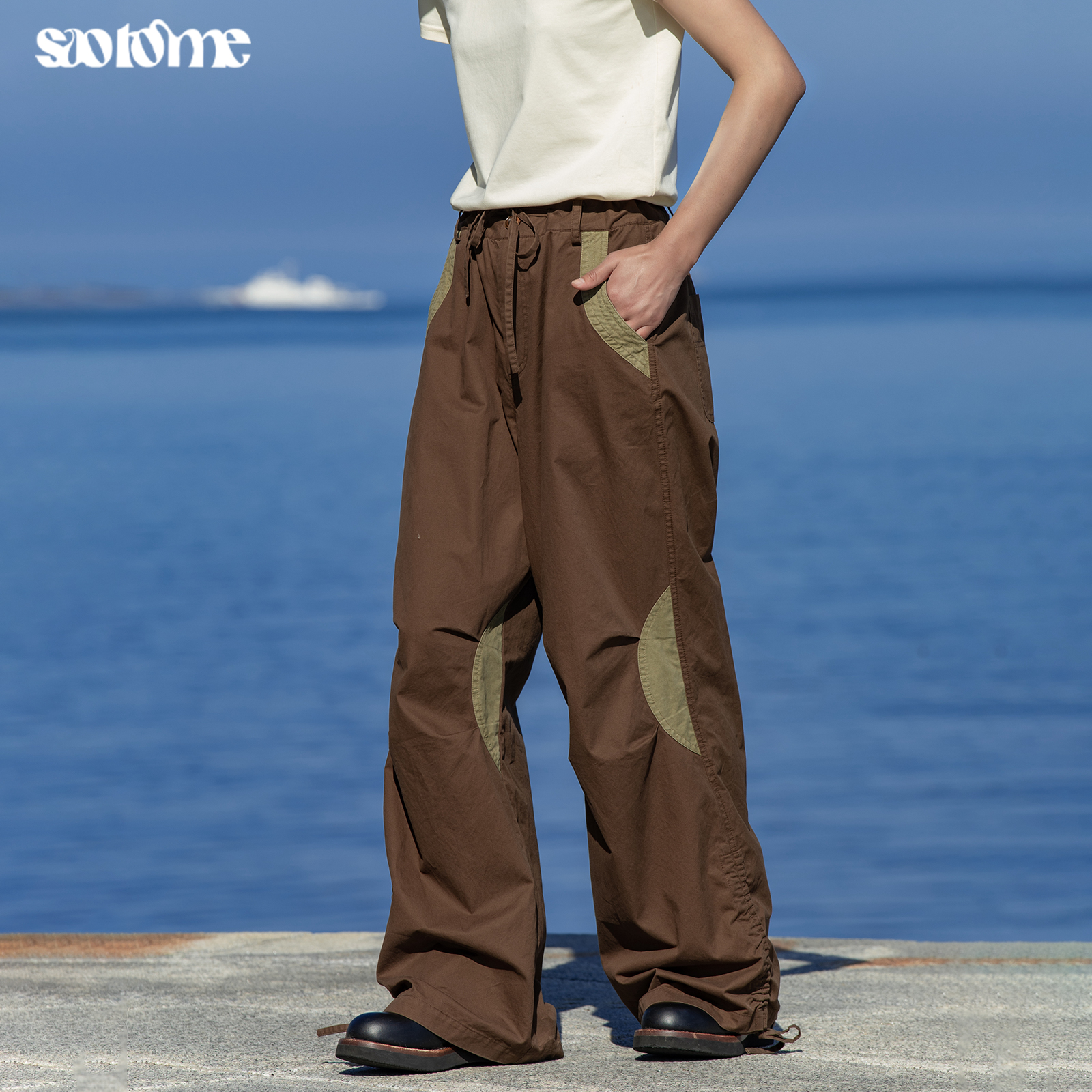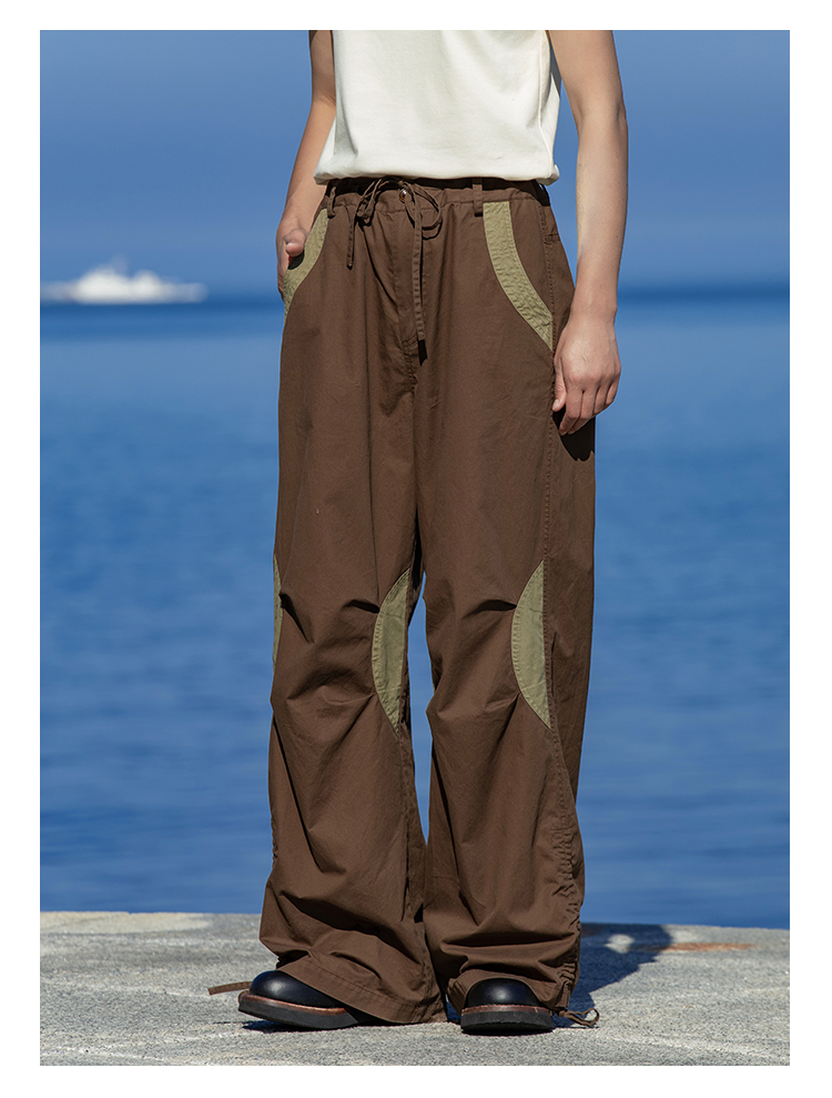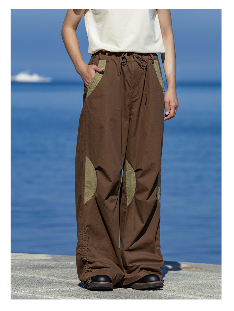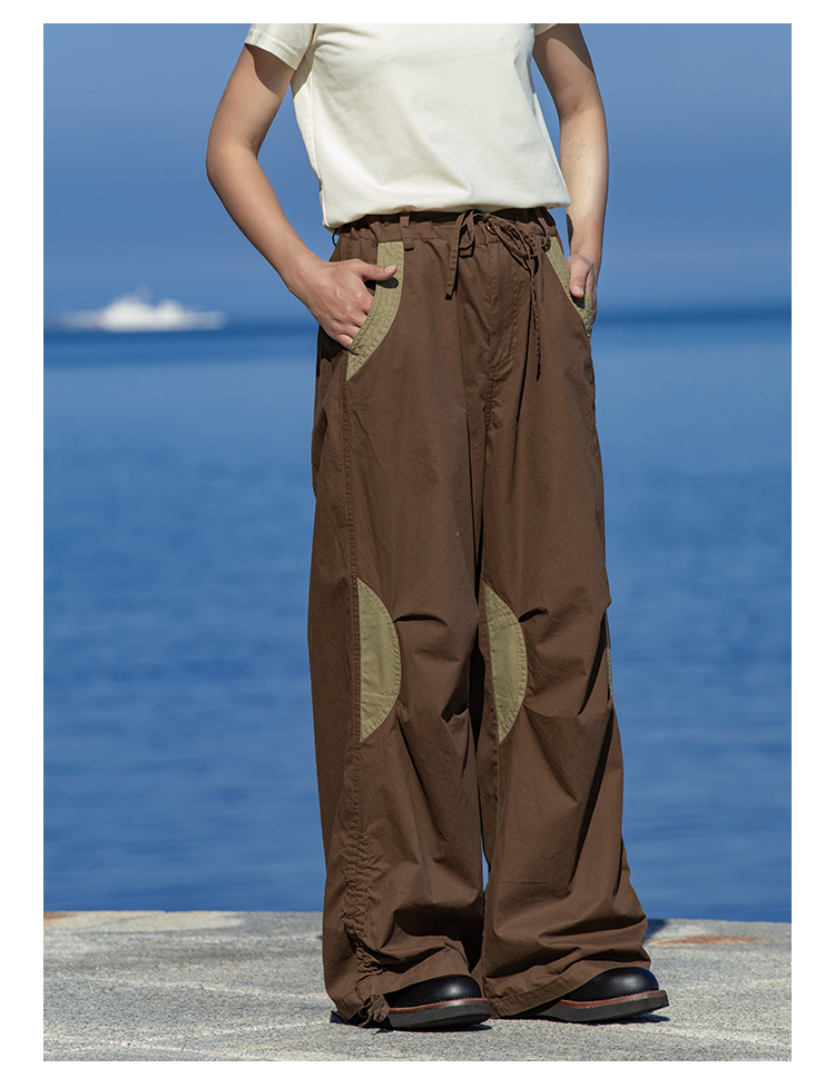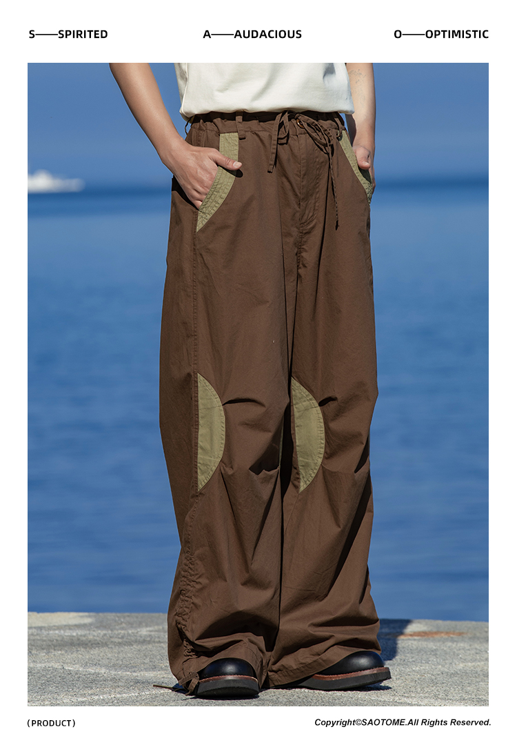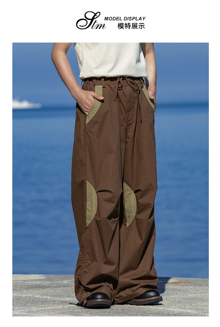 早乙女惠子saotome/STMCK242086/水洗撞色抽褶工装裤