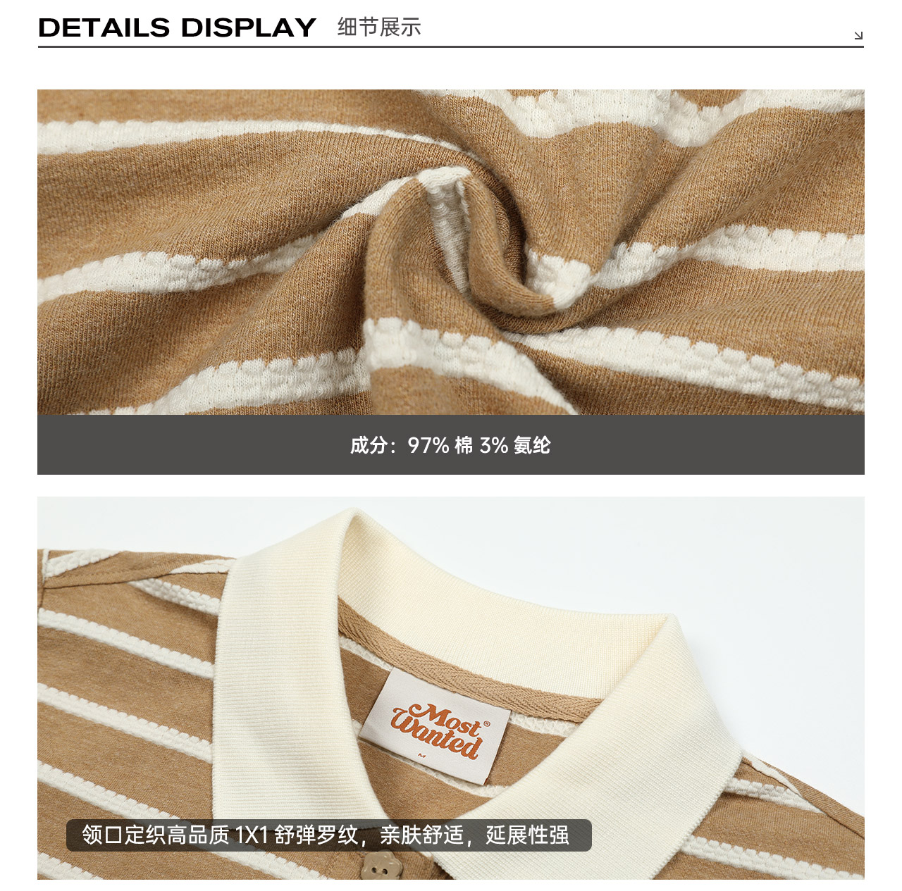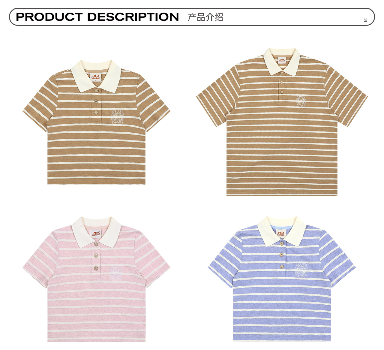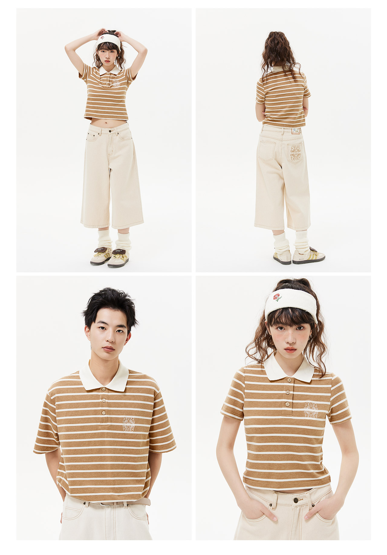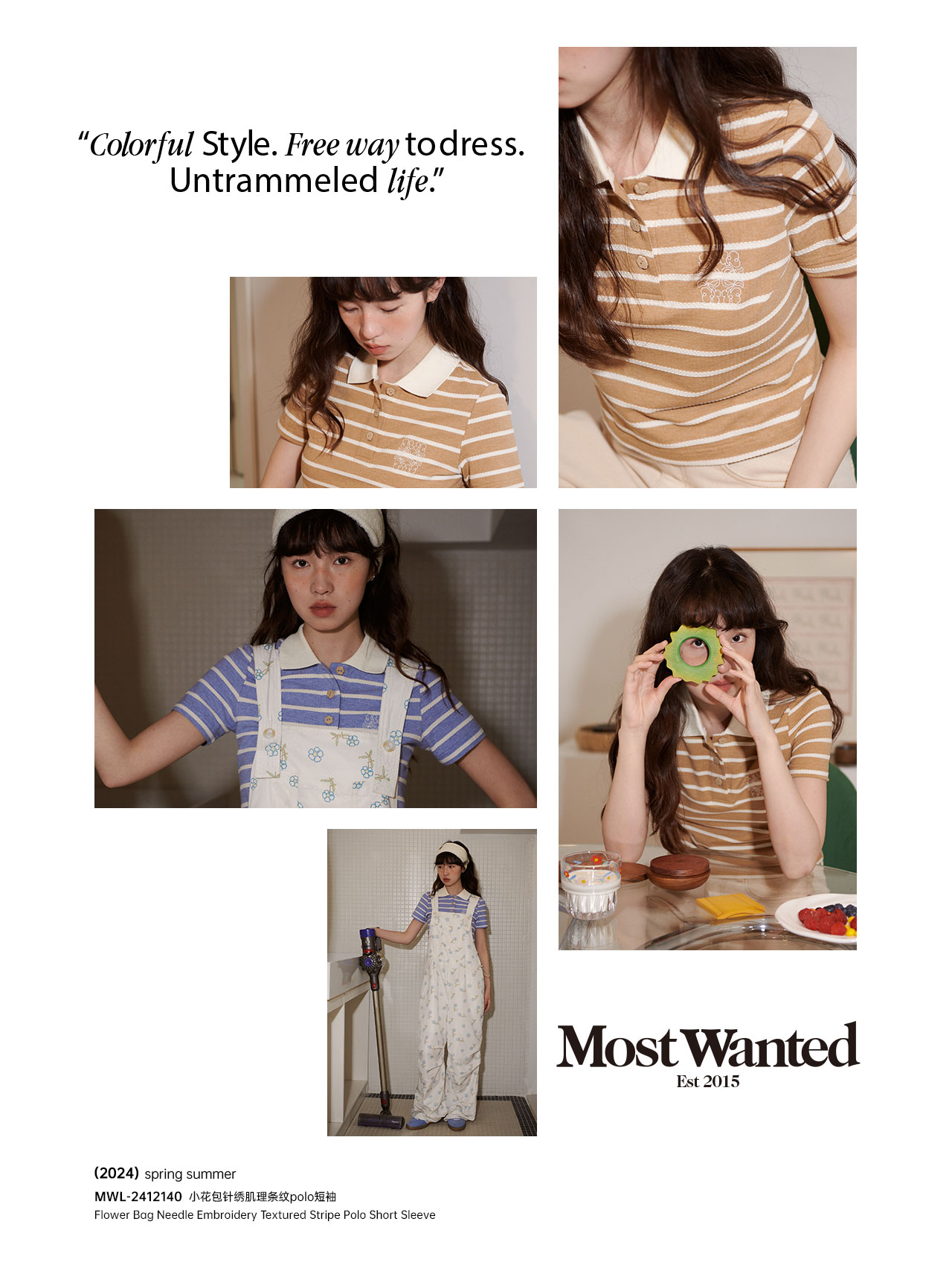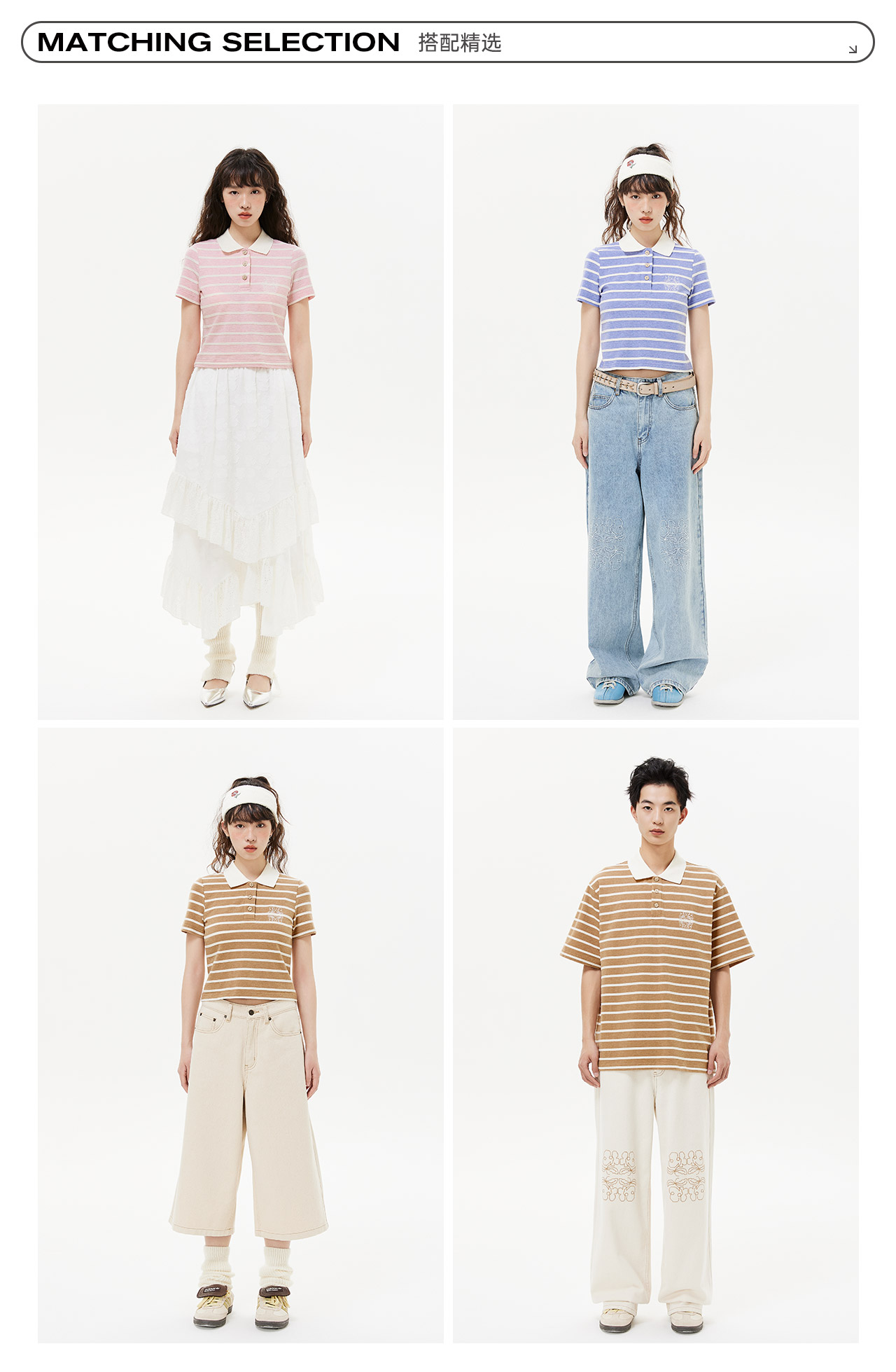 mostwantedlab彩虹/M2412140/小花包针绣肌理条纹t恤女新款夏季polo衫短袖男
