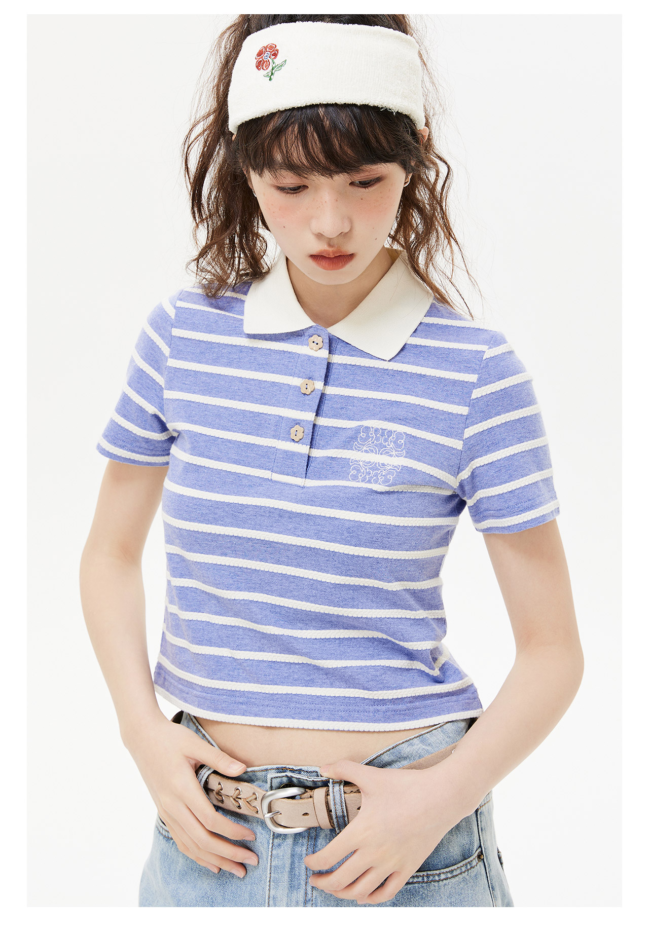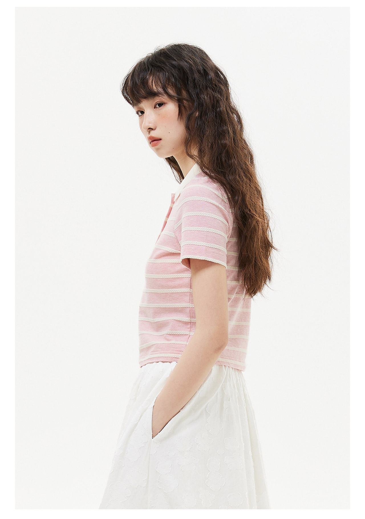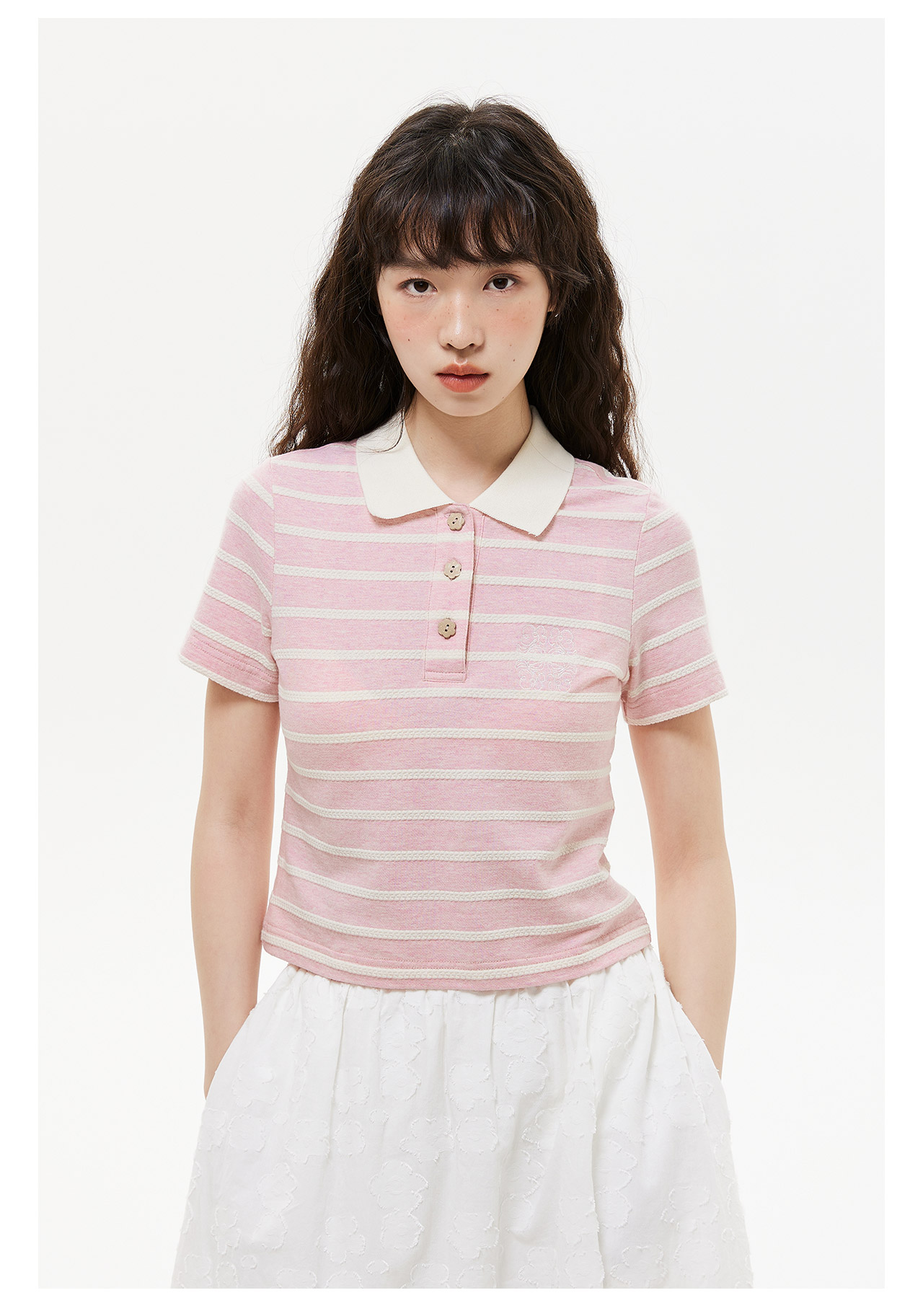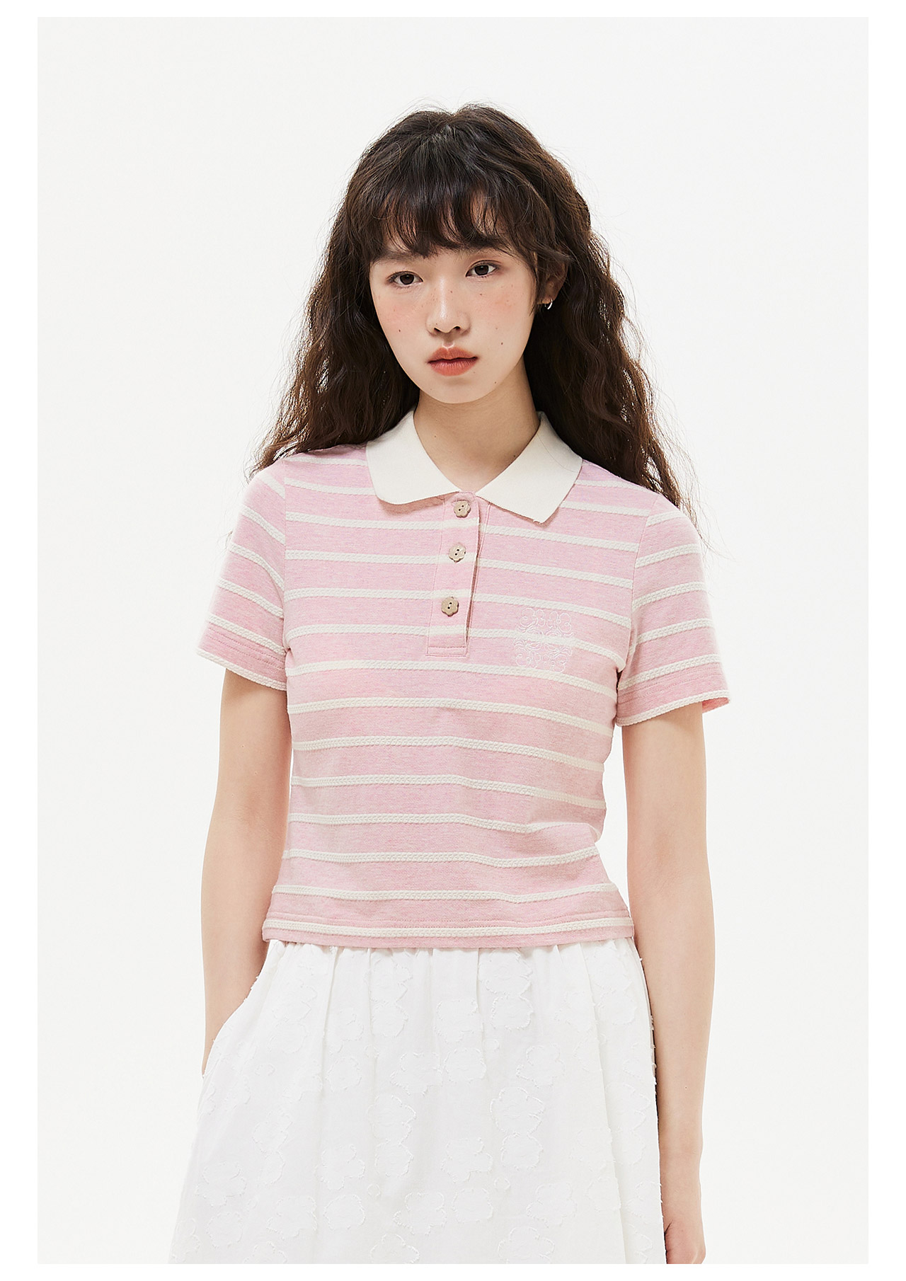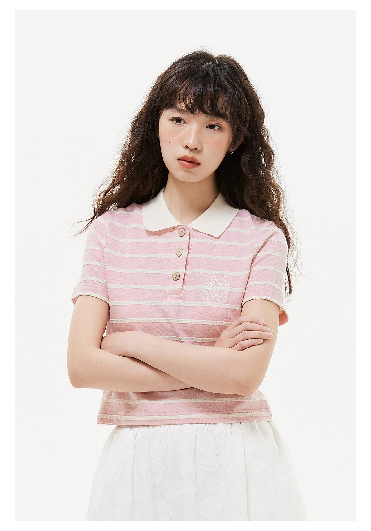 mostwantedlab彩虹/M2412140/小花包针绣肌理条纹t恤女新款夏季polo衫短袖男