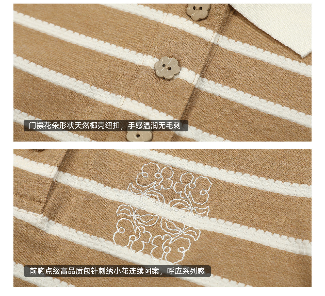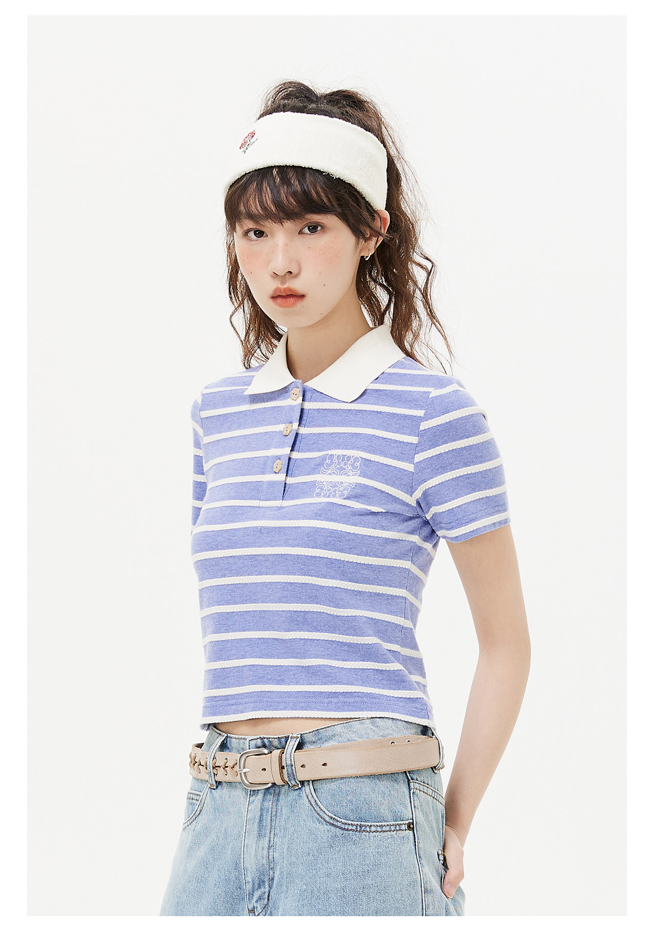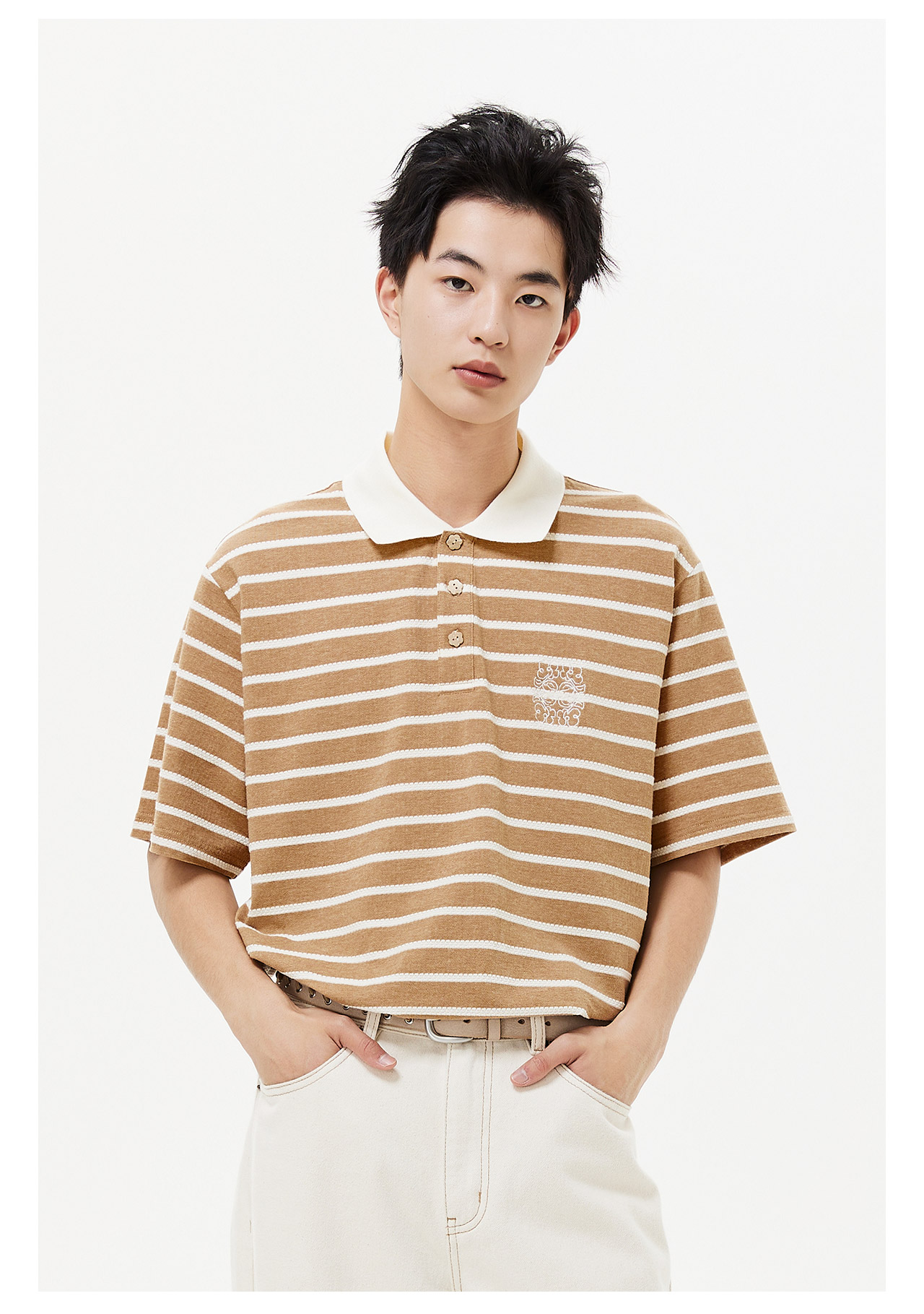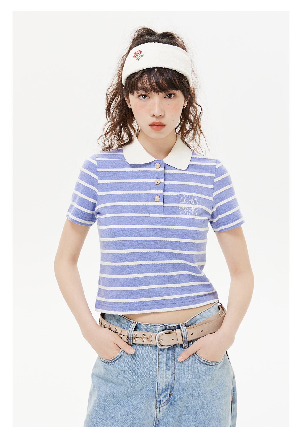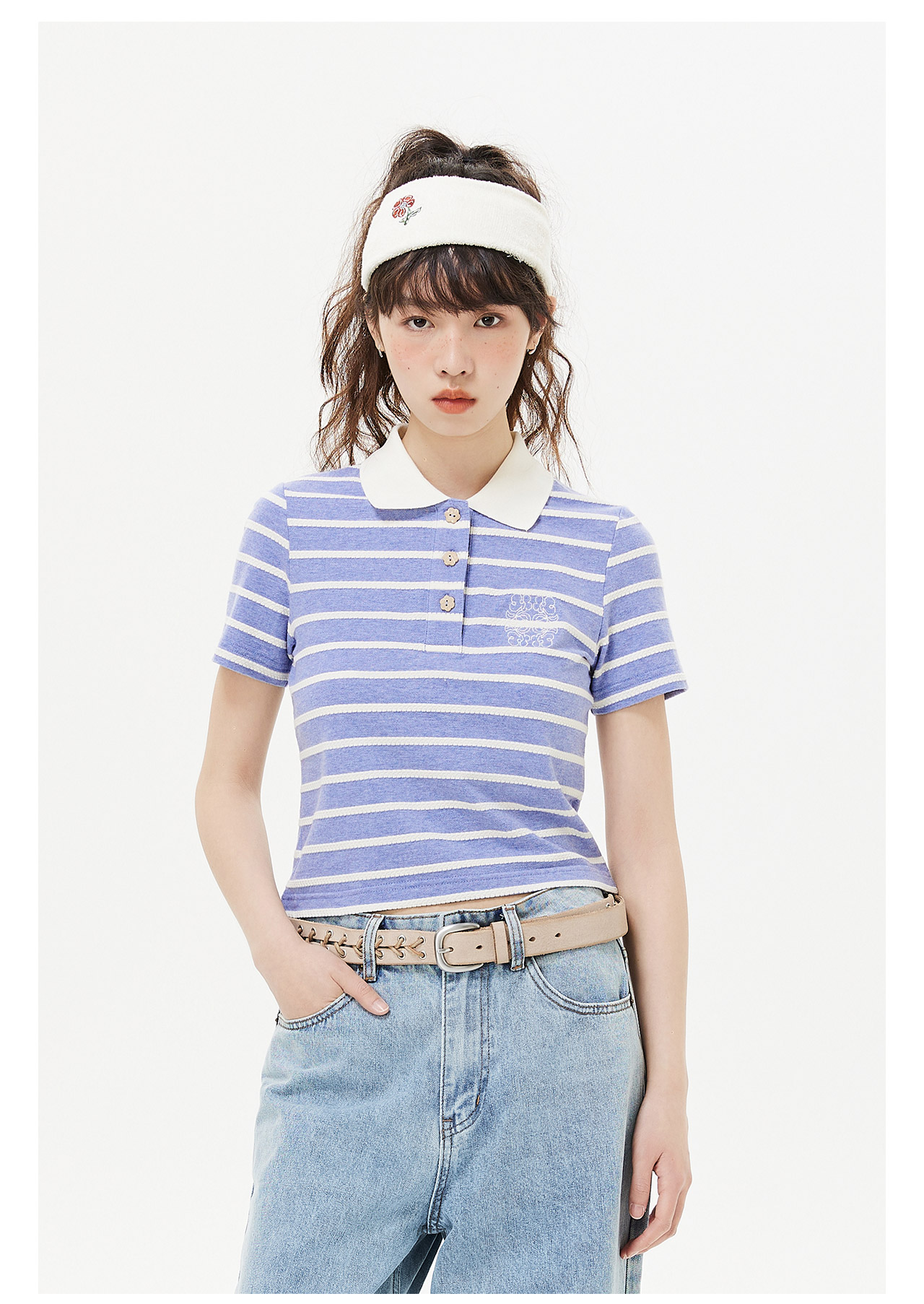 mostwantedlab彩虹/M2412140/小花包针绣肌理条纹t恤女新款夏季polo衫短袖男