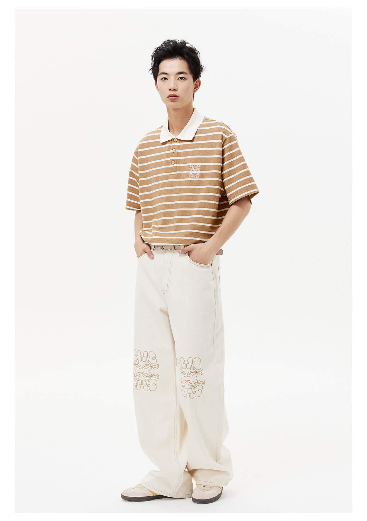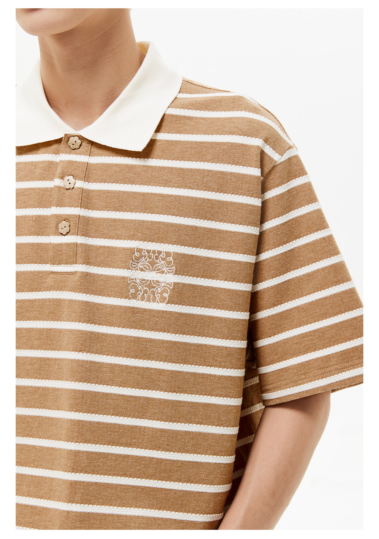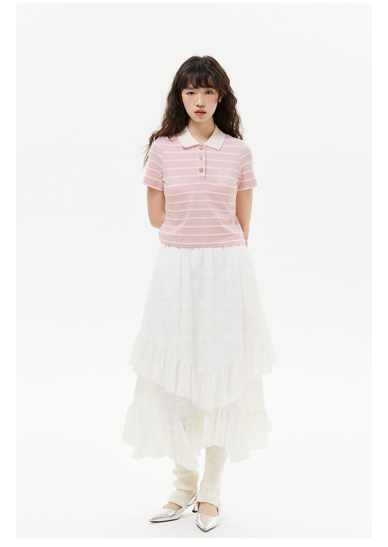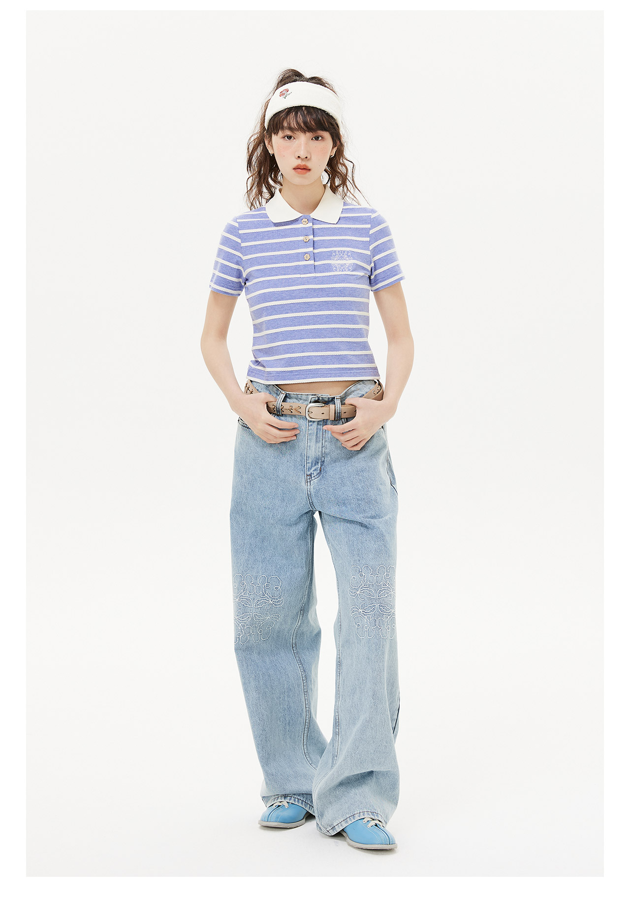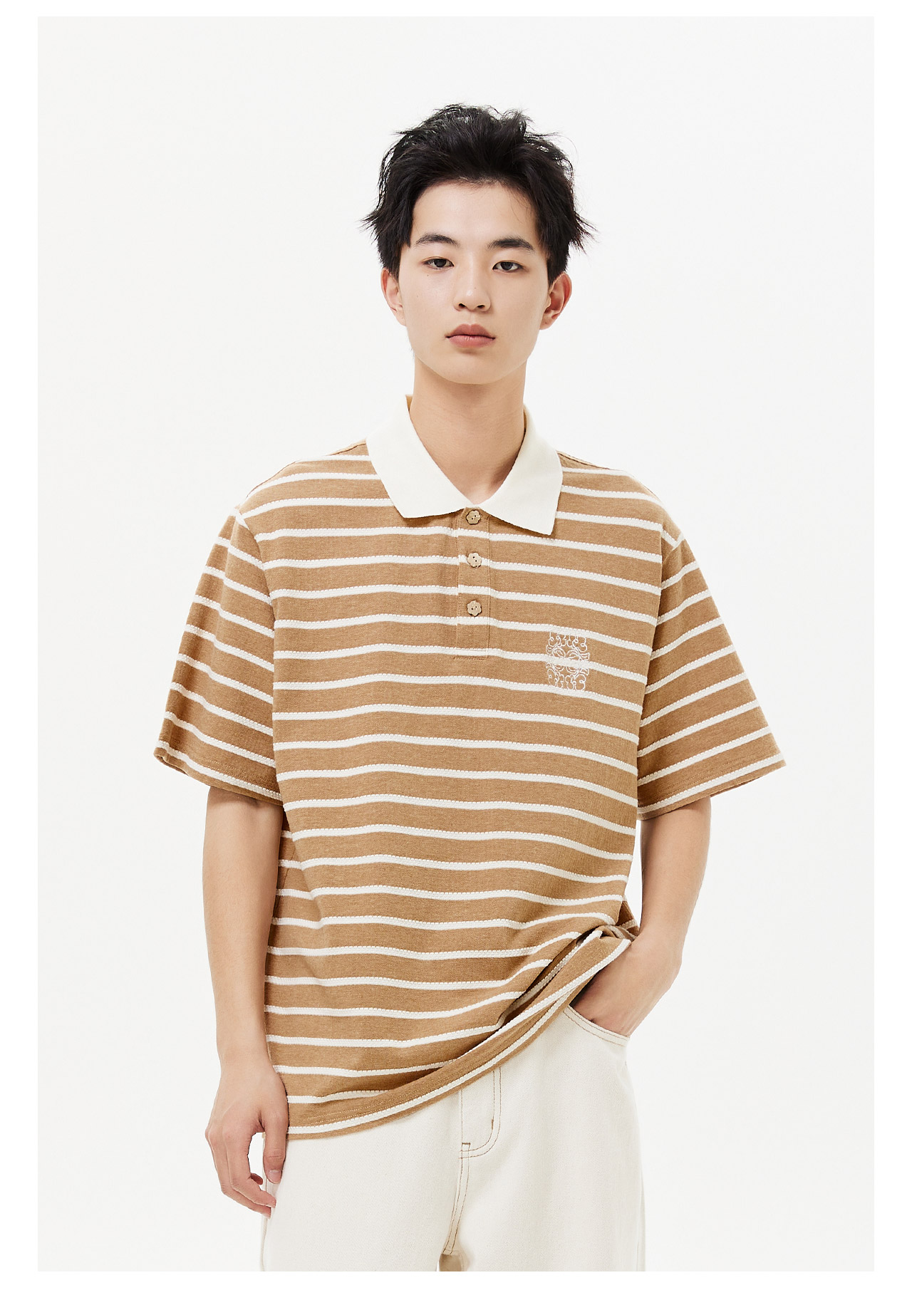mostwantedlab彩虹/M2412140/小花包针绣肌理条纹t恤女新款夏季polo衫短袖男
