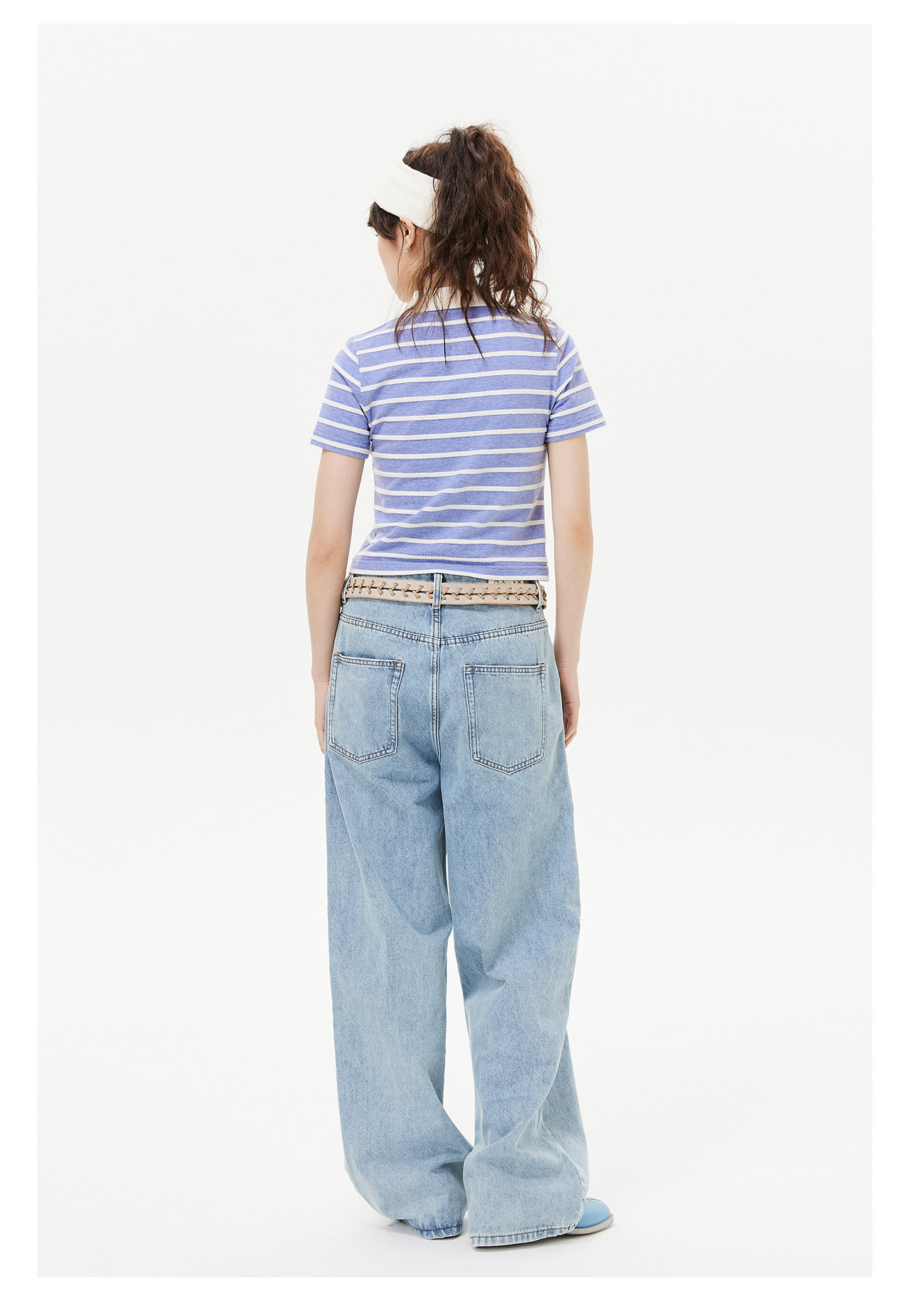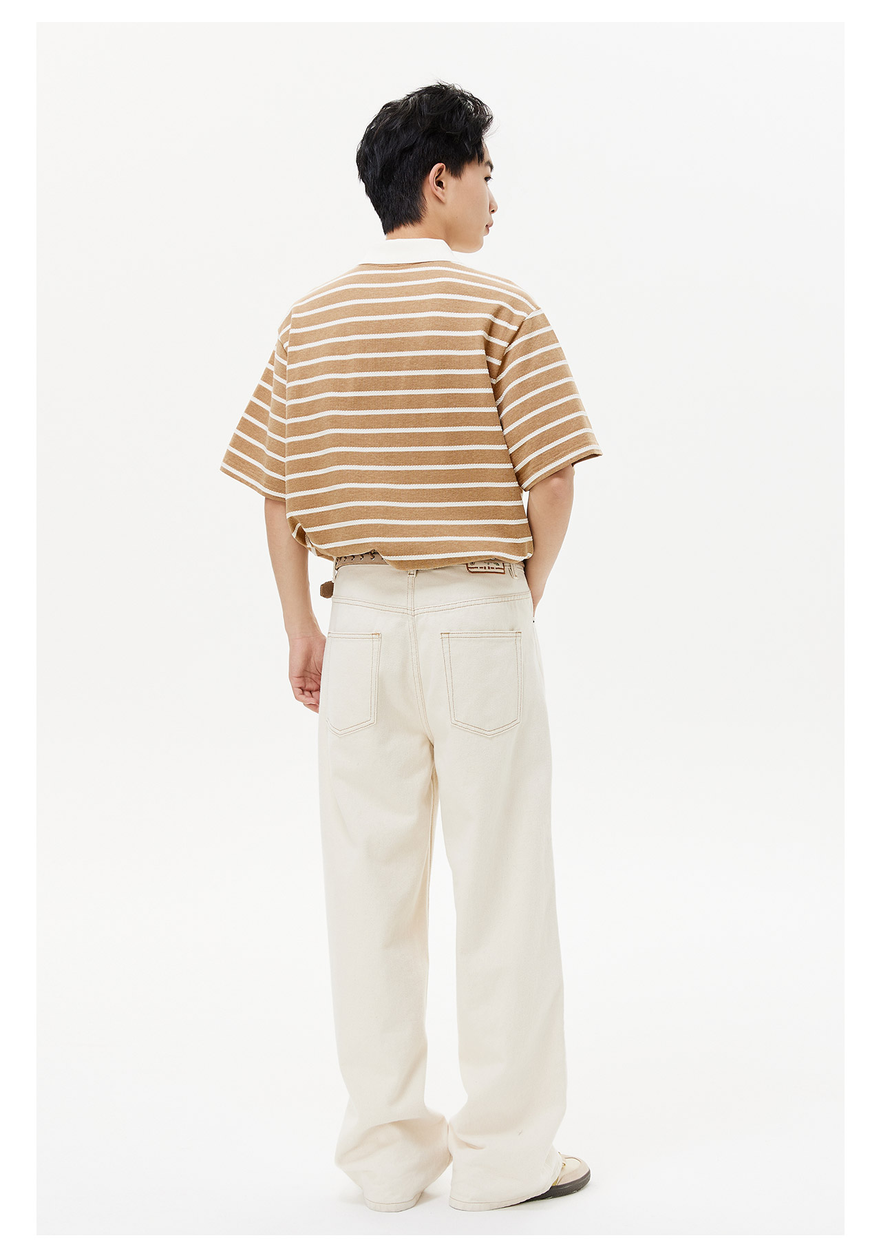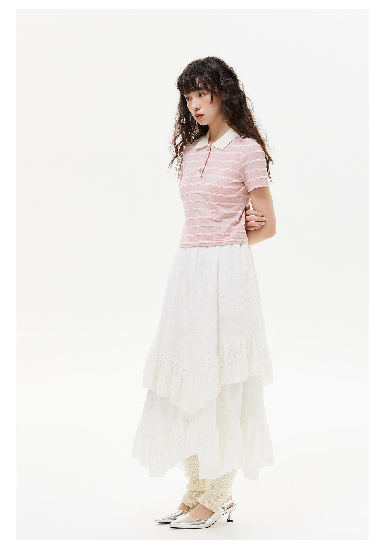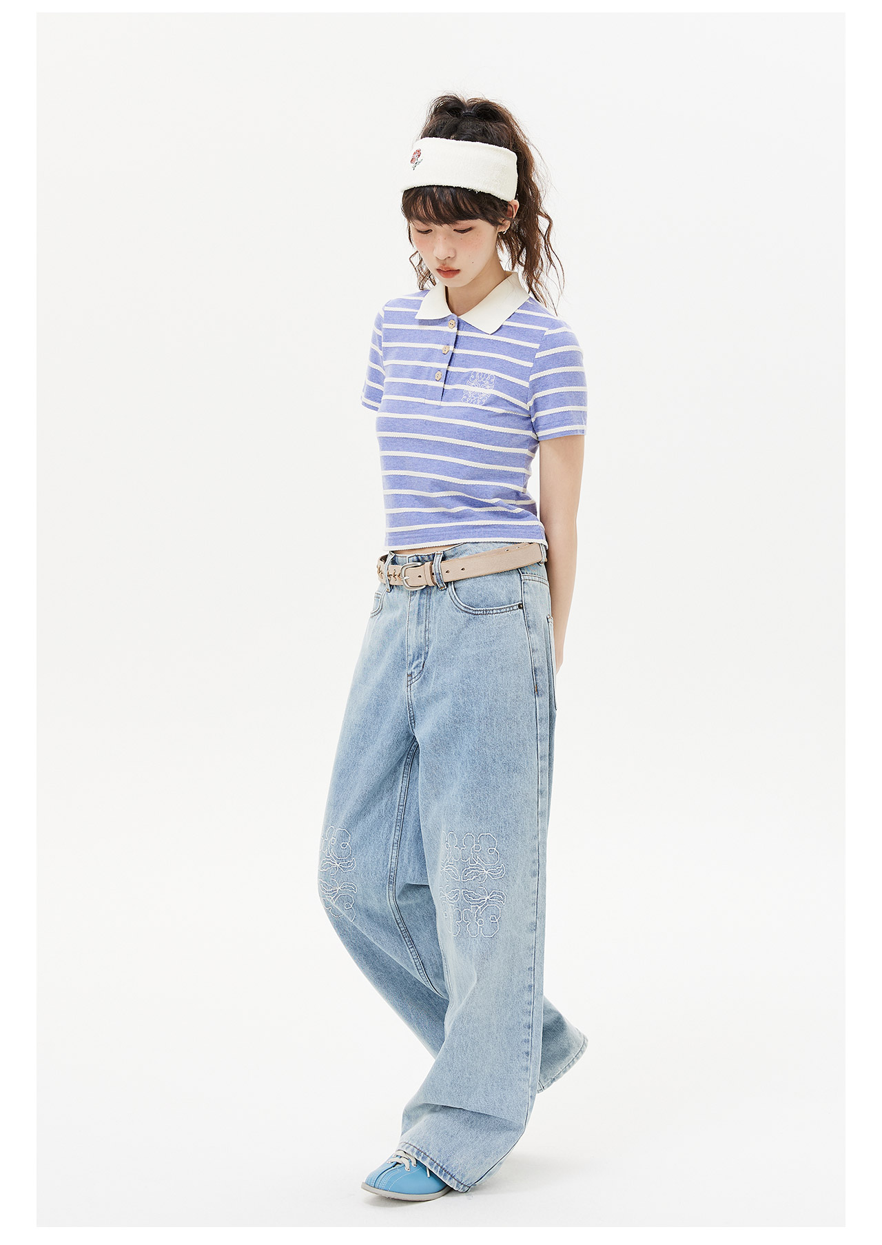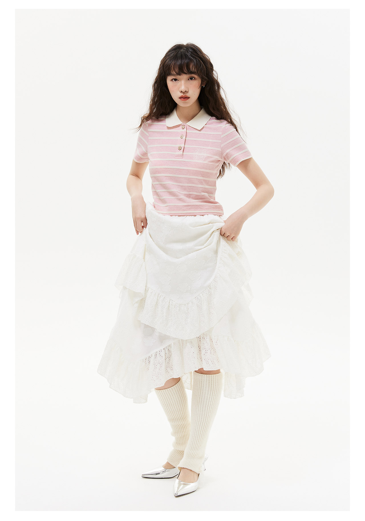 mostwantedlab彩虹/M2412140/小花包针绣肌理条纹t恤女新款夏季polo衫短袖男