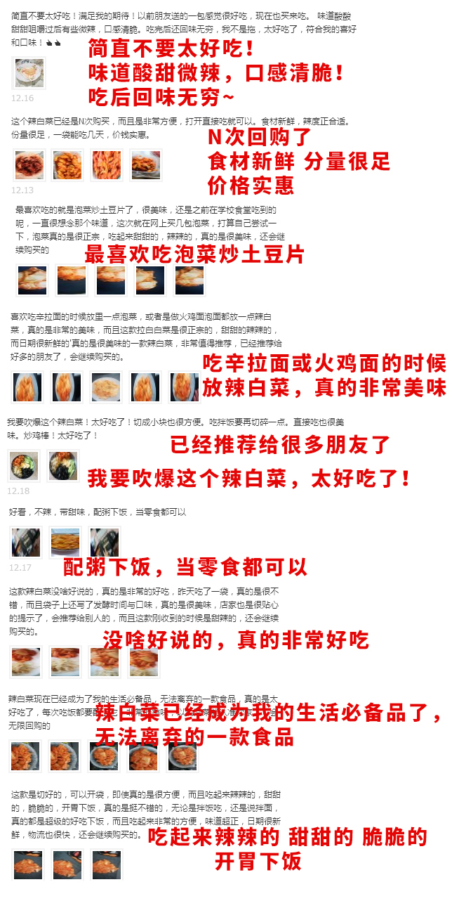 另外,这款韩式辣白菜,因其独特脆爽的嚼劲、甜辣的口感,得到了大众一致的好评。品尝过这款辣白菜的用户,更是对它赞不绝口!