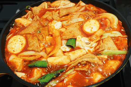 做法:新鲜白菜铺满锅底,再放上一层辣白菜,依次摆上香菇、豆腐、年糕、午餐肉、芝士、辛拉面等各种你爱吃的,加水,放韩式辣酱,慢火炖煮,煮到咕噜咕噜冒泡泡……