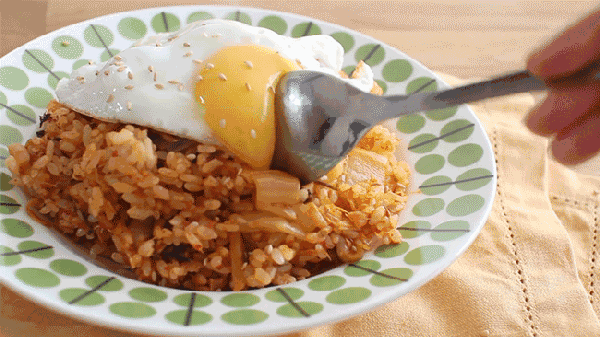 做法:将切好的葱末和辣白菜丁,依次倒入热好油的锅中翻炒片刻(辣白菜已经有咸味了,可以不用再加盐);接着倒入米饭翻炒均匀,再配上一个煎蛋简直完美!