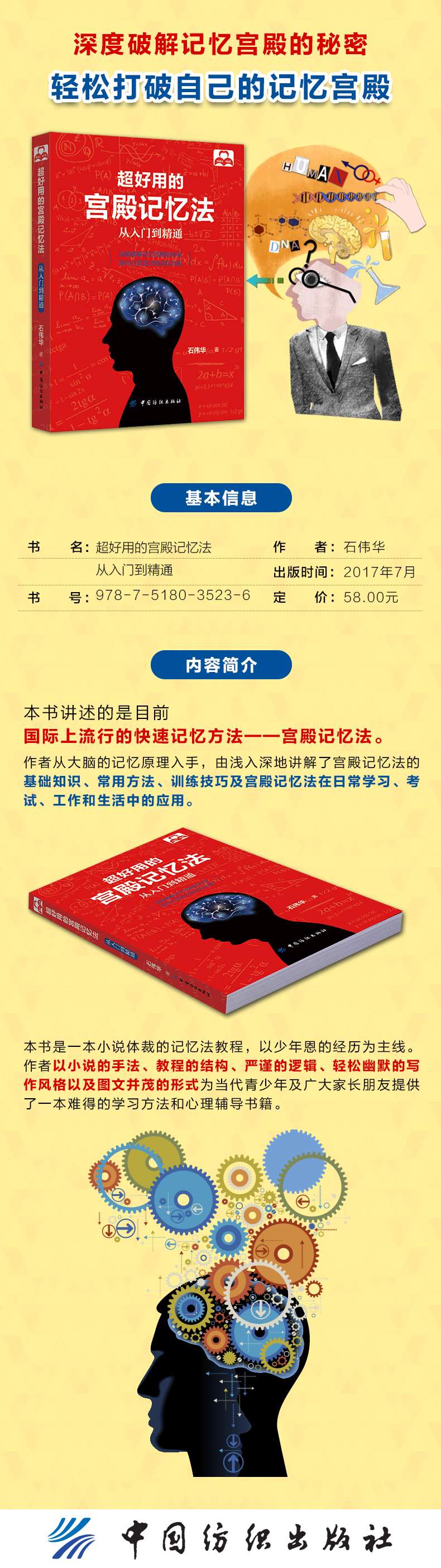 《超好用的宫殿记忆法:从入门到精通》讲述的是目前国际上#行的快速记忆方法——宫殿记忆法。作者从大脑的记忆原理入手,由浅入深地讲解了宫殿记忆法的基础知识、常用方法、训练技巧及宫殿记忆法在日常学习、考试、工作和生活中的应用。