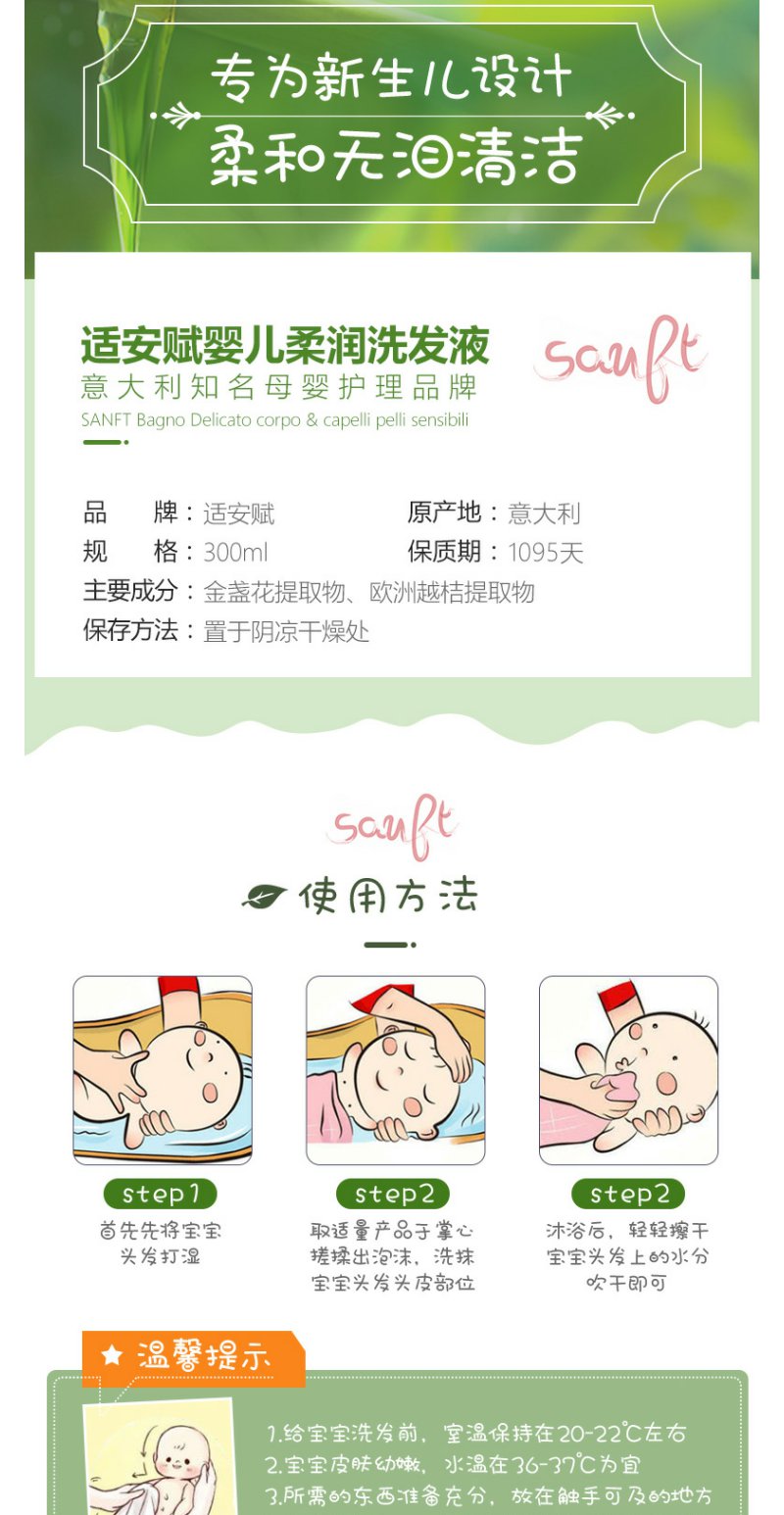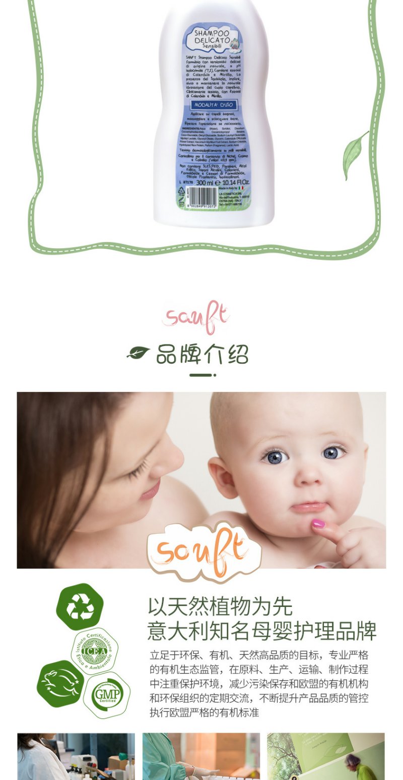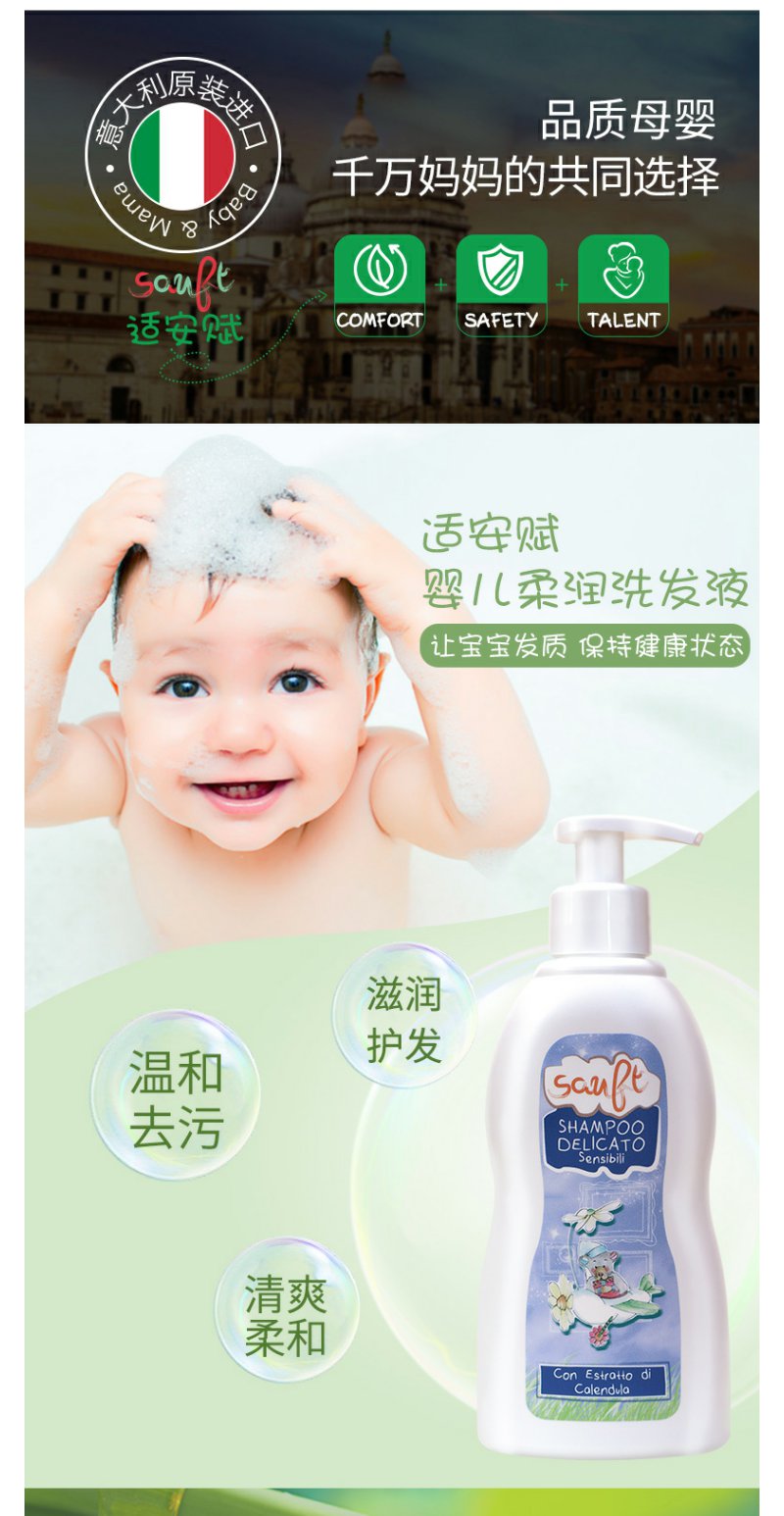 意大利适安赋新生儿洗发露婴儿洗发水300ml天然植萃宝宝洗头洗发