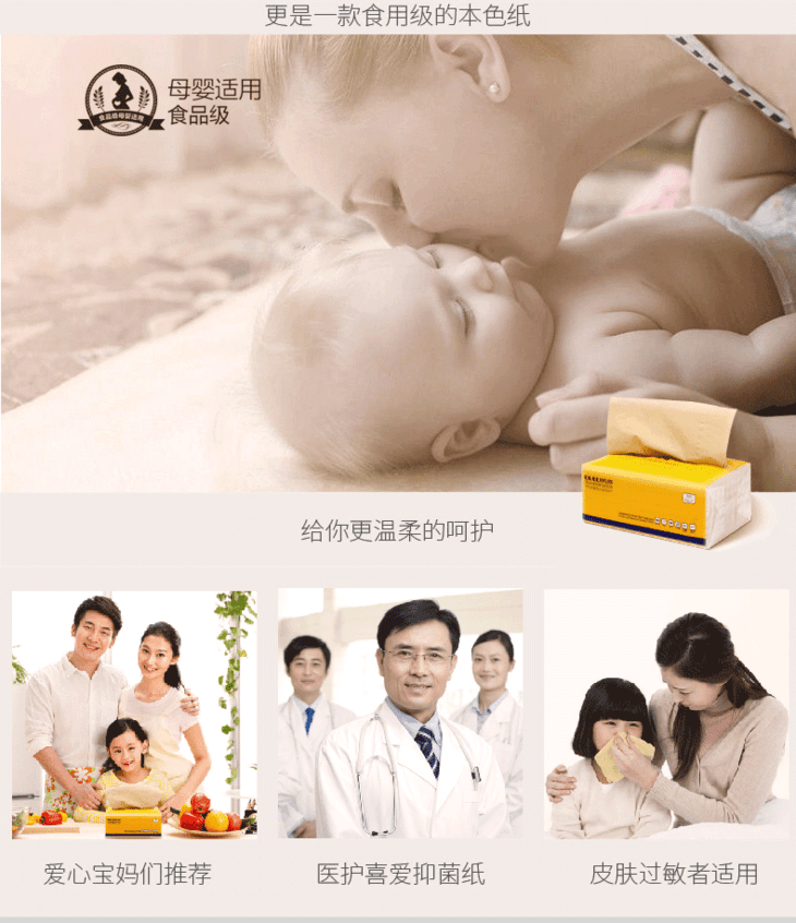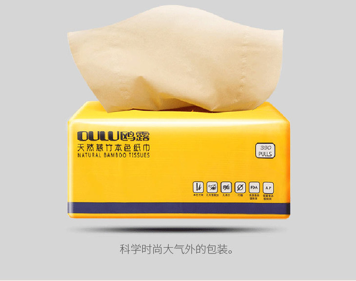鸥露竹纤维本色抽纸原浆纸巾竹浆卫生纸抽纸390抽