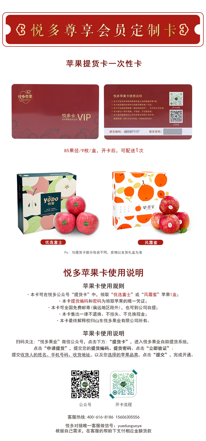苹果提货卡 红色 一次性卡(1盒)优选富士/风霜蜜 二选一