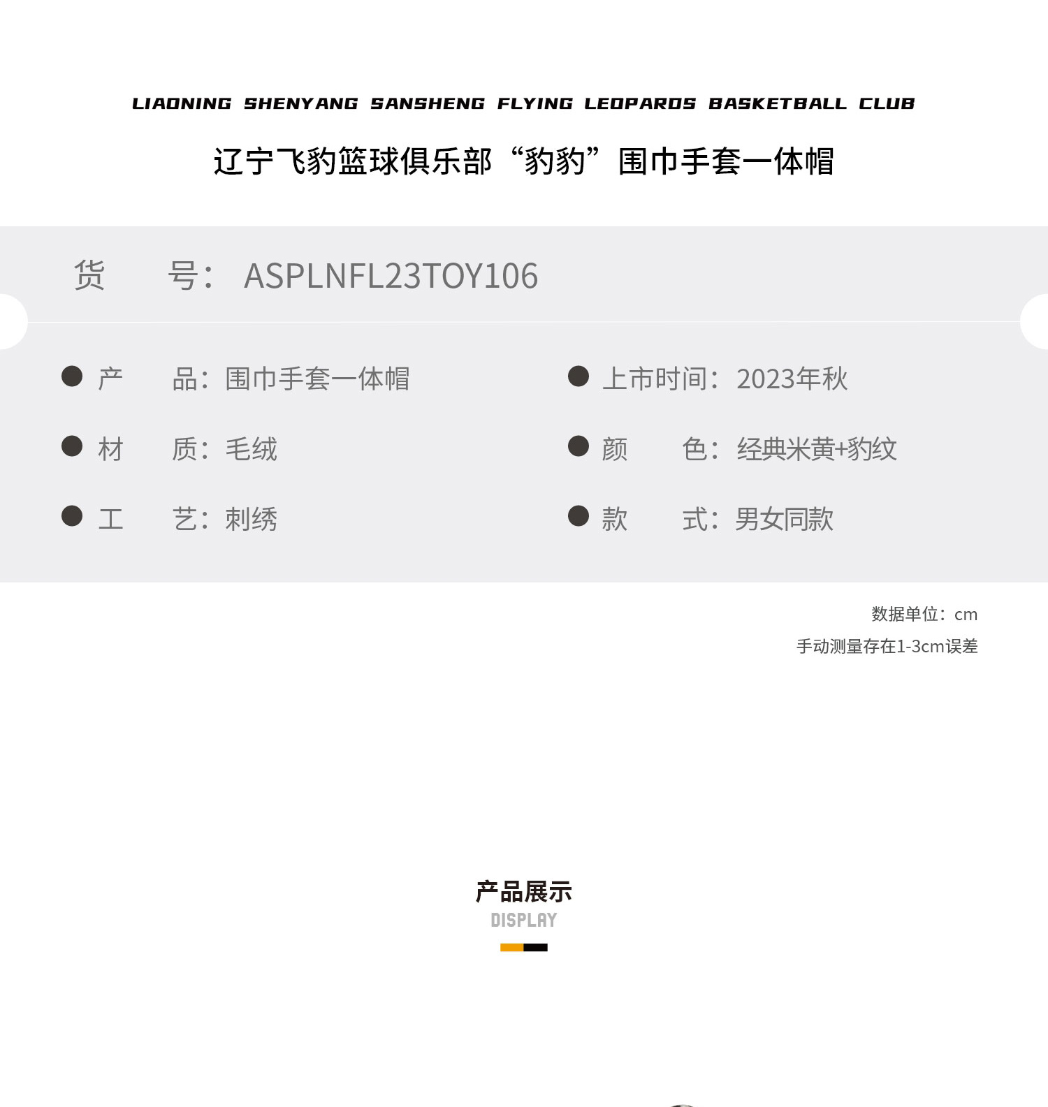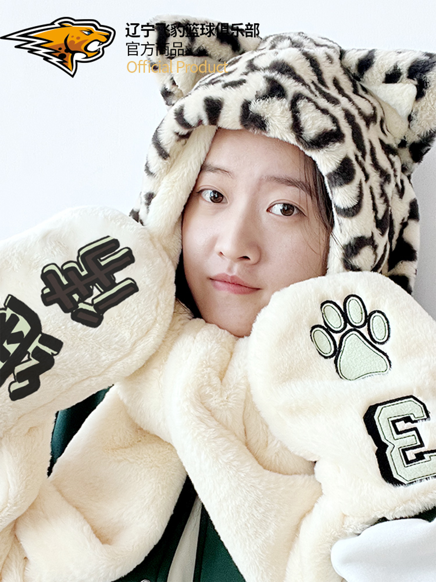 辽宁飞豹男篮官方商品丨辽篮“豹豹”围巾手套一体保暖帽球员毛绒帽