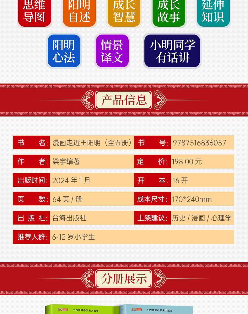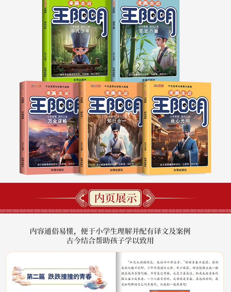 漫画走近走进王阳明全5册心学智慧中小学生课外书国学经典漫画书