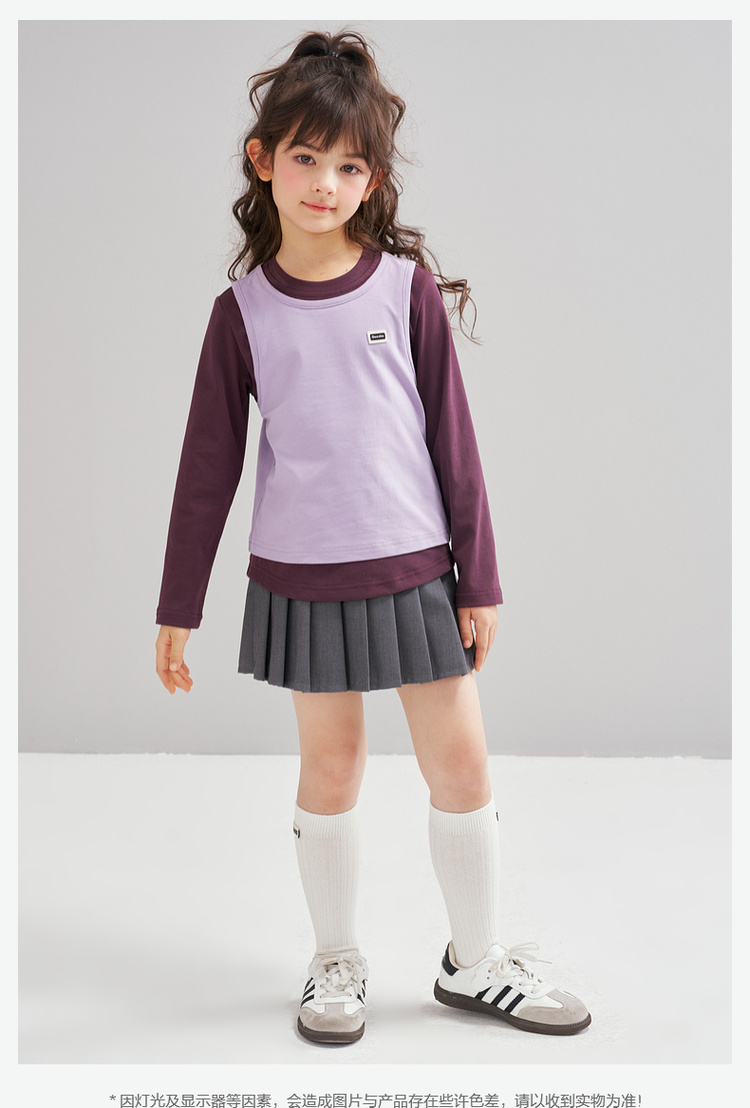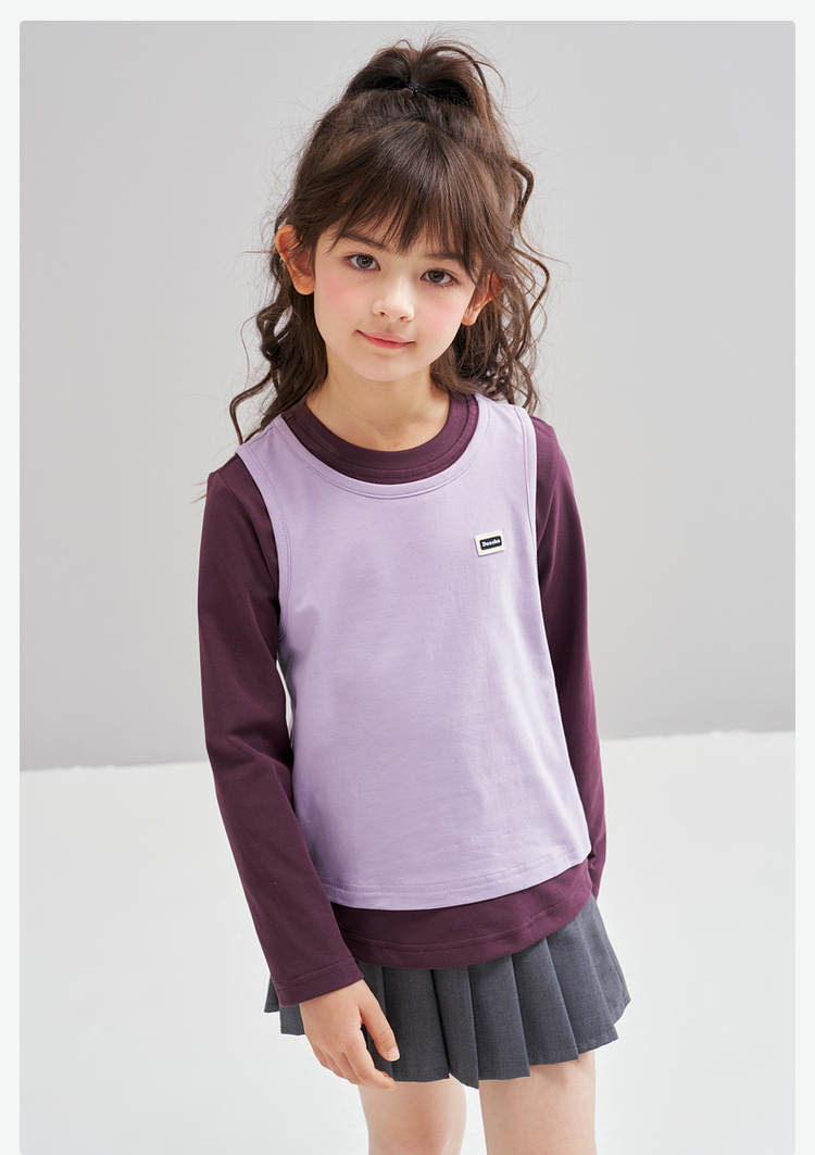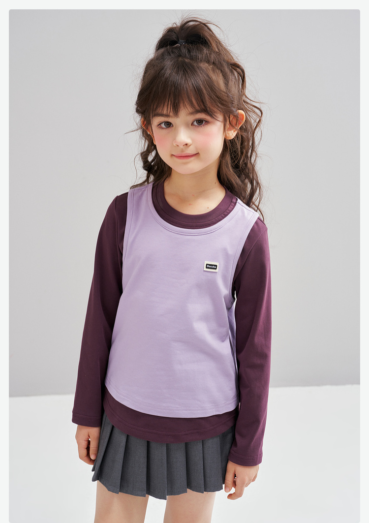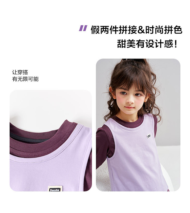 笛莎Deesha 2026春季女童时尚撞色假两件拼接长袖T恤